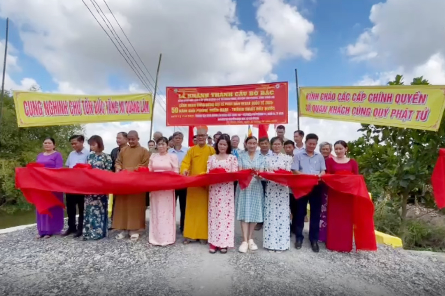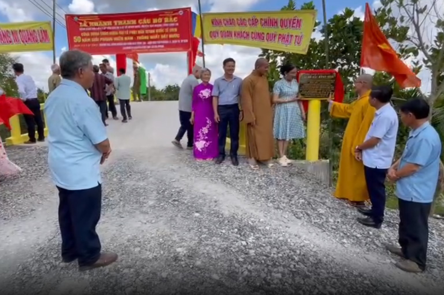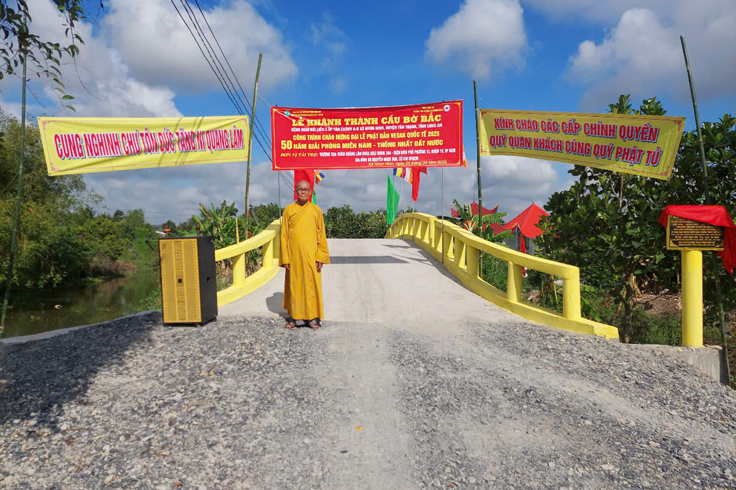 Phát biểu tại lễ khánh thành, Thượng tọa Thích Lệ Tấn cho biết cầu bờ Bắc kênh 6000 xây dựng bằng bê tông cốt thép, dài 21 m, rộng 3.5 m, tổng trị giá 500.000.000 (năm trăm triệu đồng) do Đại đức Thích Quảng Lâm, Ủy viên Hội đồng Trị sự, Phó Trưởng ban Từ thiện Xã hội Trung ương GHPGVN, trụ trì chùa Giác Minh, Tp HCM, Đại đức Thích Lệ Duyên, bà Nguyễn Ngọc Mai, huyện Củ Chi, Tp HCM tài trợ chính. Thượng tọa cũng cho biết công trình này, hướng đến kính mừng Đại lễ Phật đản Vesak PL.2569 và chào mừng kỷ niệm 50 giải phóng miền Nam, thống nhất đất nước