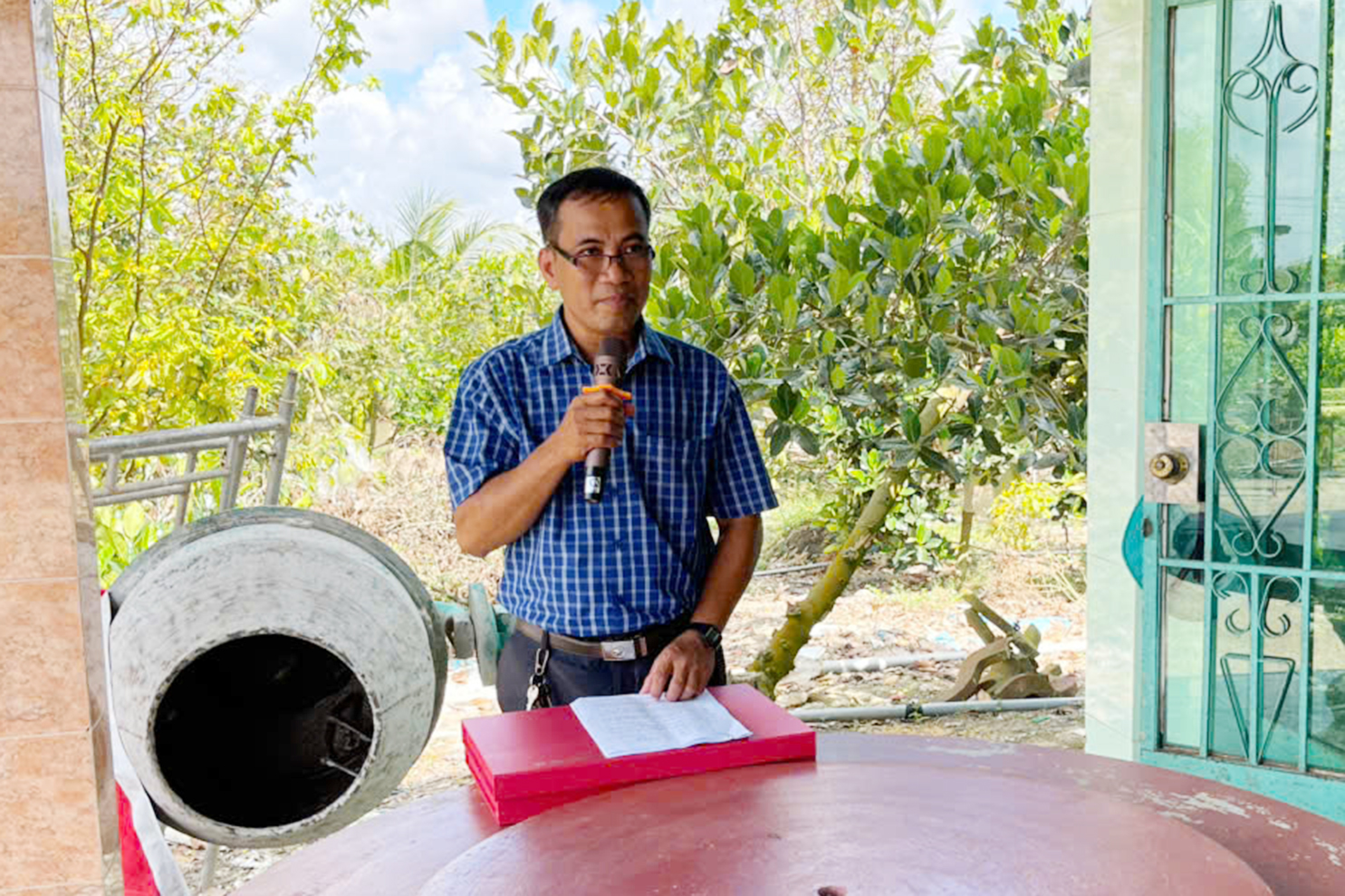 Ông Ngô Văn Lên, thay mặt lãnh đạo xã tri ân đến Thượng tọa Thích Lệ Tấn và quý nhà tài trợ đã hỗ trợ kinh phí xây dựng cầu bờ Bắc kênh 6000 để nhân dân thuận lợi qua lại, phát triển kinh tế.