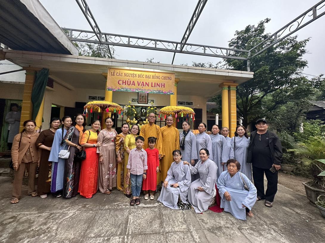 Chư Tôn đức giáo phẩm chứng minh và quý Nam nữ Phật tử đã trang nghiêm dâng hương bạch Phật, chú nguyện, sái tịnh, rót đồng đúc đại hồng chung chùa Vạn Linh.