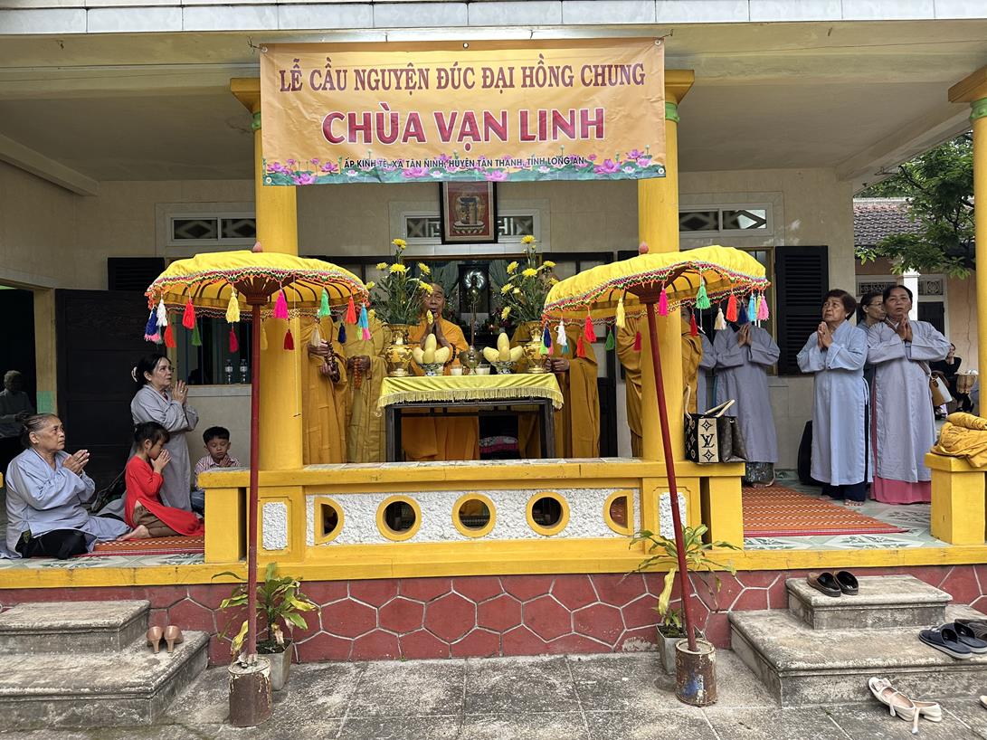 Sáng ngày 08 tháng 4 năm 2023 (nhằm ngày 18 tháng 02 nhuận năm Quý Mão); chùa Vạn Linh, ấp Kinh tè, xã Tân Ninh, huyện Tân Thạnh, tỉnh Long An tổ chức lễ chú nguyện rót đồng đúc Đại hồng chung tại cơ sở đúc đồng Nguyễn Văn Sở, phường Thủy Xuân, Tp Huế, tỉnh Thừa Thiên Huế.