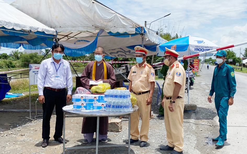 Hưởng ứng lời kêu gọi của Ban Chỉ đạo phòng, chống dịch bệnh Covid-19 tỉnh Long An và chỉ đaọ của Ban Trị sự Giáo hội Phật giáo Việt Nam tỉnh Long An, phát huy tinh thần tương thân tương ái của dân tộc Việt Nam. Nhân ngày Quốc khánh ngày 2/ tháng 9, Thượng toạ Thích Lệ Tấn- Phó Ban Từ thiện xã hội Phật giáo tỉnh Long An, Trưởng Ban Trị sự GHPGVN huyện Tân Thạnh đã đến UBND Xã Hậu Thạnh Đông, Nhơn Ninh, Tân Ninh, Bệnh Viện Dã Chiến Số 12, Huyện Đội Huyện Tân Thạnh, chốt kiểm soát dịch Quốc Lộ 62,N2