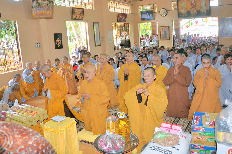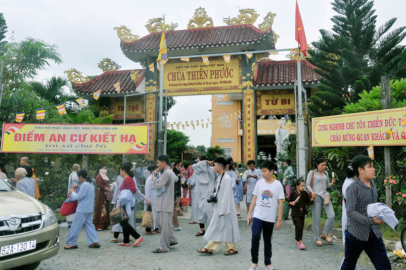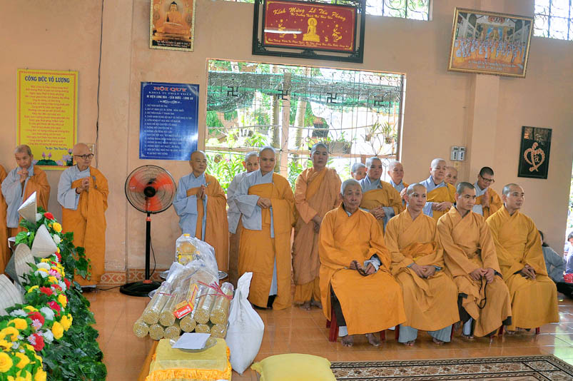 Hằng năm mùa mưa đến là báo hiệu mùa An cư Kiết hạ của hàng Tăng sĩ Phật giáo. Chư Tăng Ni tỉnh nhà tập trung về các trú xứ An cư Kiết hạ “thúc liễm thân tâm, trau dồi giới đức”. Để cho hàng Phật tử có nơi gieo trồng công đức, sáng ngày 30 tháng 06 năm 2019 (28/05/Kỷ Hợi) Ban Trị sự Giáo hội Phật giáo Việt Nam huyện Tân Trụ do Hoà thượng Thích Huệ Vân, thượng tọa Thích Thiện Xuân chứng minh Ban Trị sự Giáo hội Phật giáo huyện Tân Trụ. Thượng toa Thích Từ Thiện- Trưởng Ban Trị sự GHPGVN huyện Tân Trụ, Đại đức Thích Thiện Phước- Phó Ban Trị sự GHPGVN huyện Tân Trụ đã hướng dẫn đoàn gồm 20 Tăng, Ni và trên 900 cư sĩ Phật tử của16 tự viện và 2 tịnh thất trong toàn huyện Tân Trụ đến thăm viếng chư Tăng, Ni và cúng dường mười điểm An Cư kiết Hạ trong toàn Tỉnh Long An.
