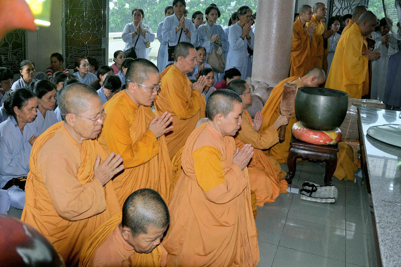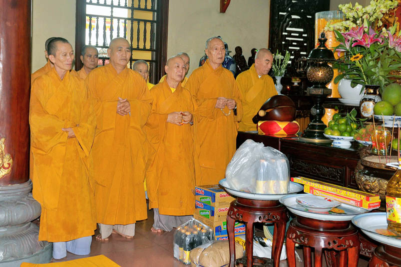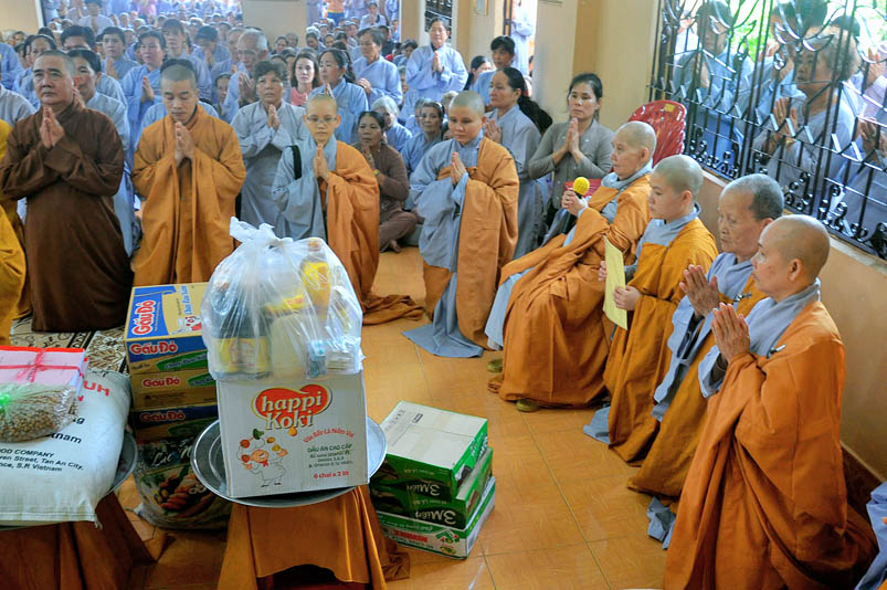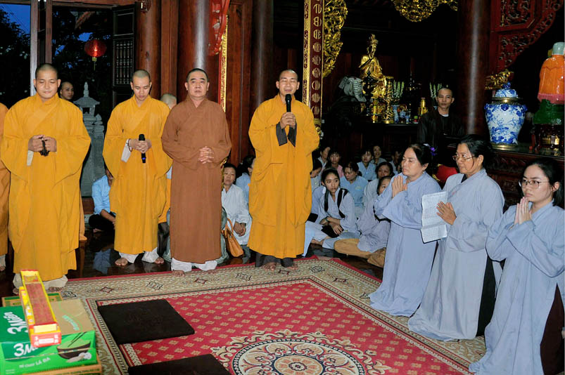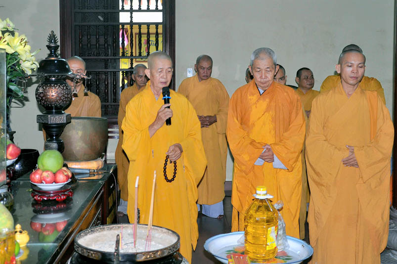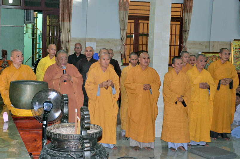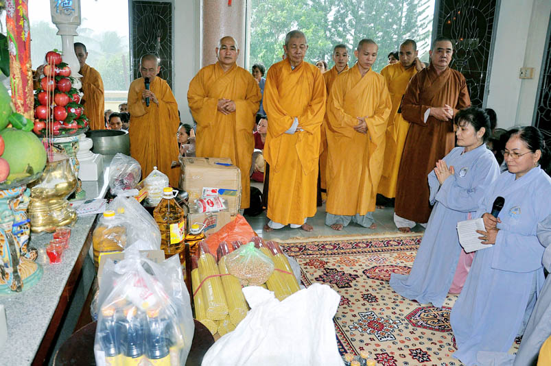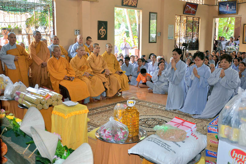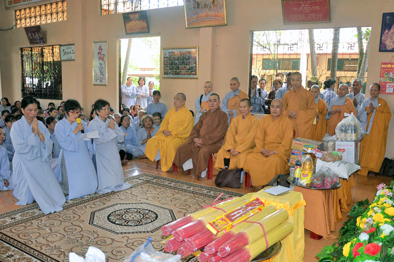 Thượng tọa cũng thay mặt đoàn tác bạch cúng dường tịnh tài, phẩm vật trợ duyên cho chư Tăng Ni.