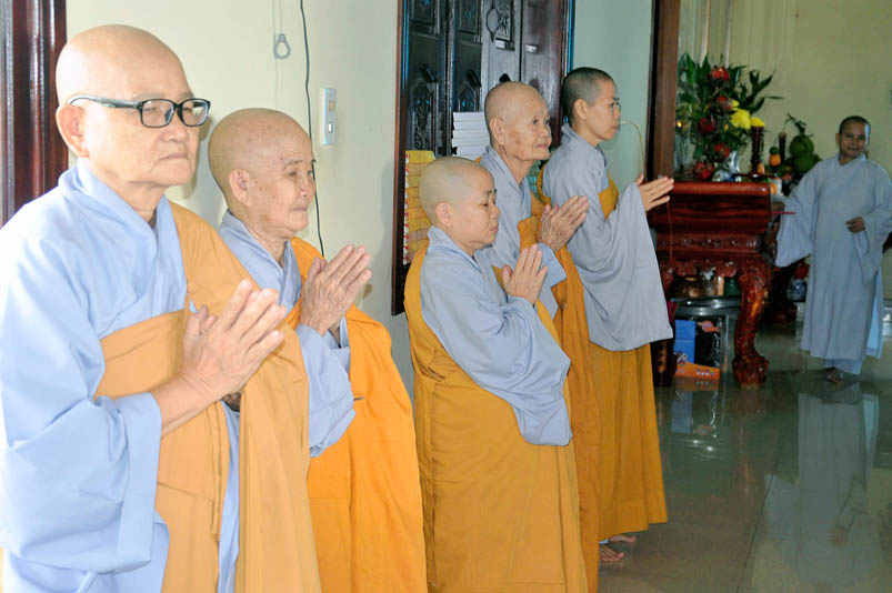 Thay mặt Chư hành giả An cư, tại mỗi trú xứ, Chư Tôn đức Tăng Ni tiếp đón phái đoàn rất trang nghiêm và bày tỏ niềm tri ân đến Chư Tôn đức BTS. GHPGVN huyện Tân Trụ,Tăng ni và Phật tử trong đoàn.