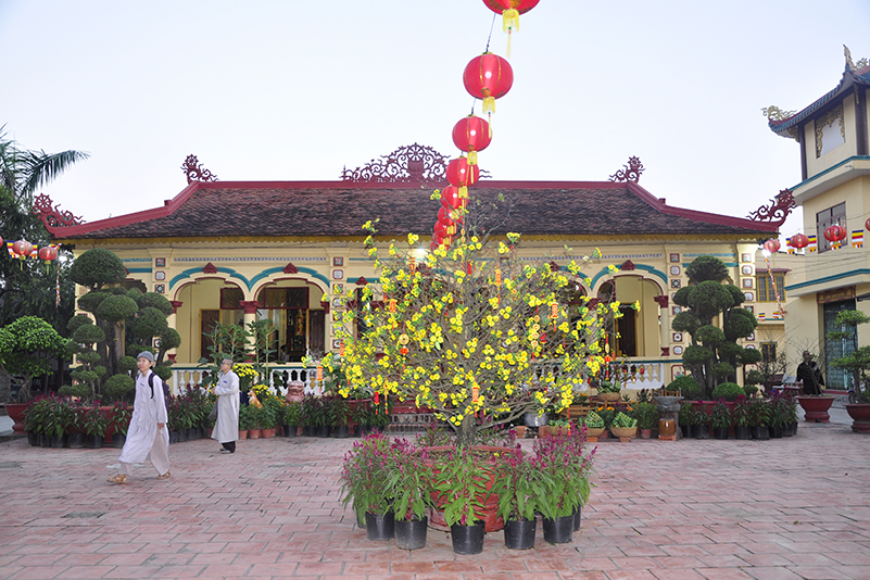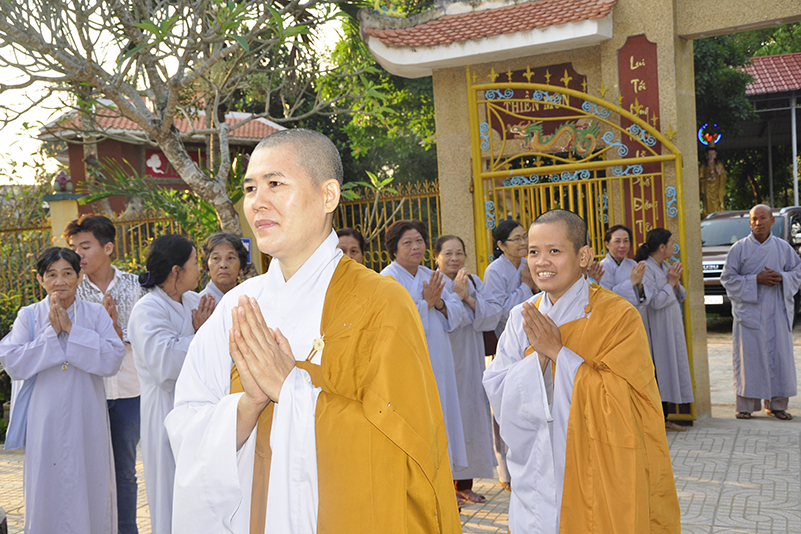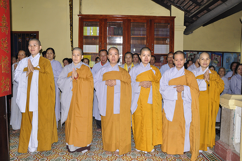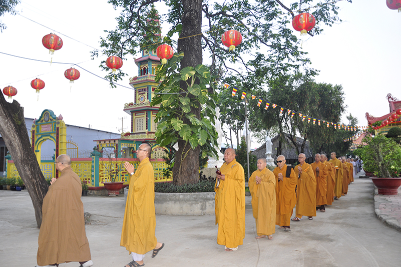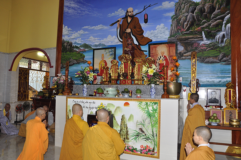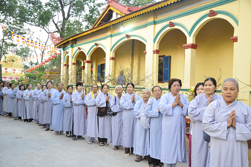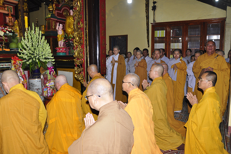 Từ sáng sớm chư tôn đức Tăng Ni cùng Phật tử cùng nhau quy tập về Tổ đình để đảnh lễ tổ sư.