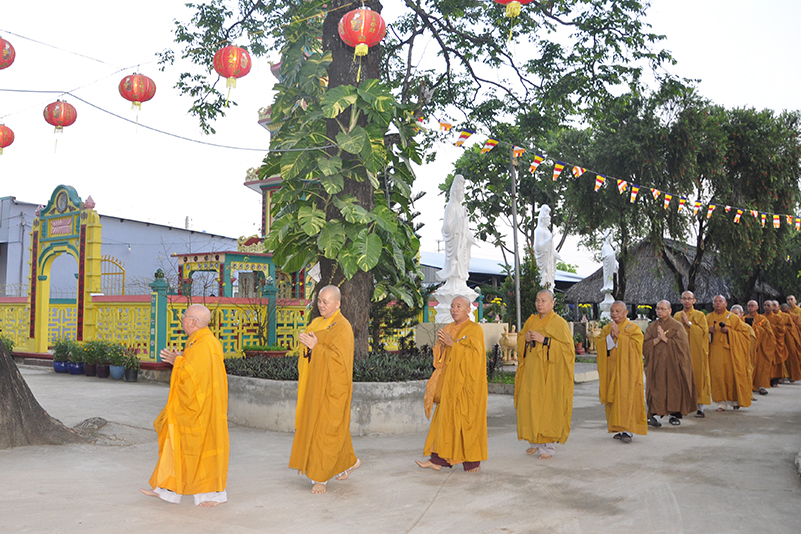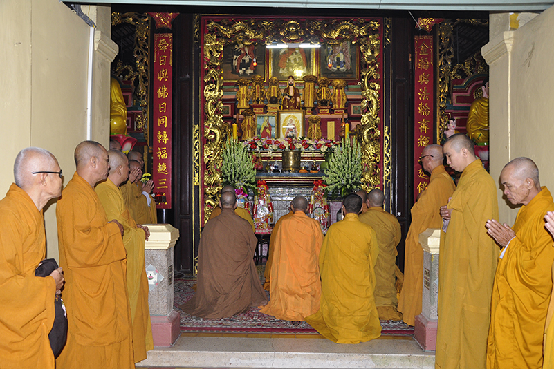 Sau khi hữu nhiễu bảo tháp Chư tôn đức vân tập về tổ đường.