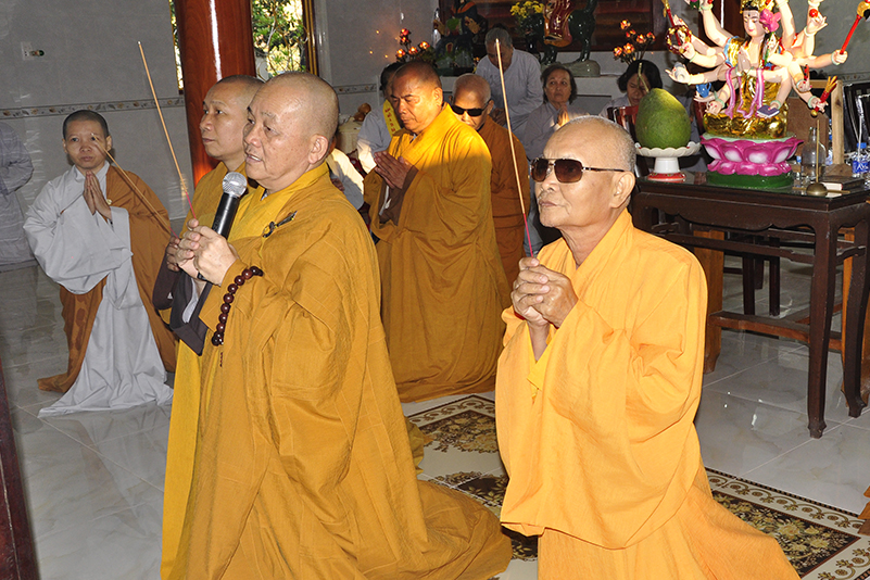 Tham dự dâng hương đảnh lễ có Chư tôn đức giáo phẩm chứng minh HT. Thích Minh Thiện- Uỷ viên HĐTSTƯ, Phó ban hoằng pháp trung ương, Trưởng Ban trị sự GHPGVN tỉnh Long An;HT. Thích Thiện Phúc- Trưởng Ban trị sự GHPGVN liên huyện Đức Hoà- Đức Huệ;Chư tôn đức Tăng Ni các ban ngành trực thuộc BTS, Tăng Ni các tổ đình, tự viện cùng bà con Phật tử tham dự.