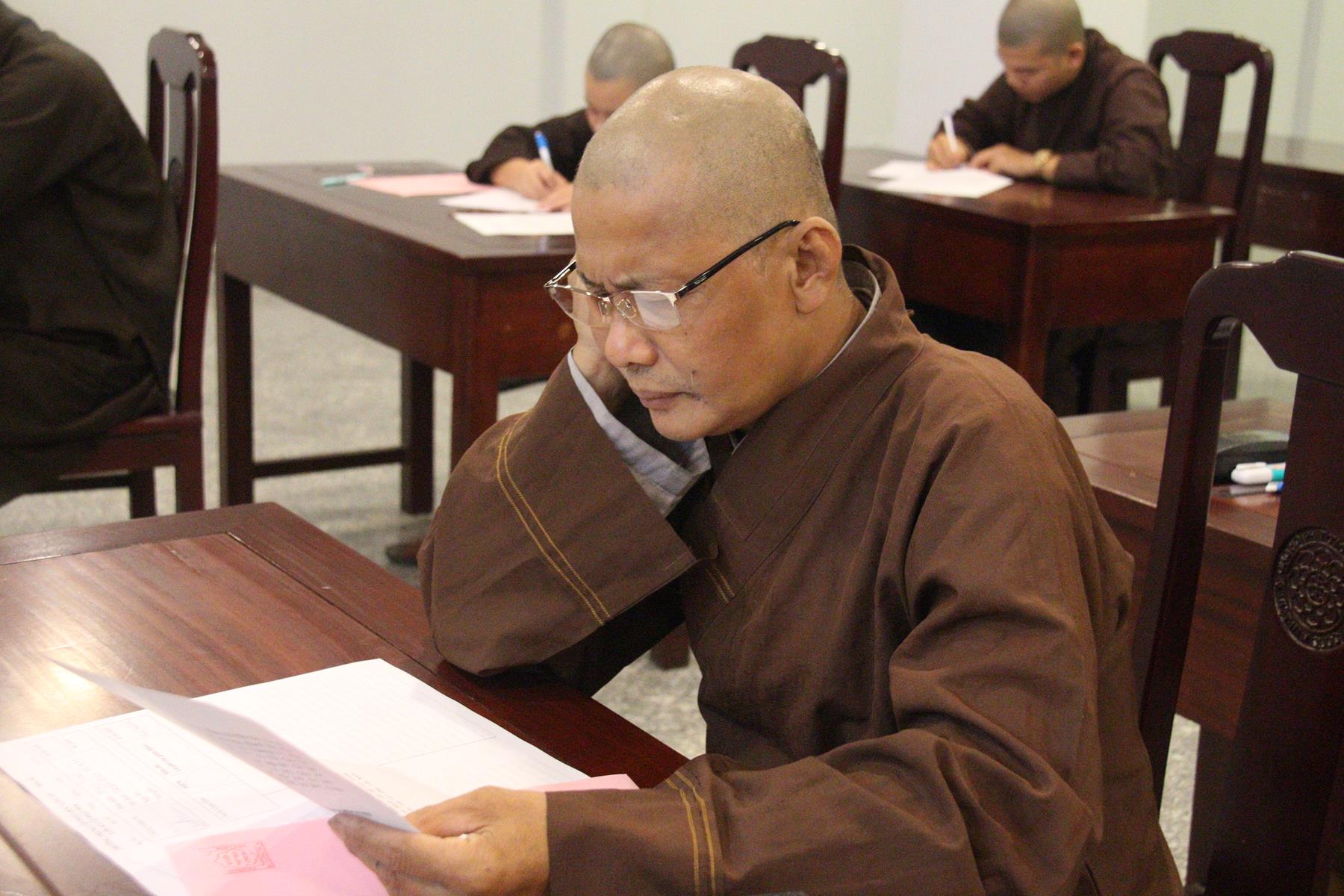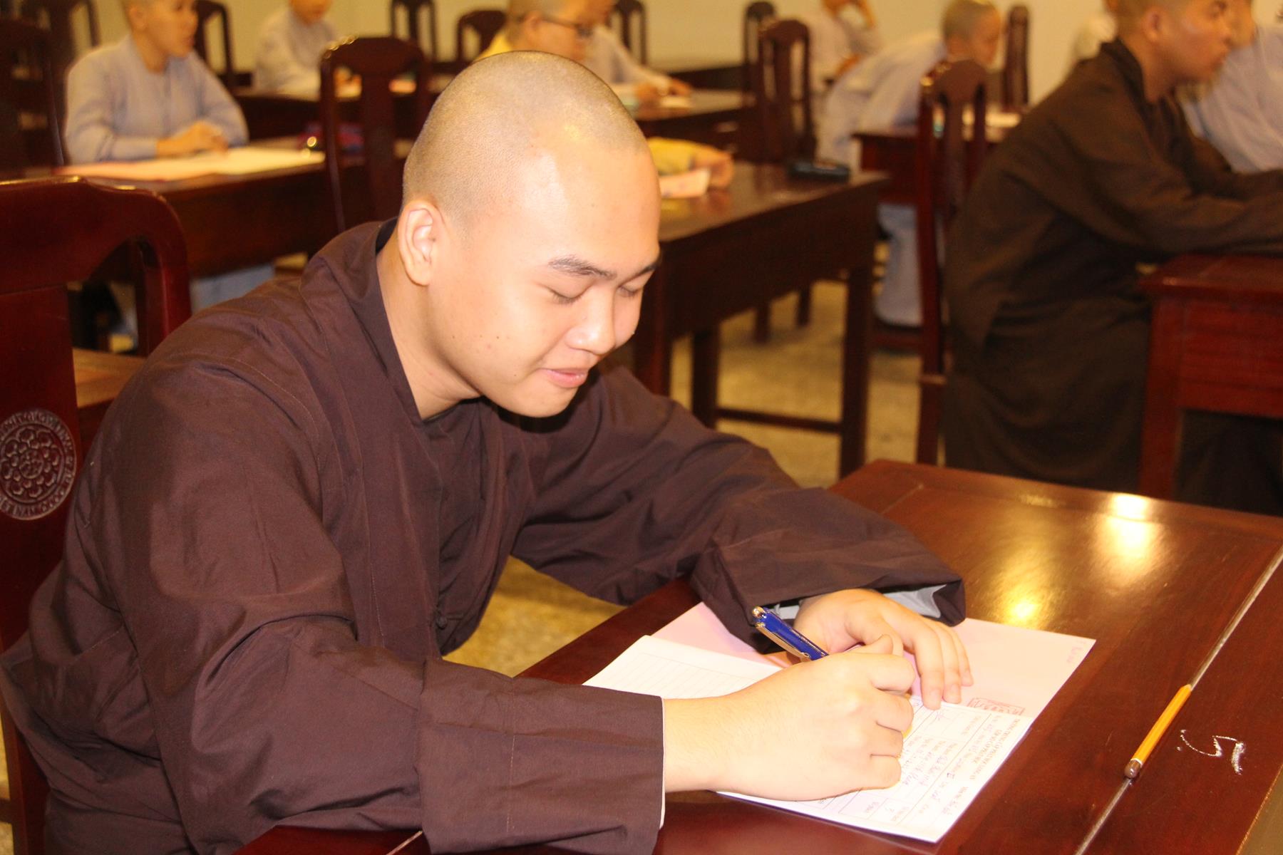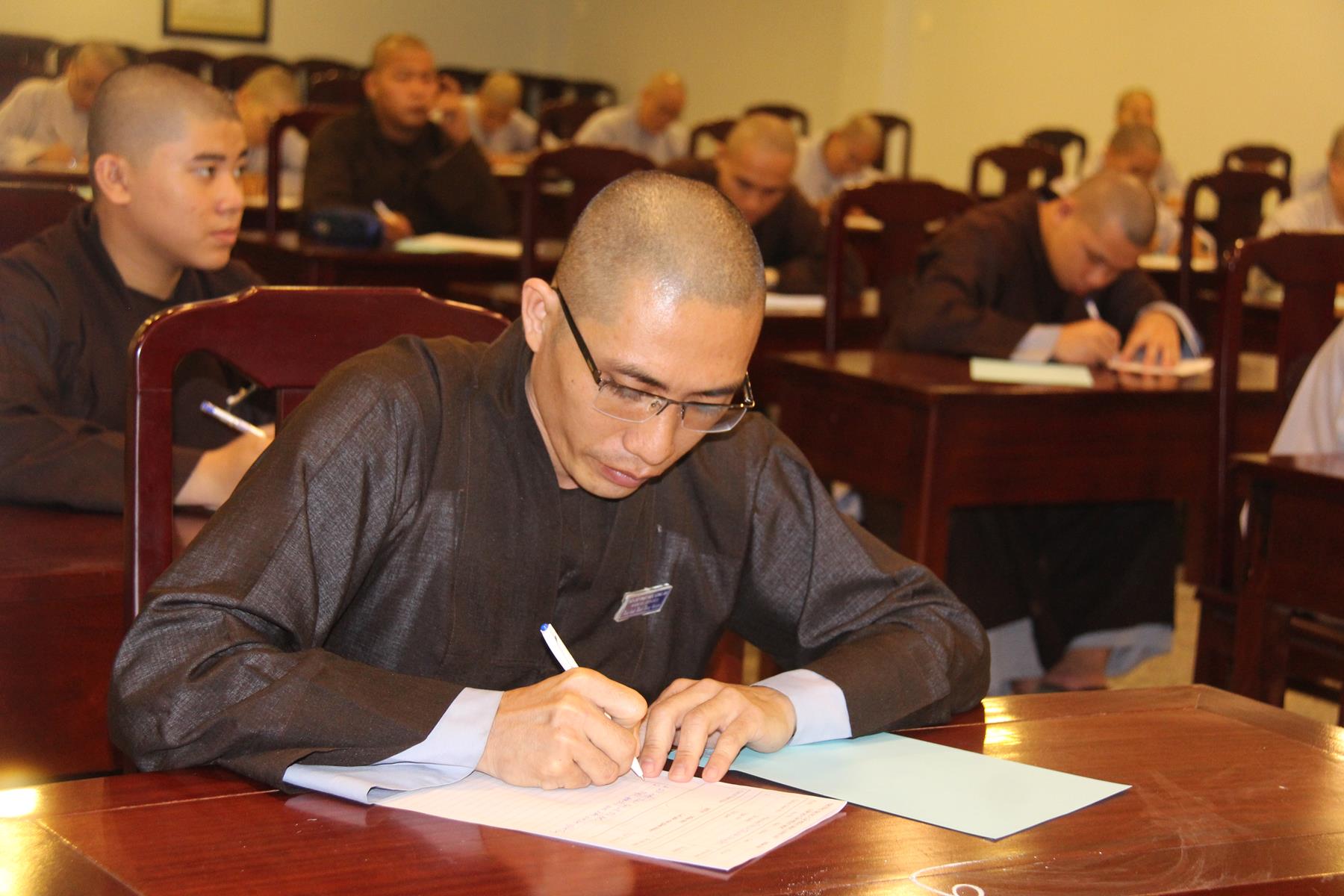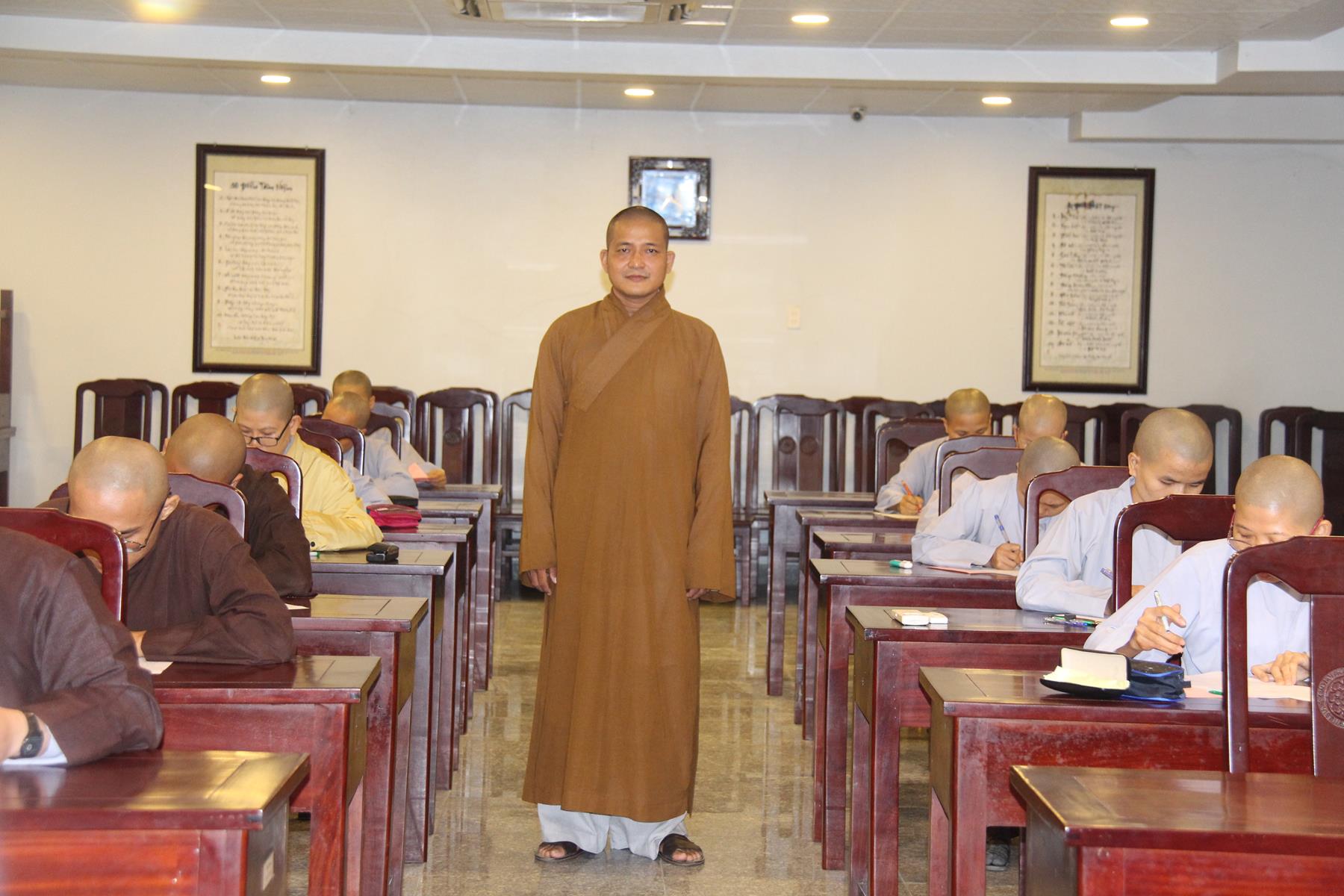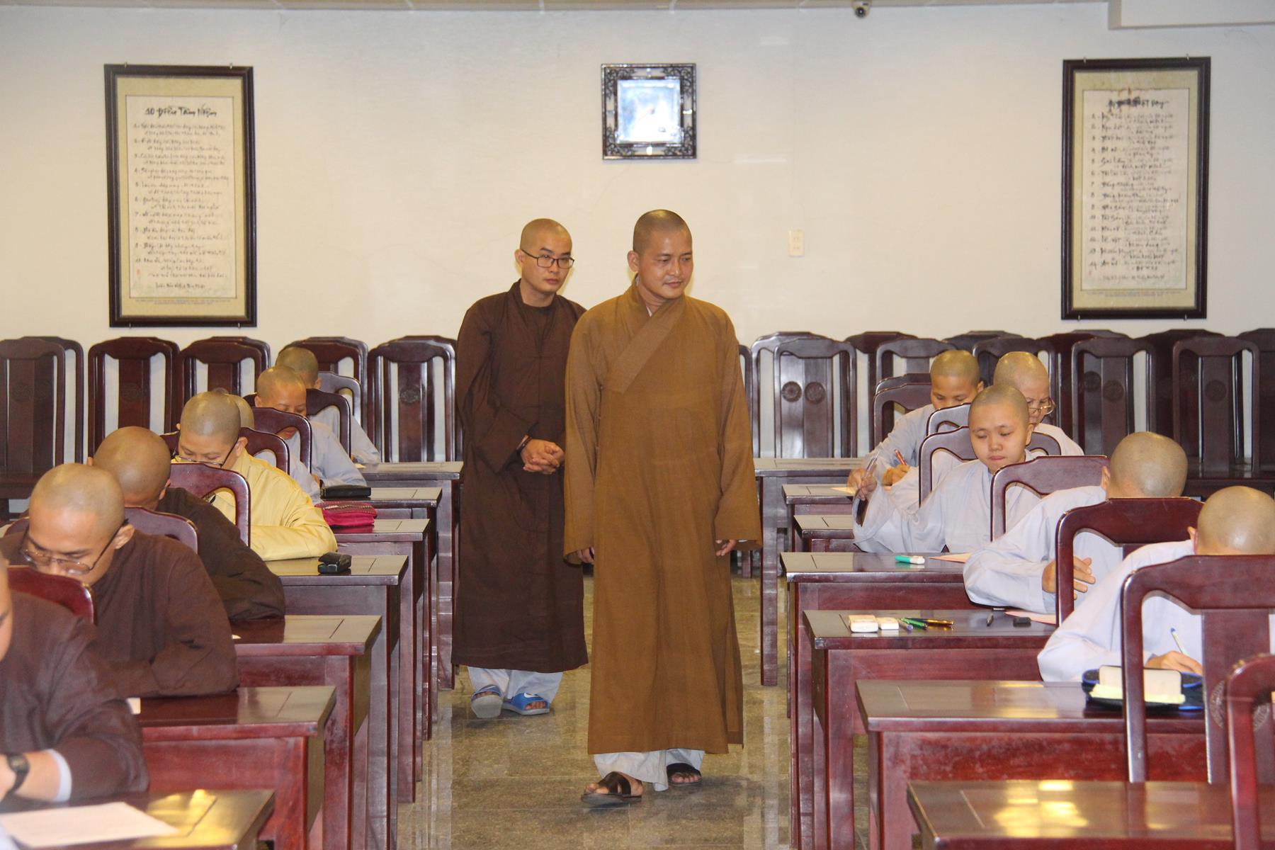 Khai mạc kỳ thi, Đại đức Chủ nhiệm Lớp Sơ cấp đã có lời động viên, nhắc nhở Tăng Ni sinh hãy cố gắng học tập thật tốt để không những hoàn thành môn thi tốt mà còn để áp dụng vào sinh hoạt đời sống tu tập hàng ngày của người xuất gia và đồng thời yêu cầu quý Thầy cô trong Ban giám thị hãy làm việc nghiêm túc, để giúp các em xây dựng nền tảng kiến thức Phật học vững chắc cho hành trình tu tập của chính mình.