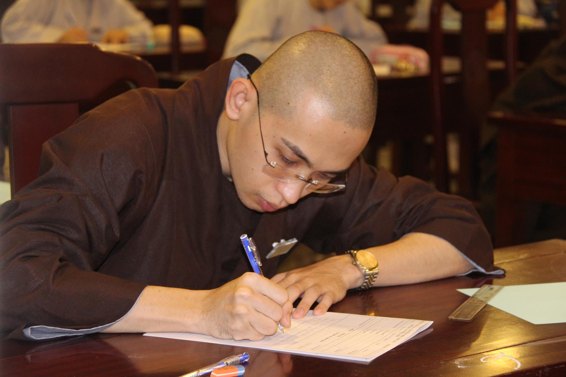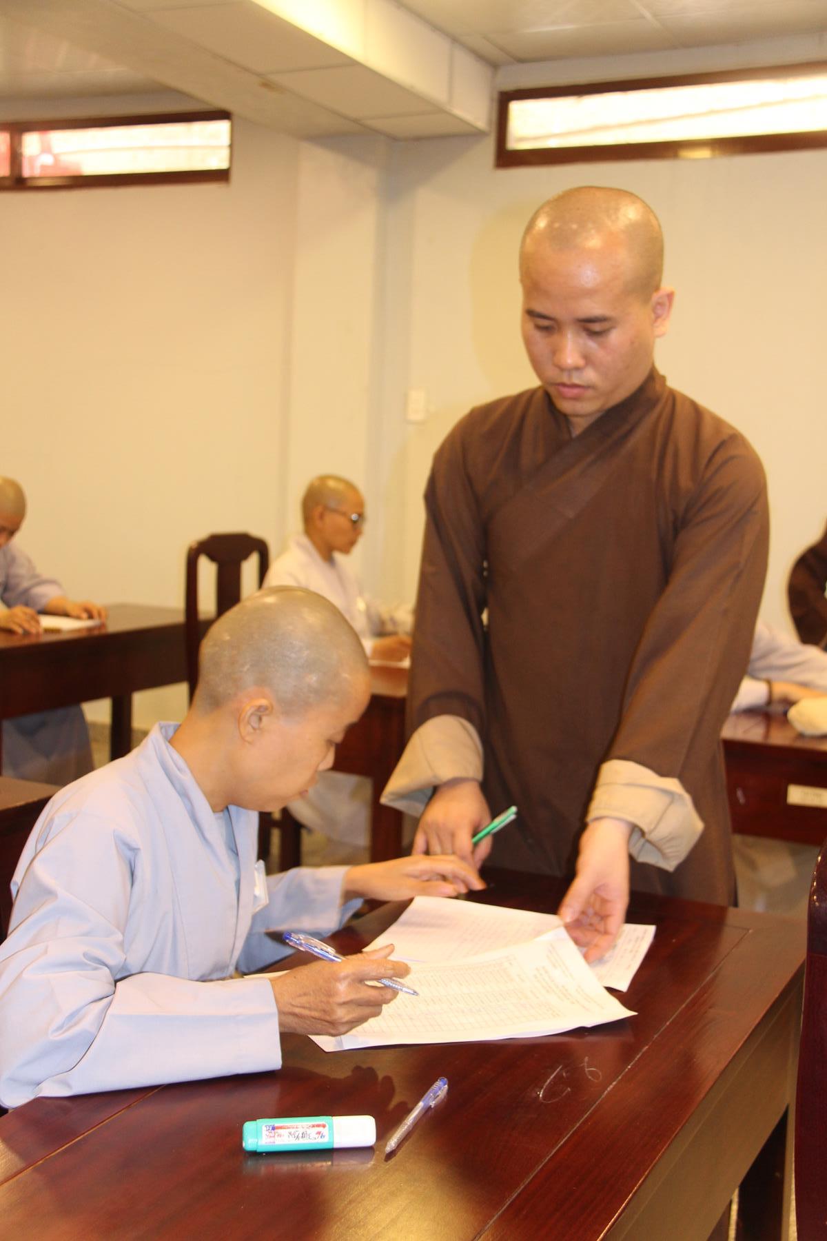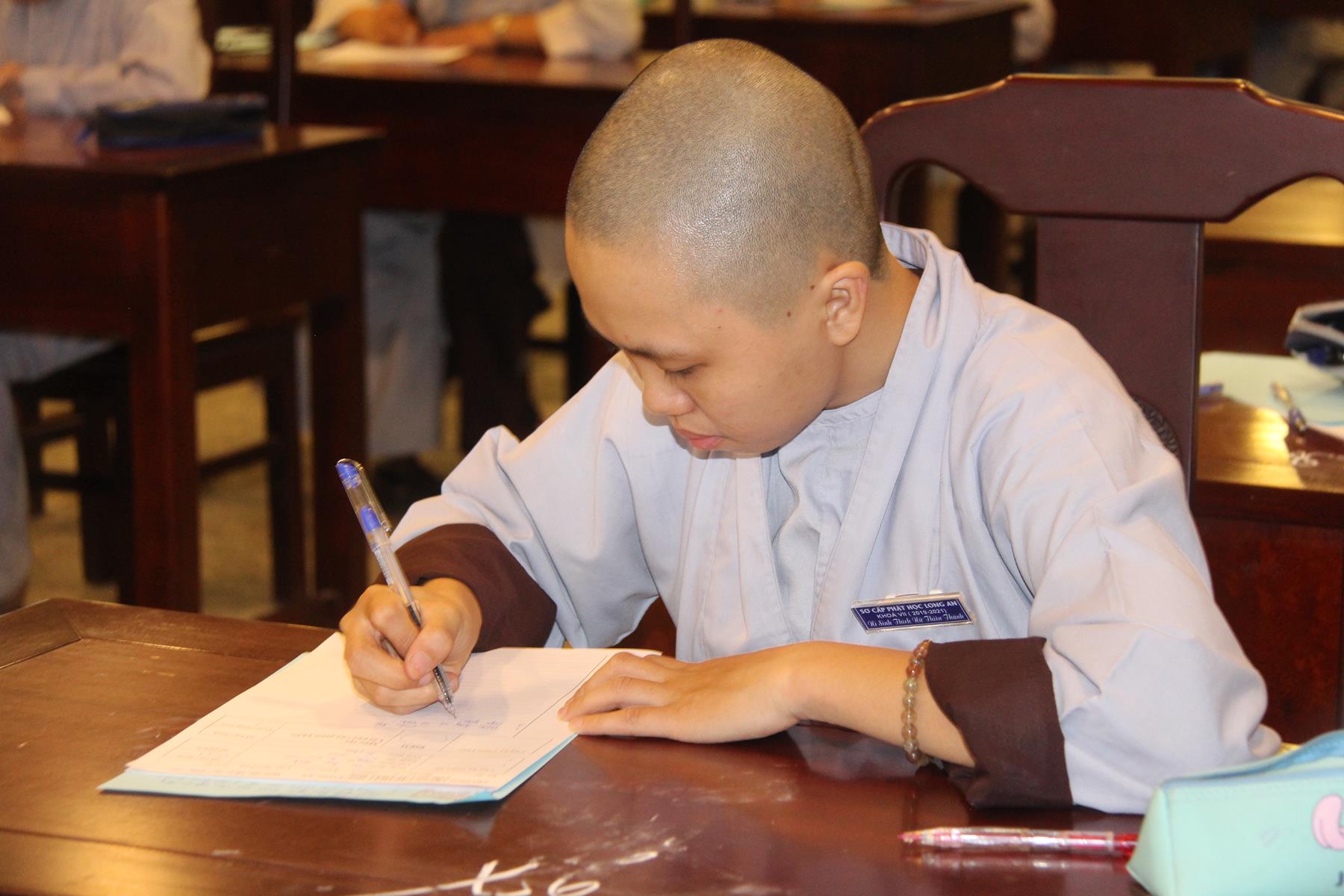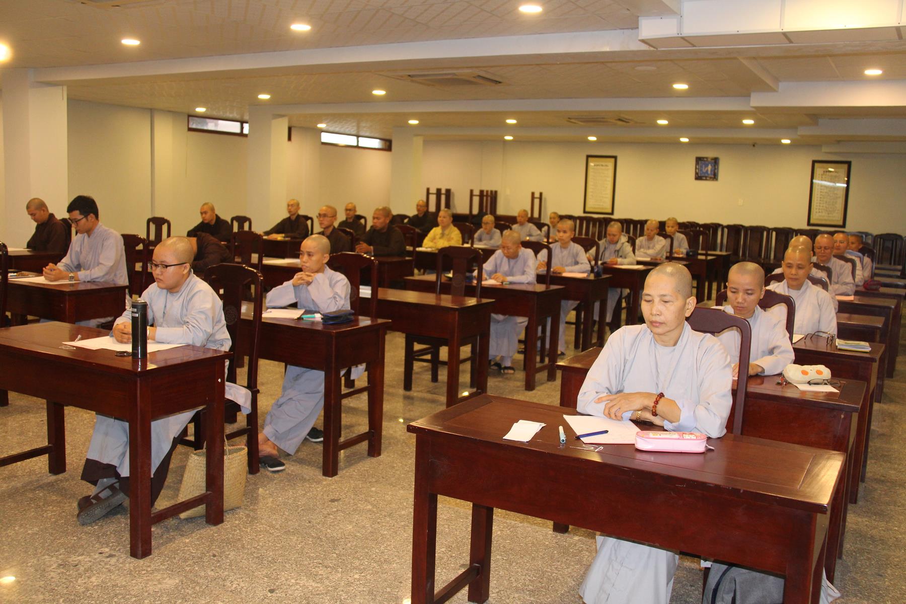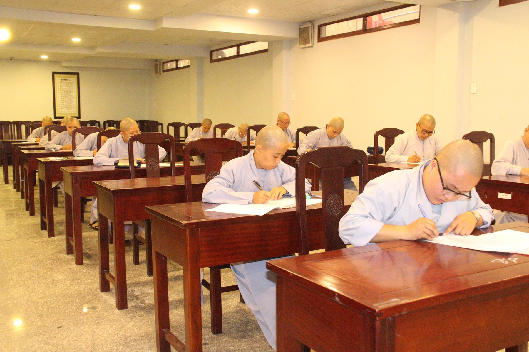 Khai mạc kỳ thi, Đại đức Chủ nhiệm Lớp Sơ cấp đã có lời động viên, nhắc nhở Tăng Ni sinh hãy cố gắng học tập thật tốt để không những hoàn thành môn thi tốt mà còn để áp dụng vào sinh hoạt đời sống tu tập hàng ngày của người xuất gia và đồng thời yêu cầu quý Thầy cô trong Ban giám thị hãy làm việc nghiêm túc, để giúp các em xây dựng nền tảng kiến thức Phật học vững chắc cho hành trình tu tập của chính mình.