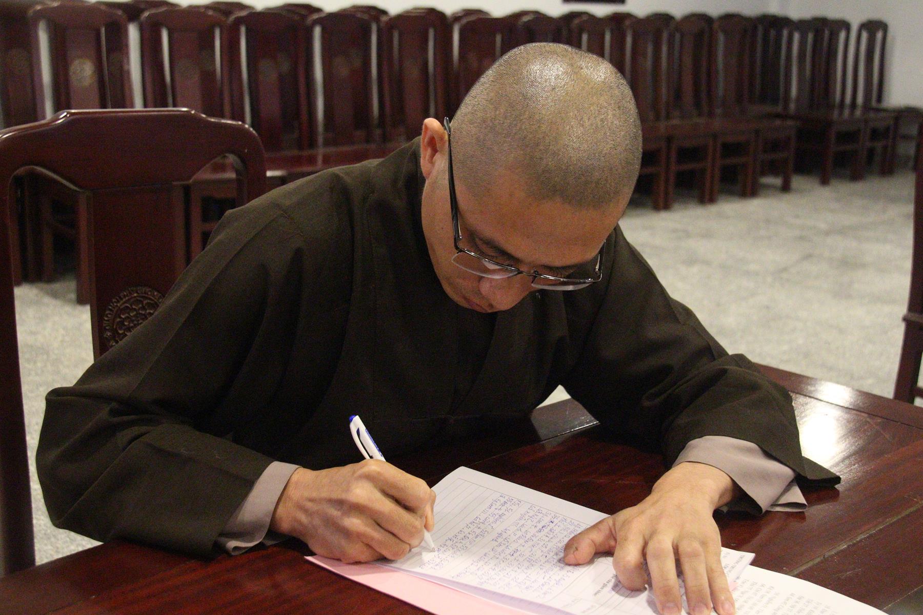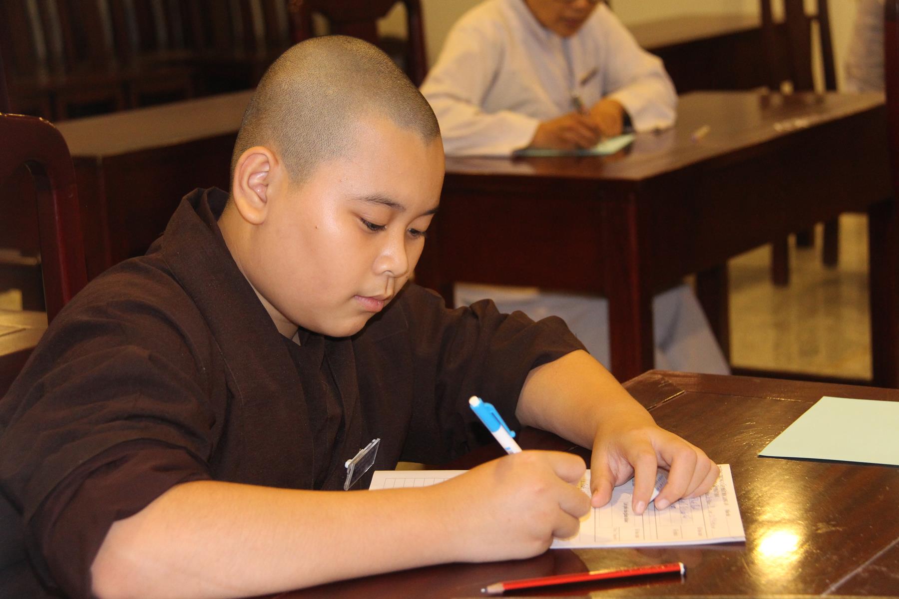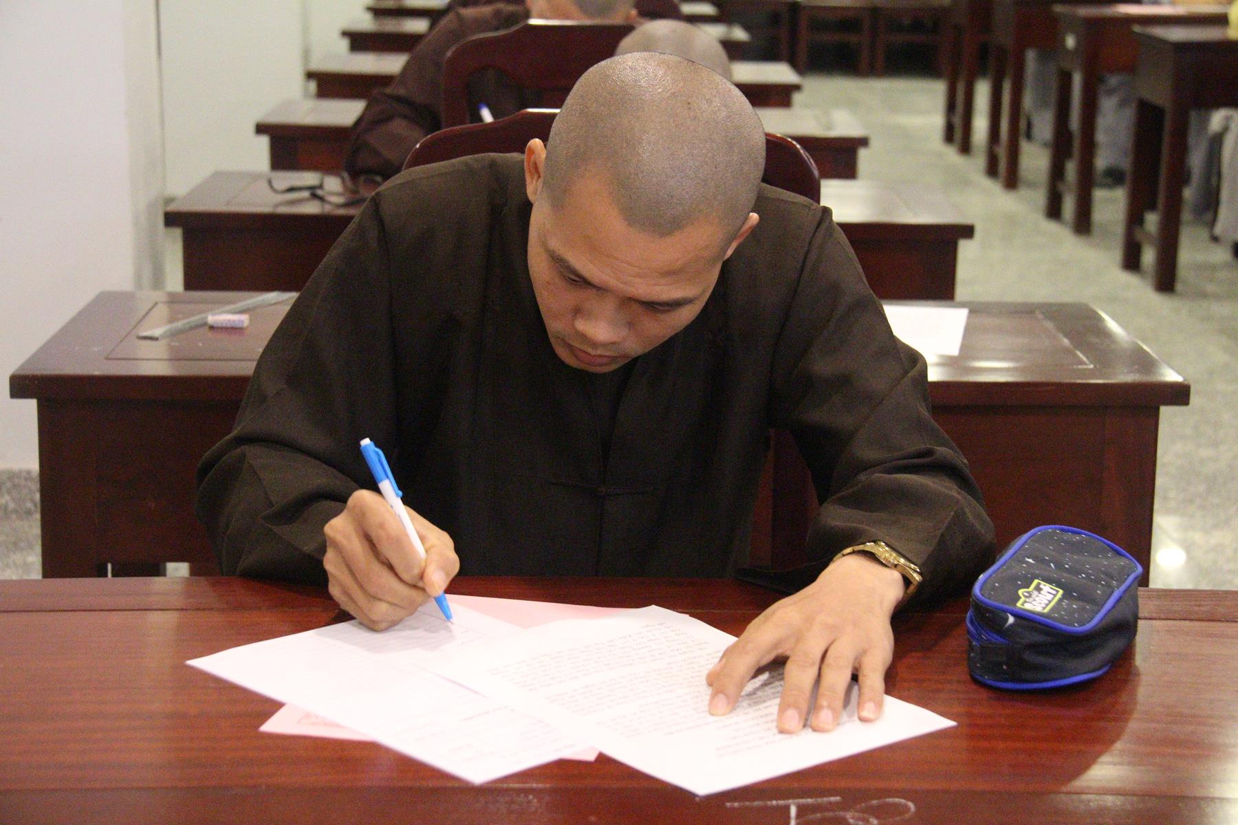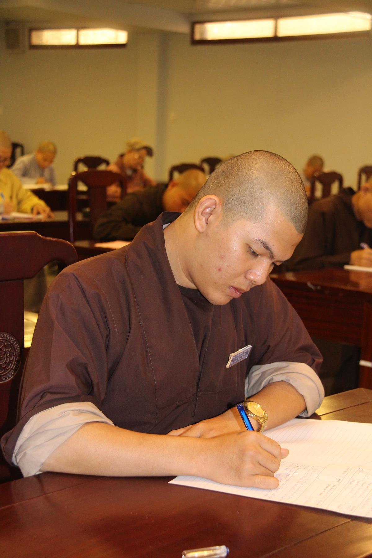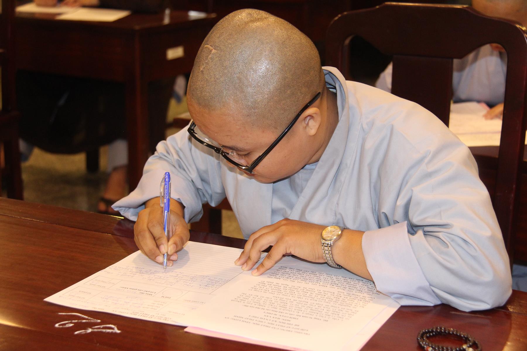 Khai mạc kỳ thi, Đại đức Chủ nhiệm Lớp Sơ cấp đã có lời động viên, nhắc nhở Tăng Ni sinh hãy cố gắng học tập thật tốt để không những hoàn thành môn thi tốt mà còn để áp dụng vào sinh hoạt đời sống tu tập hàng ngày của người xuất gia và đồng thời yêu cầu quý Thầy cô trong Ban giám thị hãy làm việc nghiêm túc, để giúp các em xây dựng nền tảng kiến thức Phật học vững chắc cho hành trình tu tập của chính mình.