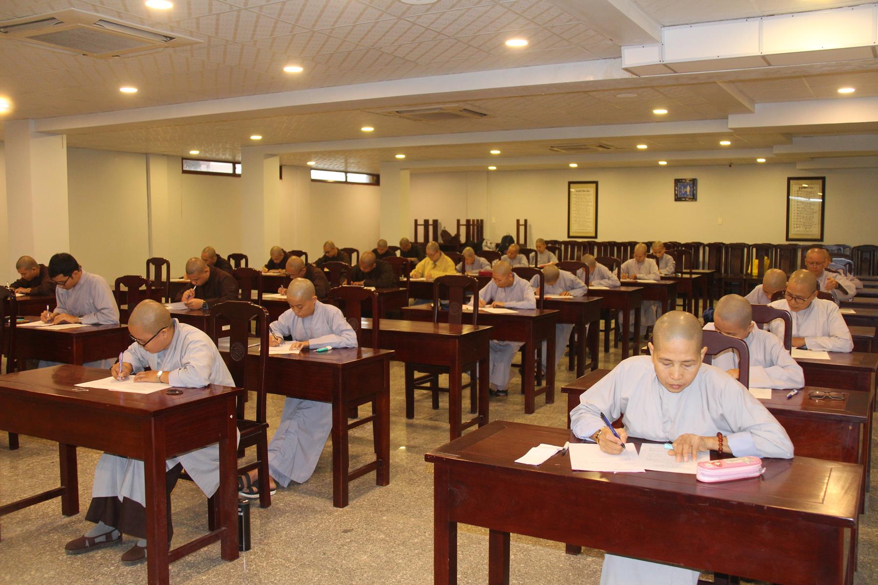 Kỳ thi diễn ra từ ngày 10 đến 16 tháng 1 năm 2020, với các môn thi như sau: Hán văn, Khuyến phát Bồ đề Tâm văn, Sơ đẳng Phật học Giáo khoa thư, Phật học Danh số, Kinh Pháp cú, Luật Tỳ Ni, Nhị khóa hiệp giải, Việt văn và Anh văn.
