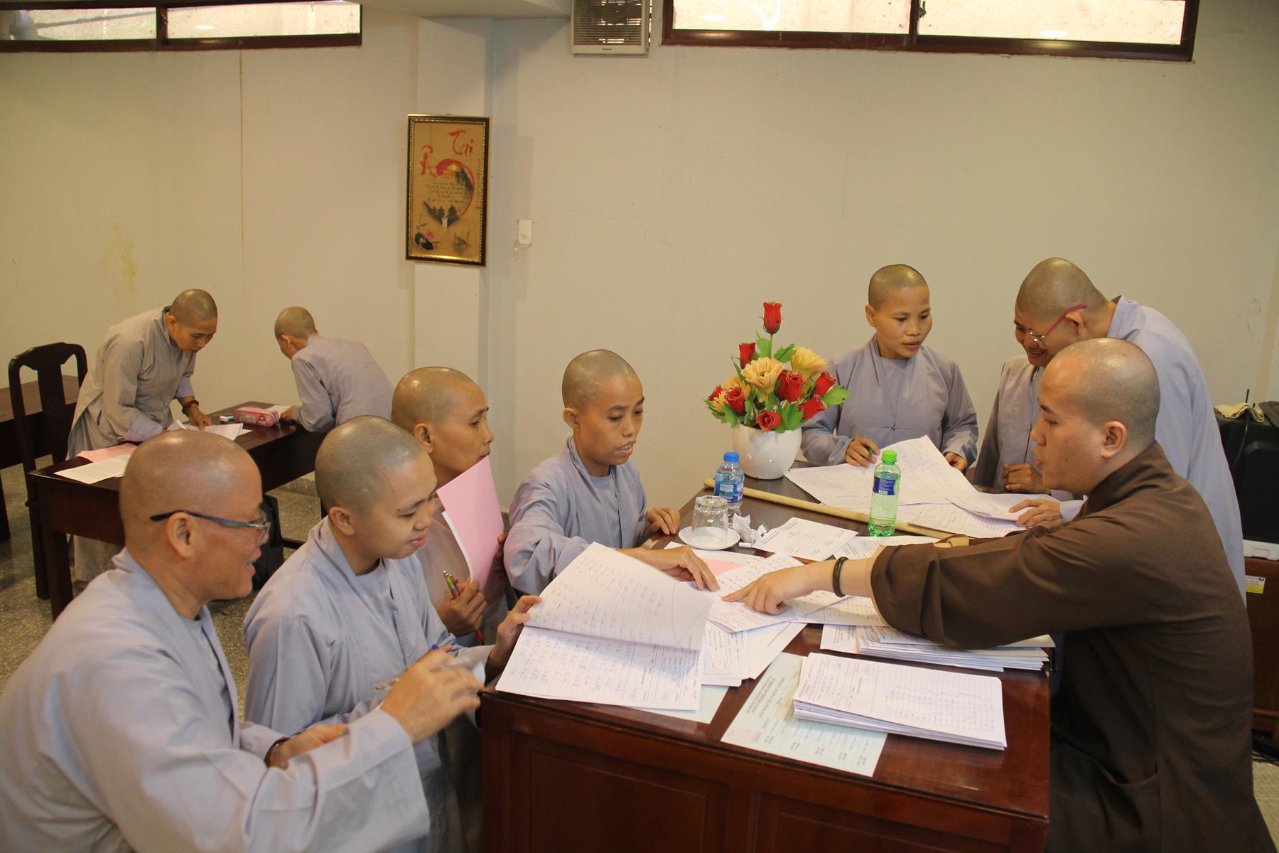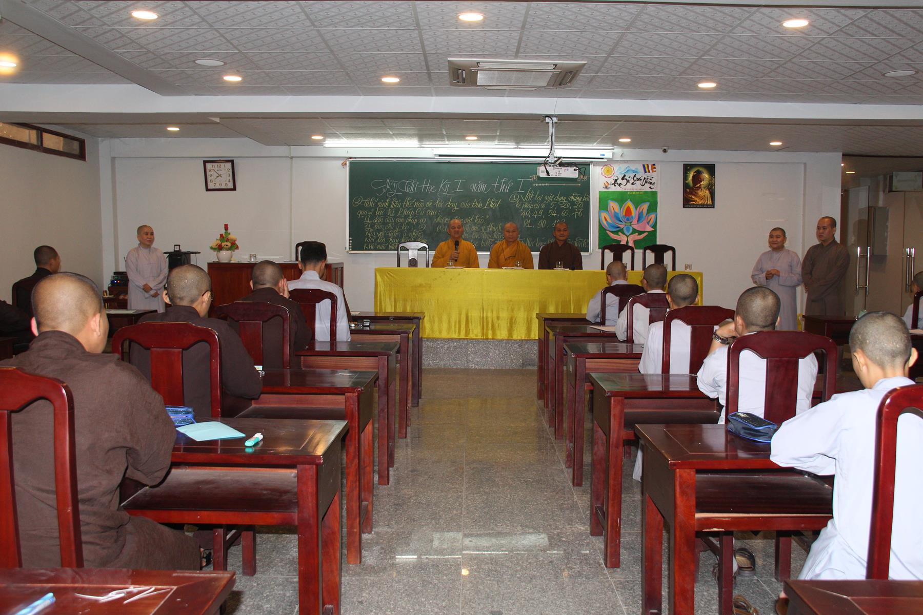 SC Thích nữ Huệ Như thông qua nội quy thi kỳ thi học kỳ I năm thứ nhất và bắt đầu ngày thi đầu tiên trong sự chuẩn bị bài thật tốt của Tăng Ni sinh và sự làm việc nghiêm túc của quý Thầy Cô trong Ban giám thị.