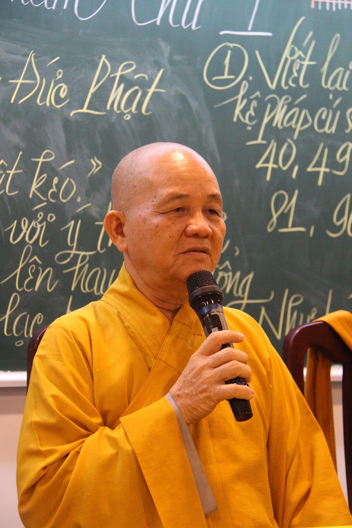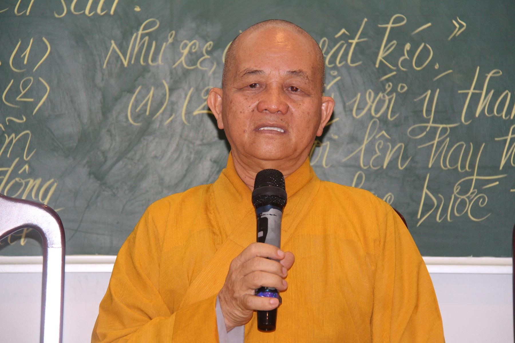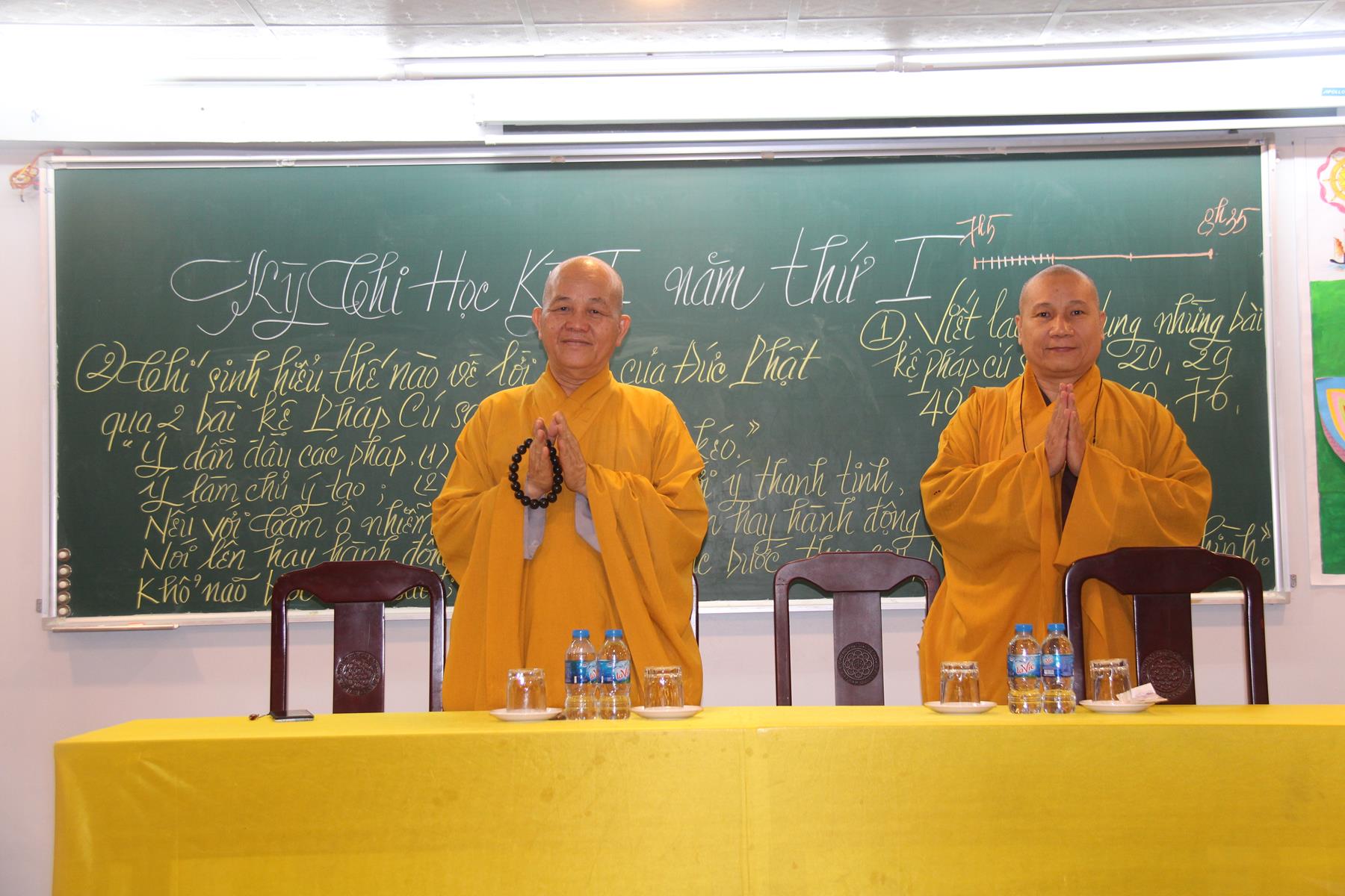 Hòa Thượng Hiệu trưởng đã vô cùng hoan hỷ bày tỏ sự quan tâm, động viên khích lệ và sách tấn Tăng Ni sinh: Các con hãy cố gắng là hòn đảo của chính mình, đừng nương vào bất cứ gì khác. Bởi chỉ có bản thân mình có nỗ lực, có quyết tâm, có tinh tấn thì sẽ luôn mang đến nhiều thành tựu tốt đẹp. Thầy hy vọng rằng, các con hãy trung thực với chính mình và cứ nghĩ kỳ thi này là để kiểm tra lại xem mình đã tiếp nhận kiến thức từ Thầy Cô giáo thọ của mình được bao nhiêu, để từ đó mình cố gắng phấn đấu học tập, áp dụng thực hành lời Phật dạy trong quy củ của thiền môn. Thầy chúc các con thi tốt trong kỳ thi này, học tốt, tu tốt, cố gắng để luôn là những Tăng Ni sinh chăm ngoan, sống khép mình trong giới luật. Chương trình học ở lớp sơ cấp là nền tảng vững chắc nhất cho các con trên con đường học Phật, mong các con hãy cùng nhau đoàn kết học tập.