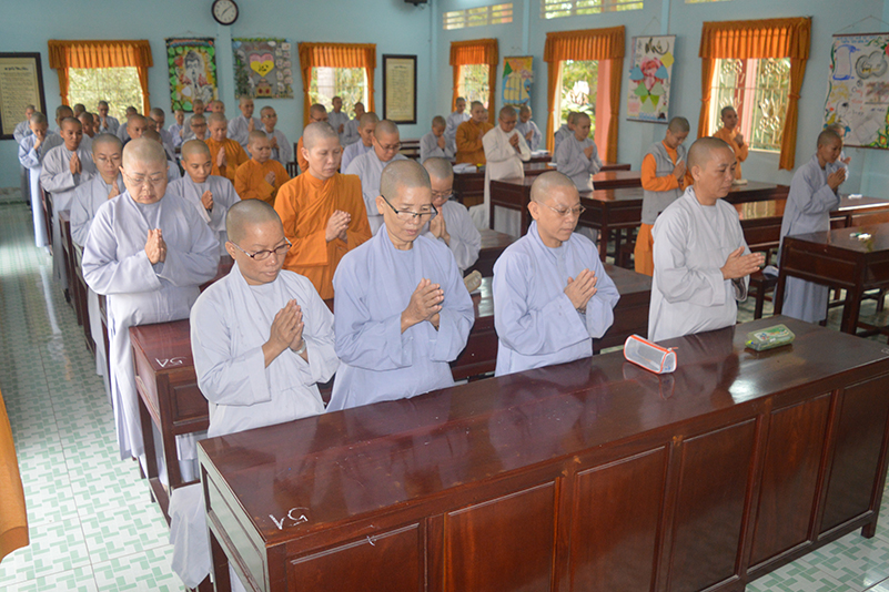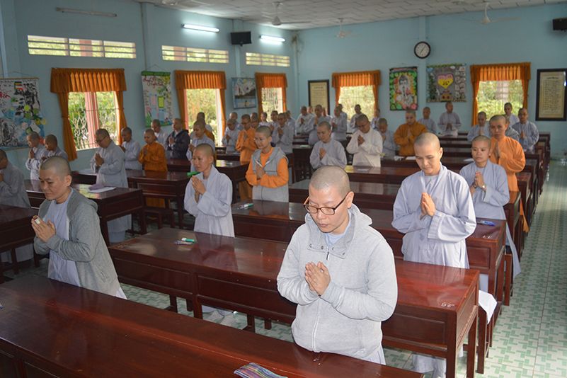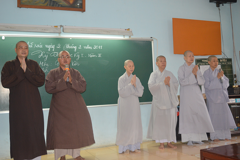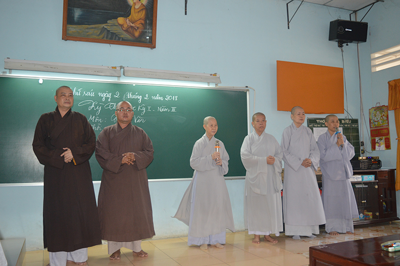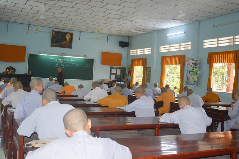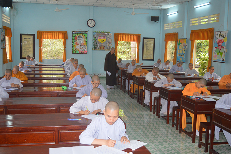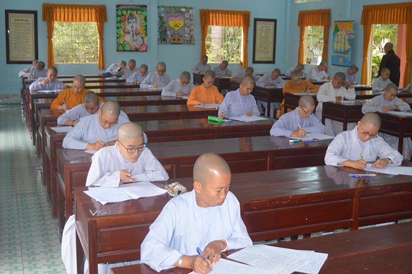 Nhằm kiểm tra kiến thức, cũng như tạo điều kiện cho các Tăng Ni sinh ôn tập và cô đọng lại bài học một cách logic hơn, sau thời gian tiếp thu ở giảng đường, sáng nay, ngày 02/2/2018 (17/12/Đinh Dậu), Ban giám hiệu Trường Trung Cấp Phật Học Long An đã tổ chức kỳ thi học kỳ I, năm thứ III cho Tăng Ni sinh khóa VI  thuộc 2 cơ sở, lớp Tăng tại Chùa Thiên Khánh và lớp Ni tại Chùa Thiên Phước.