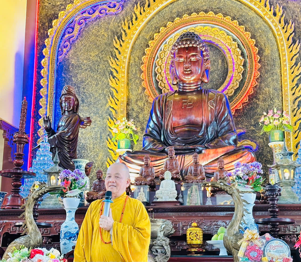 Trong niềm hoan hỷ, Hòa thượng ân cần giáo huấn, khuyến tấn đại chúng giữ gìn oai nghi tế hạnh, trau dồi đạo đức tự thân, không buông lung tâm ý. Ngài nhấn mạnh: “Hãy tự thắp đuốc lên mà đi, nương tựa nơi chính mình và nương tựa nơi Chánh pháp. Tinh tấn tu học chính là món quà ý nghĩa nhất dâng lên Tam bảo trong những ngày xuân.” Những lời dạy giản dị mà sâu sắc ấy trở thành kim chỉ nam cho hành trình tu tập của mỗi Tăng Ni trẻ.