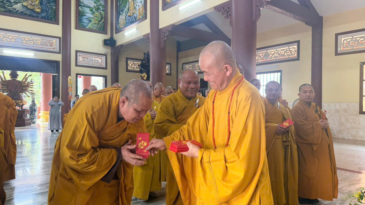 Trong niềm hoan hỷ, Hòa thượng ân cần giáo huấn, khuyến tấn đại chúng giữ gìn oai nghi tế hạnh, trau dồi đạo đức tự thân, không buông lung tâm ý. Ngài nhấn mạnh: “Hãy tự thắp đuốc lên mà đi, nương tựa nơi chính mình và nương tựa nơi Chánh pháp. Tinh tấn tu học chính là món quà ý nghĩa nhất dâng lên Tam bảo trong những ngày xuân.” Những lời dạy giản dị mà sâu sắc ấy trở thành kim chỉ nam cho hành trình tu tập của mỗi Tăng Ni trẻ.