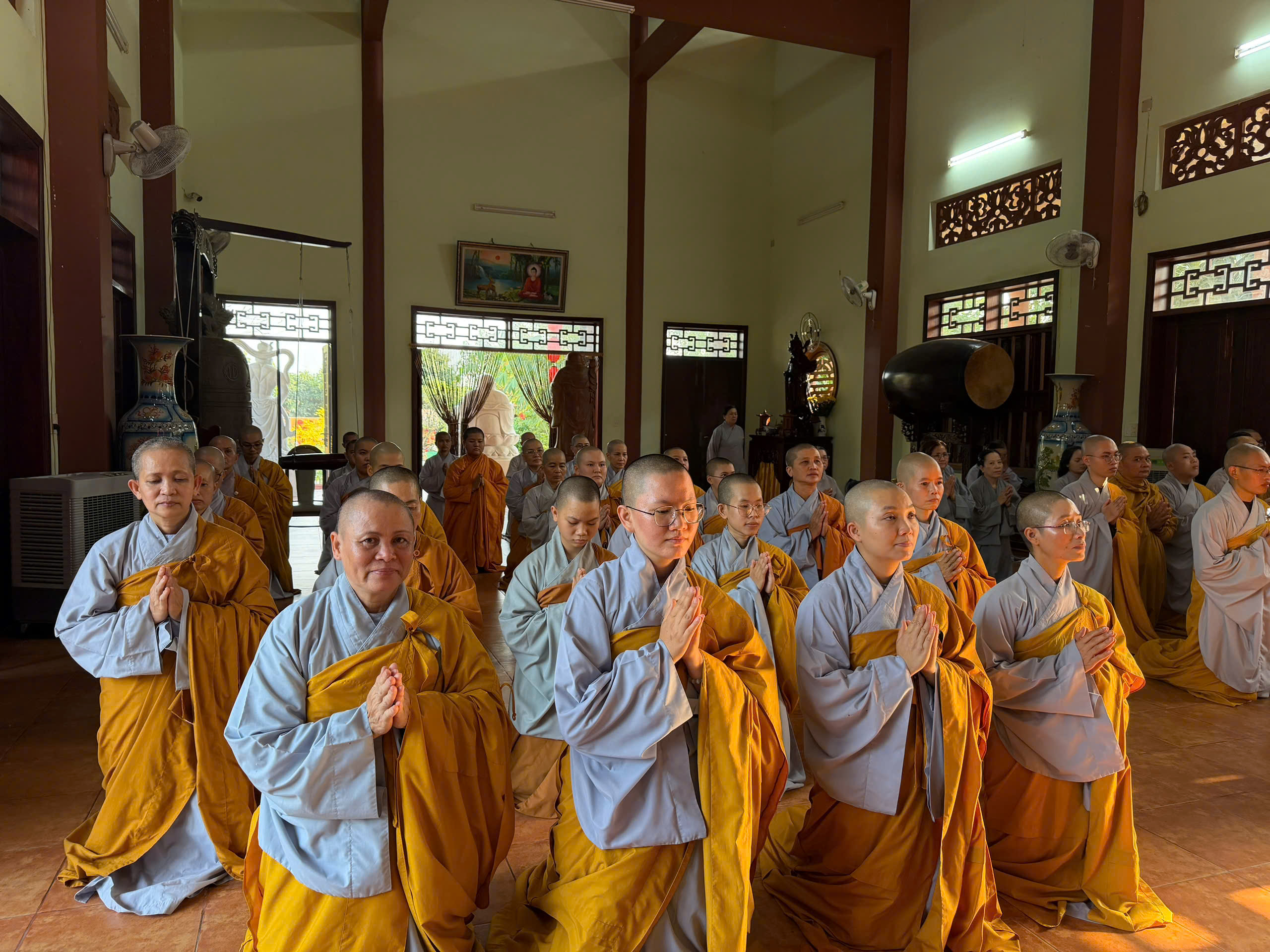 Đối trước bậc tôn túc thạch trụ tòng lâm, Ban Giám Hiệu và Tăng Ni sinh đồng quỳ dâng lời chúc thọ, nguyện cầu Hòa thượng pháp thể khinh an, đạo thọ miên trường, mãi là bóng cây đại thụ che chở hàng hậu học.