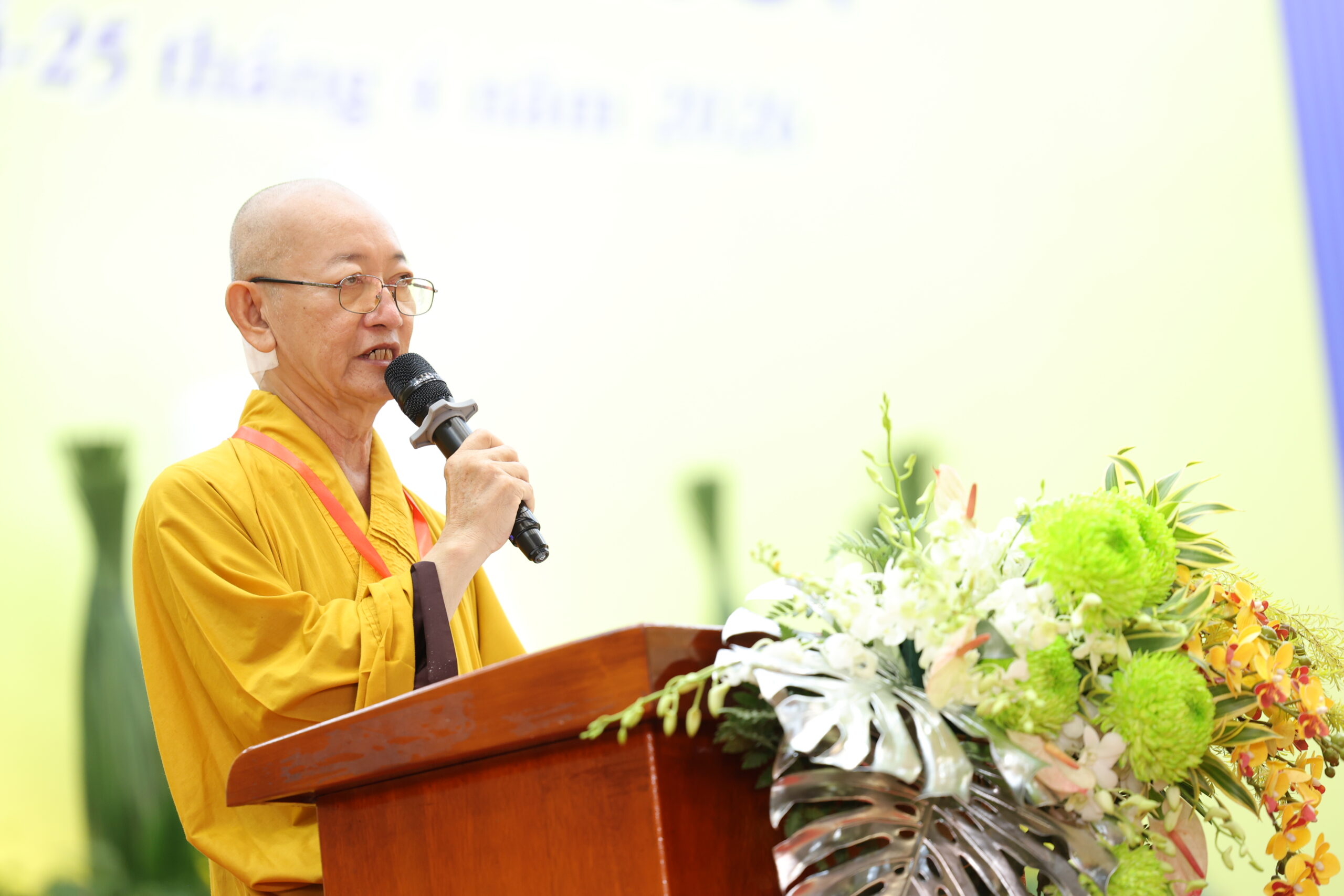 Thay lời chư Tôn đức chứng minh, Hòa thượng Thích Minh Thiện đã ban đạo từ, ôn lại chặng đường hình thành và phát triển của Giáo hội trong suốt hơn bốn thập niên qua. Hòa thượng nhấn mạnh những thành tựu nổi bật trong công tác hoằng pháp, giáo dục Tăng Ni, hướng dẫn Phật tử tu học, cũng như các hoạt động từ thiện xã hội, góp phần tích cực vào sự ổn định và phát triển của đất nước.