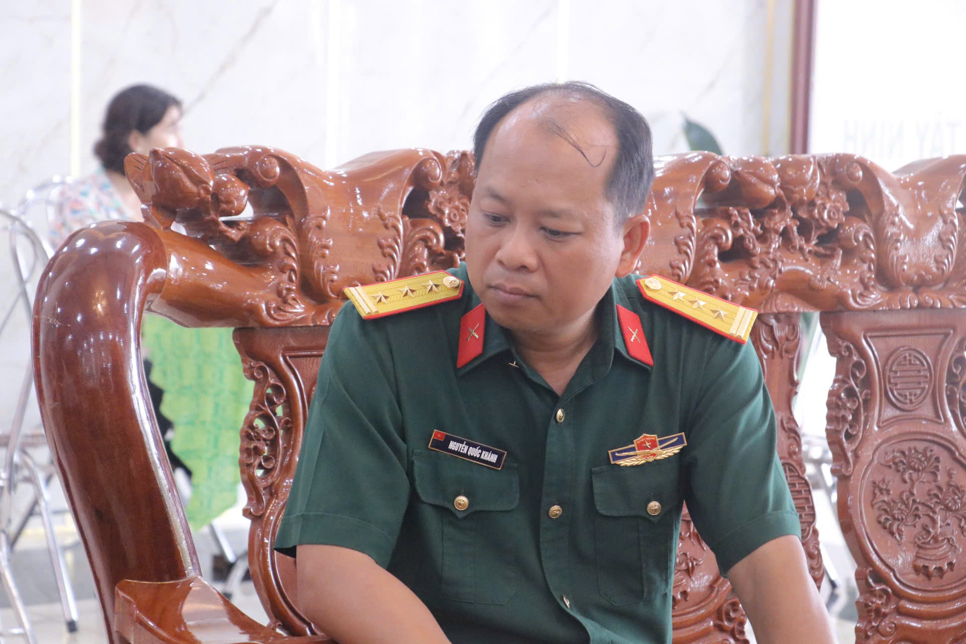 Đón tiếp phái đoàn có: Đại tá Nguyễn Thanh Phong – Chính ủy Bộ Chỉ huy Quân sự tỉnh, cùng đại diện các ban ngành trực thuộc BCH Quân sự tỉnh.