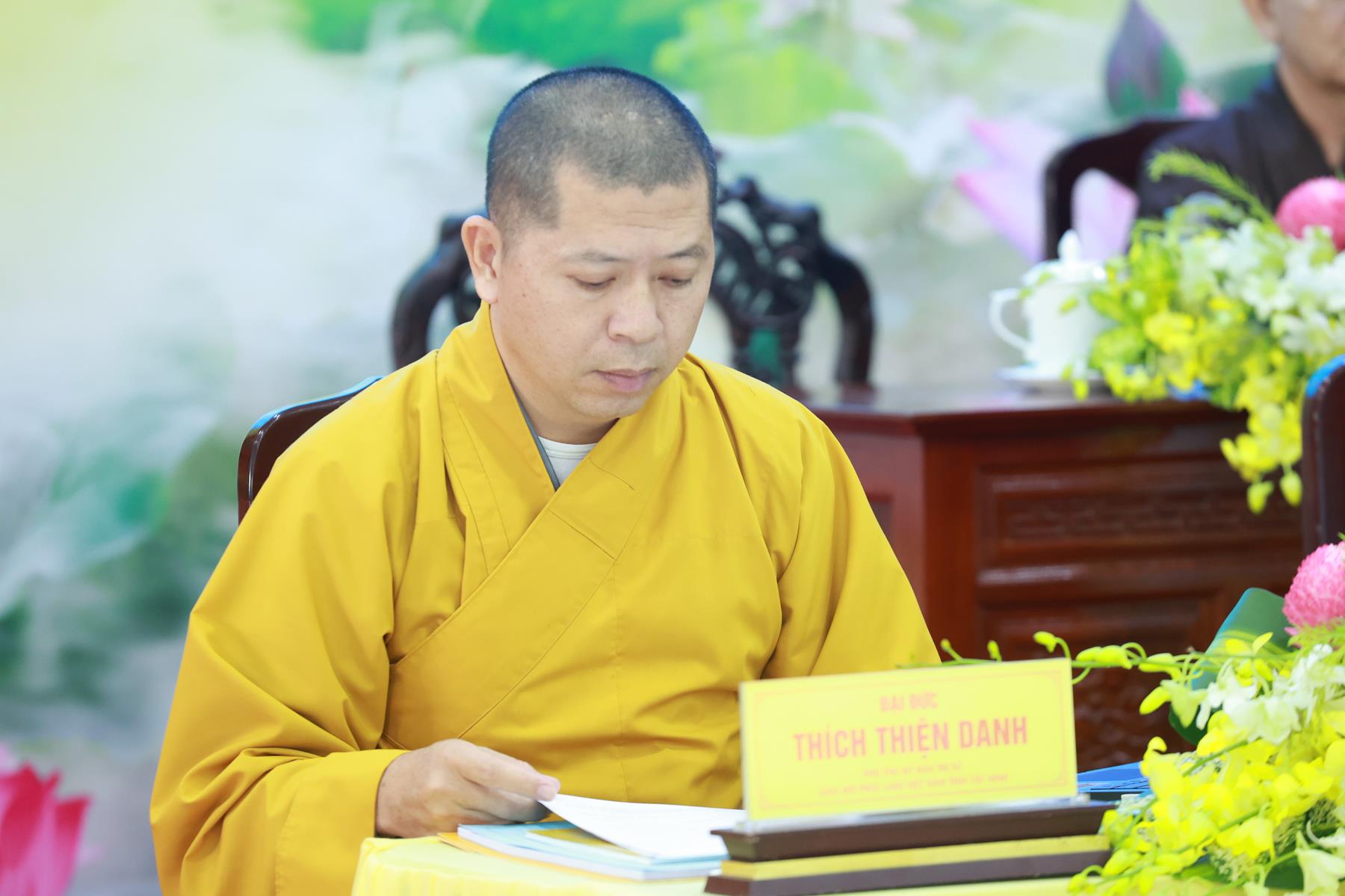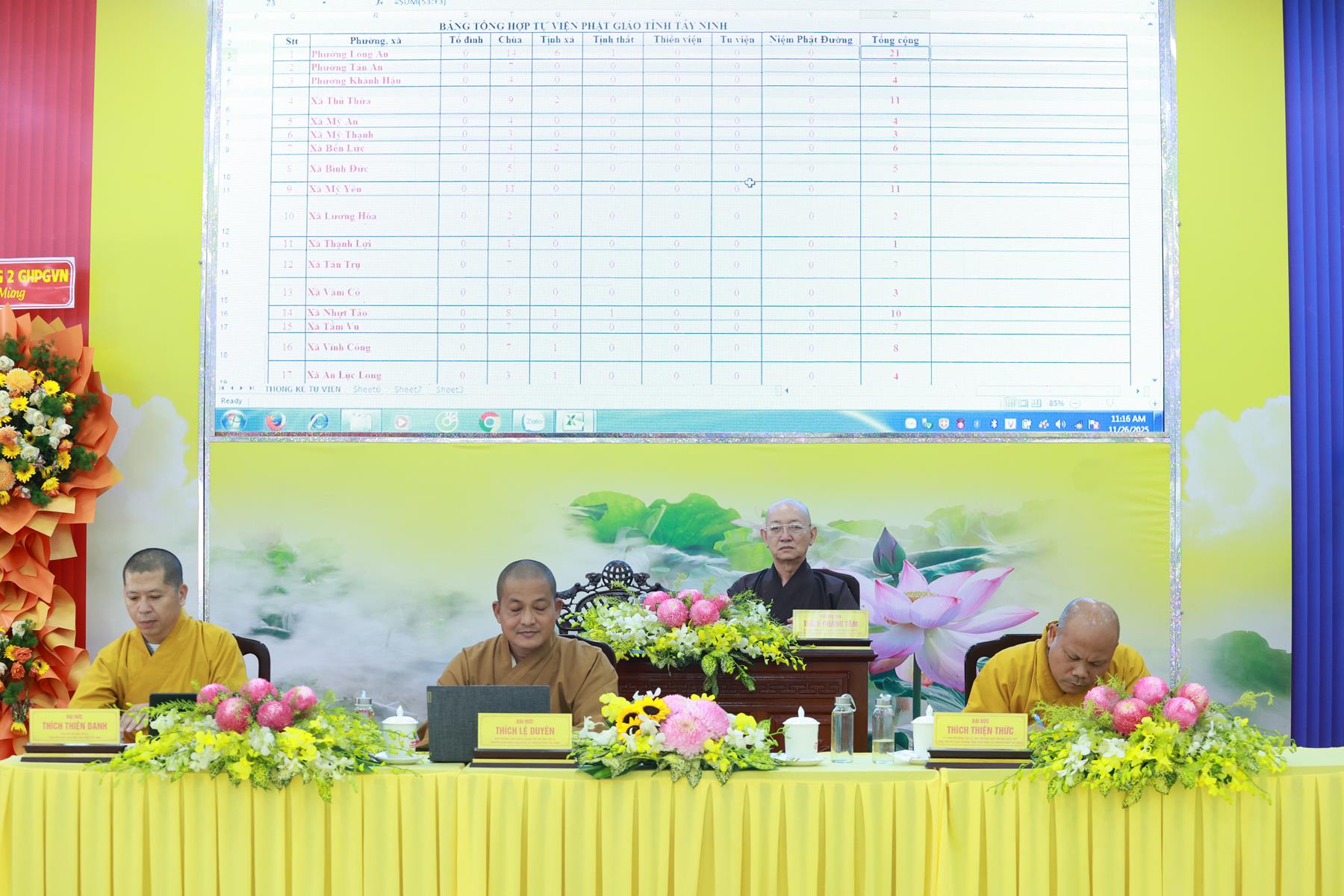 Tiếp đó, ĐĐ. Thích Thiện Danh, Phó Thư ký BTS GHPGVN tỉnh Tây Ninh, đã trình bày và hướng dẫn chi tiết 12 thủ tục hành chính hiện đang được tiếp nhận và giải quyết tại BTS tỉnh, bao gồm: Hướng dẫn hồ sơ xuất gia; Hồ sơ cấp chứng điệp thọ giới; Hồ sơ An cư kiết hạ; Hồ sơ cấp chứng nhận Tăng Ni; Hồ sơ Trụ trì; Hồ sơ thành lập Ban Quản trị tự viện; Hồ sơ thuyên chuyển Tăng sự; Hồ sơ thành lập cơ sở tự viện mới; Hồ sơ thành lập điểm nhóm sinh hoạt tôn giáo tập trung; Hồ sơ xin phép xây dựng; Hồ sơ cấp đất; Hồ sơ tổ chức lễ hội.