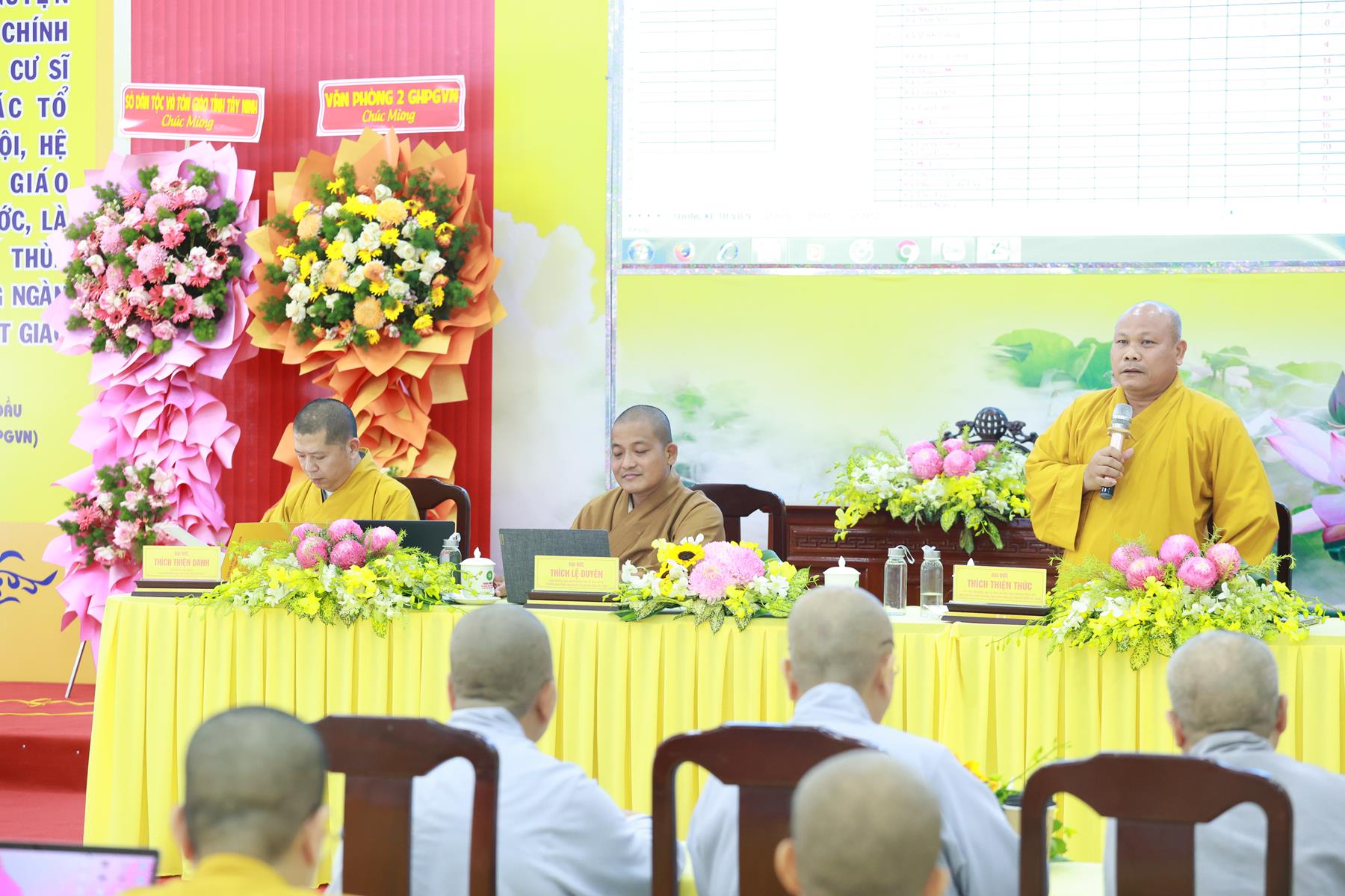 Mở đầu phiên làm việc, ĐĐ. Thích Lệ Duyên, Phó Trưởng ban kiêm Chánh Thư ký BTS GHPGVN tỉnh Tây Ninh, đã nêu những vấn đề còn tồn đọng liên quan đến pháp lý, hồ sơ hành chánh trong thời gian qua. Đại đức nhấn mạnh ý nghĩa và tầm quan trọng của khóa tập huấn trong việc nâng cao nghiệp vụ hành chánh Giáo hội, tăng cường ứng dụng công nghệ số vào các hoạt động Phật sự và công tác quản lý tự viện.