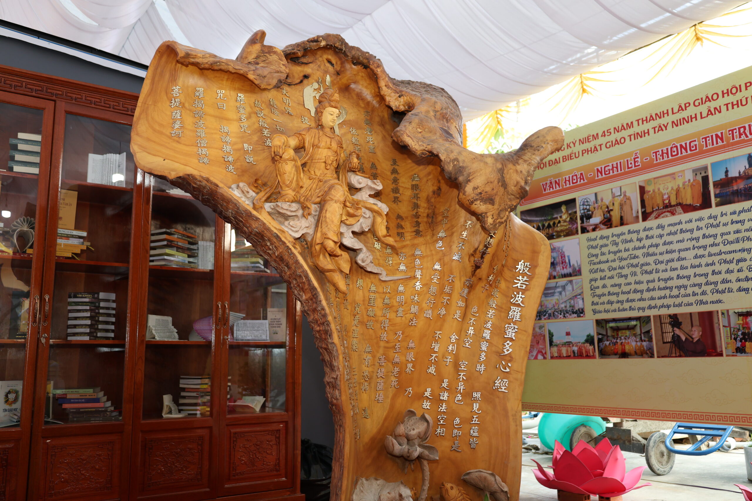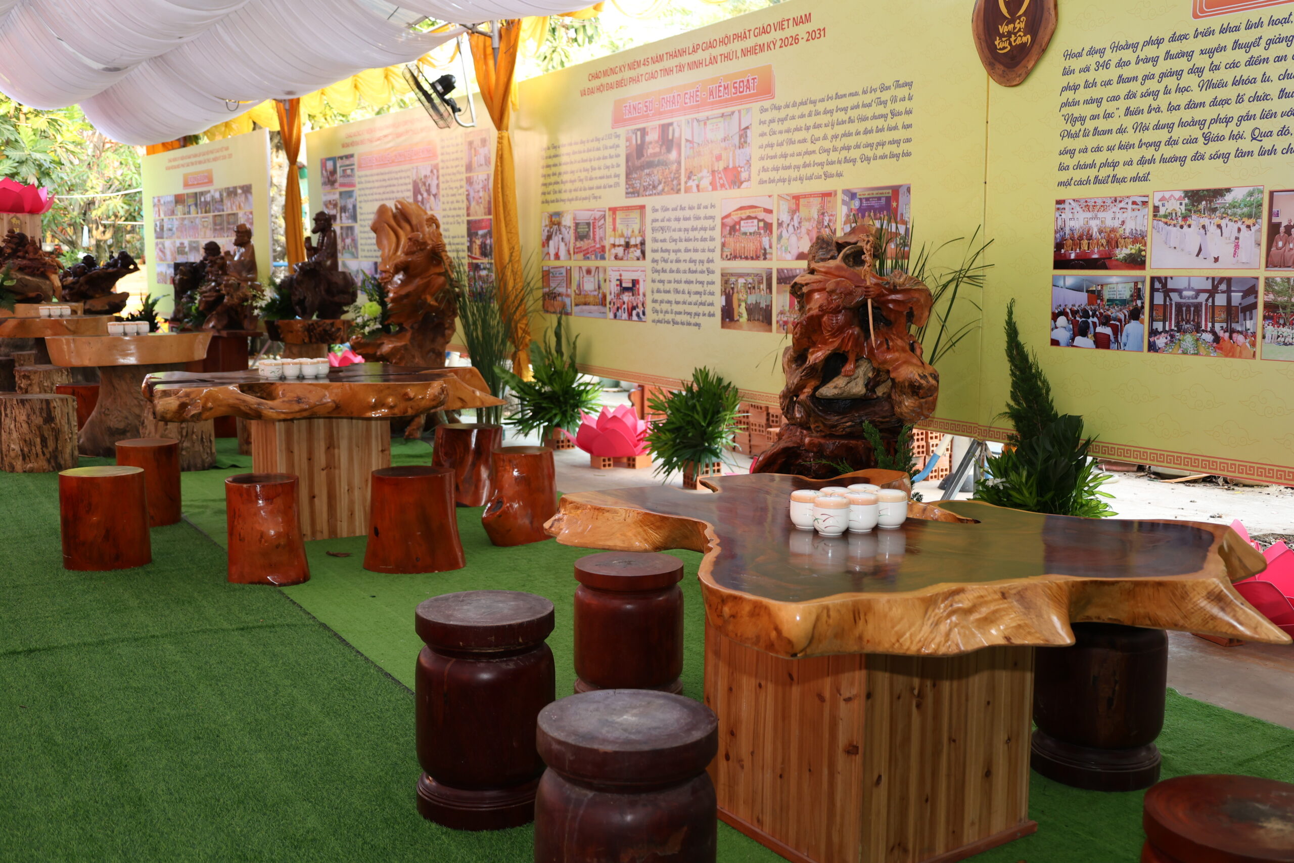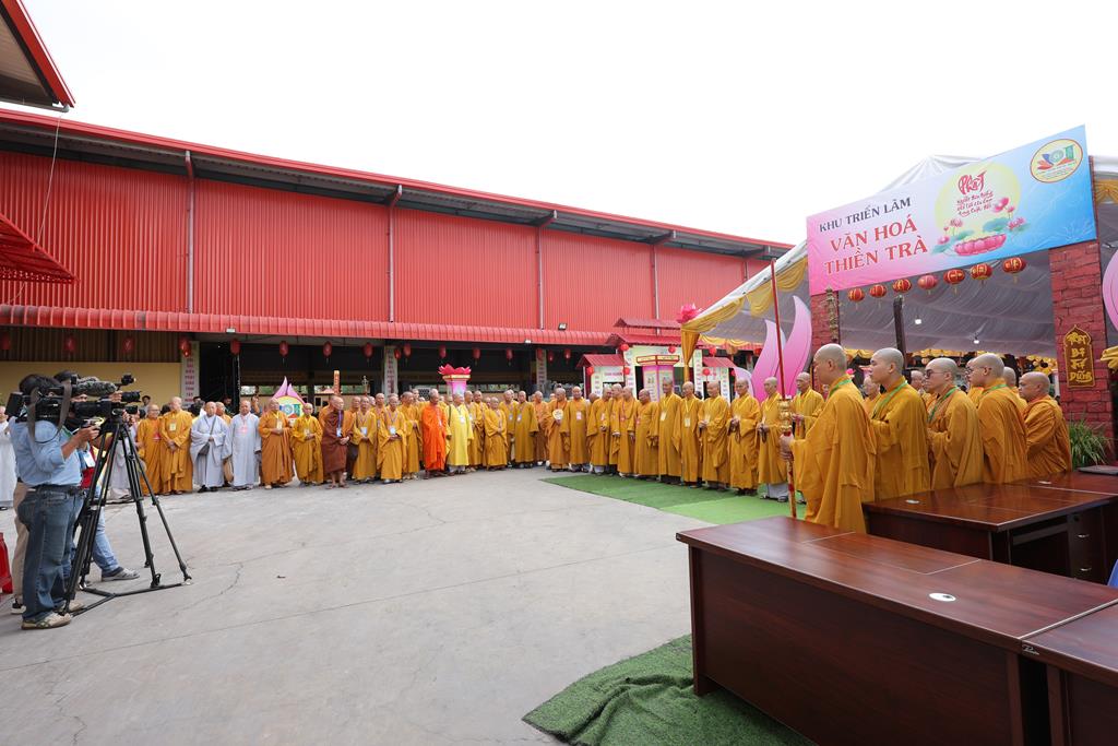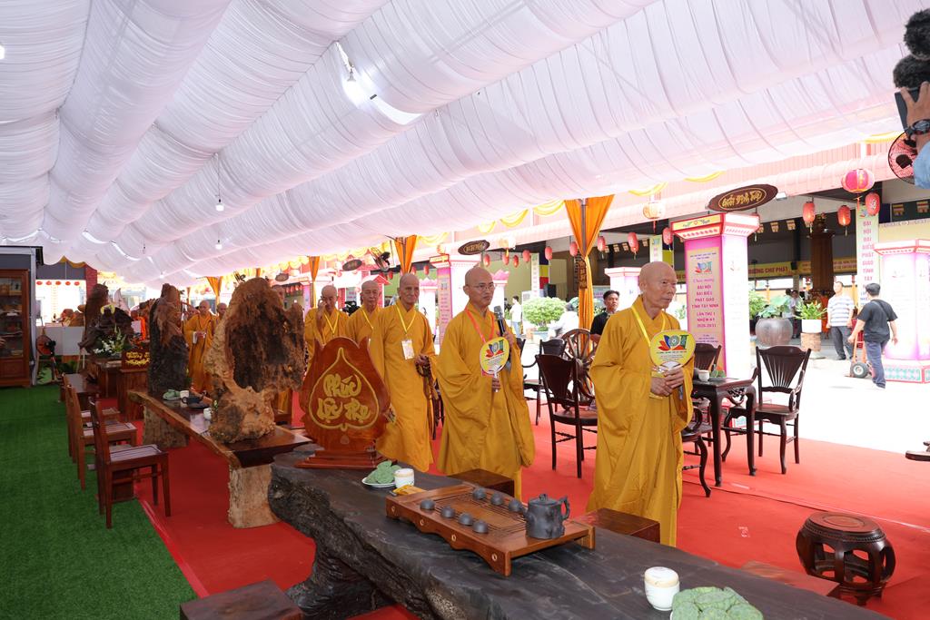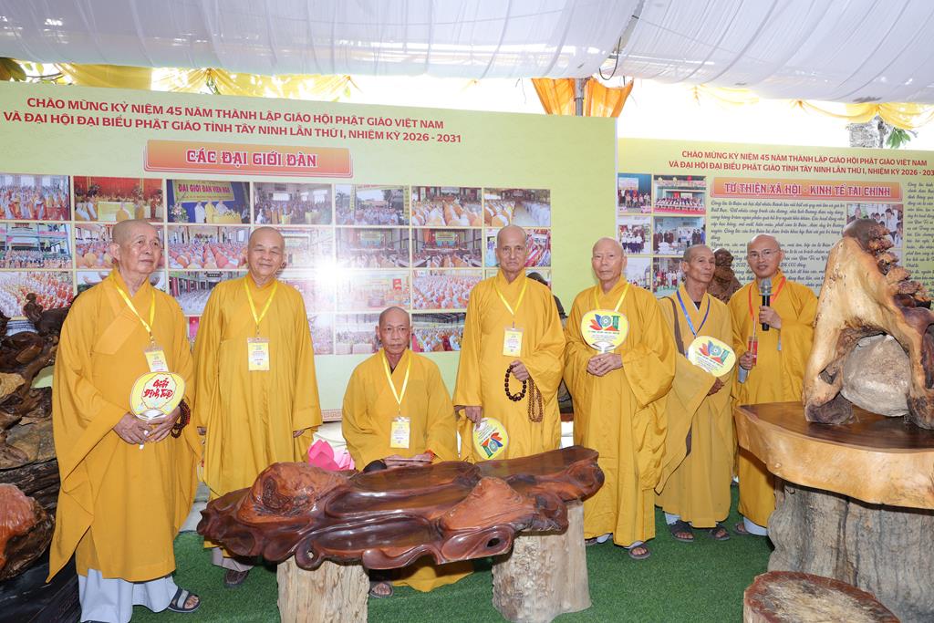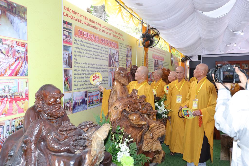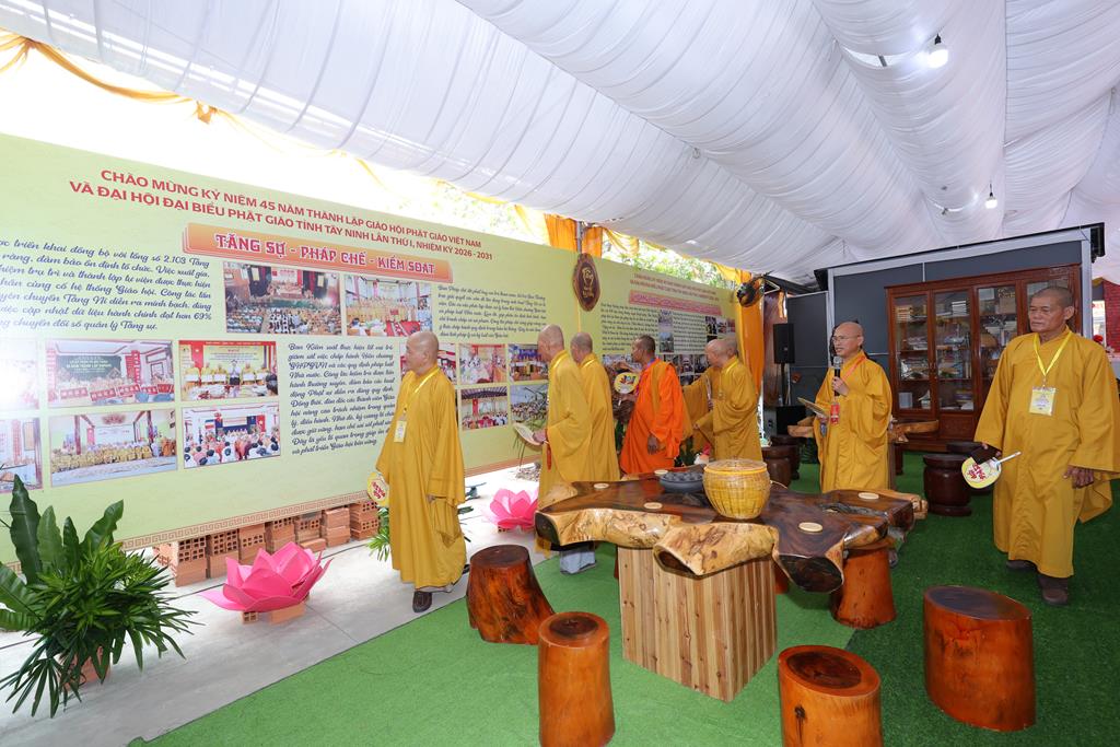 Trước không gian triển lãm, Chư Tôn đức đã cử hành nghi thức cắt băng khai mạc triển lãm kỷ niệm 45 năm thành lập GHPGVN và Đại hội đại biểu Phật giáo tỉnh Tây Ninh lần thứ I. Không gian triển lãm được thiết trí trang nghiêm, giới thiệu nhiều hình ảnh, tư liệu qua nhiều giai đoạn, tiến trình hình thành và phát triển của GHPGVN từ ngày thành lập, cũng như tập trung giới thiệu các hình ảnh Phật giáo tỉnh Long An (cũ) và Tây Ninh (cũ) từ những ngày đầu thành lập Giáo hội đến nay.
