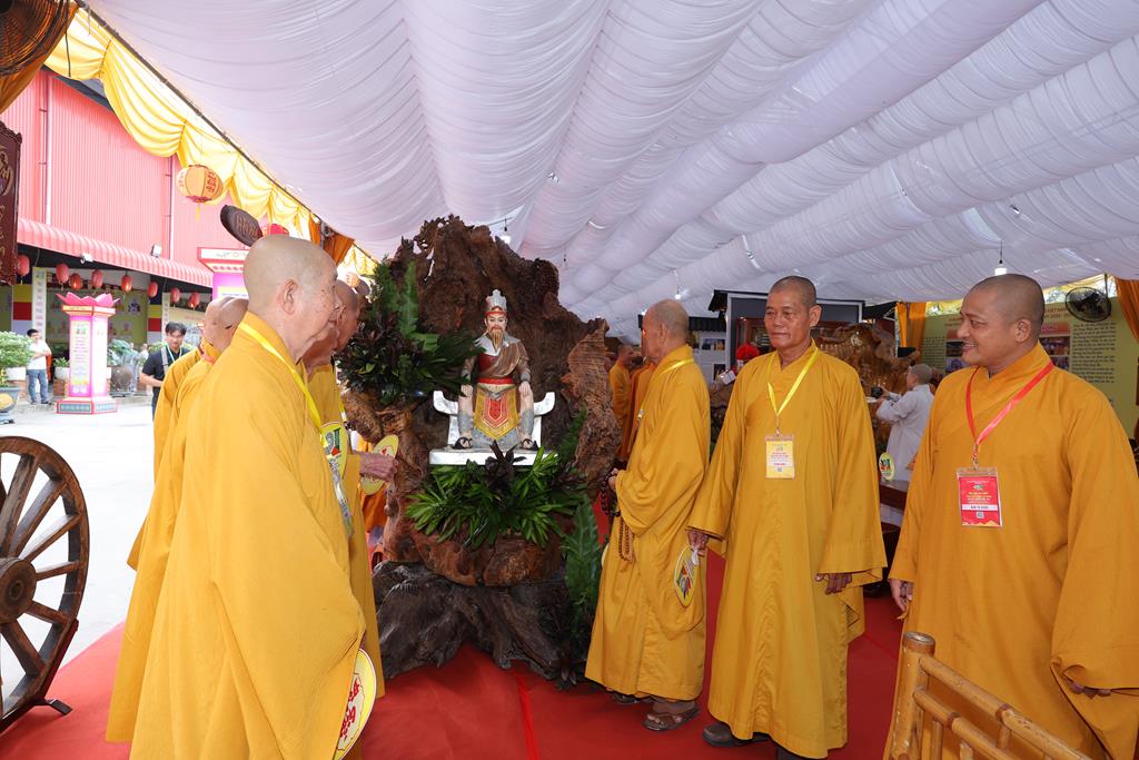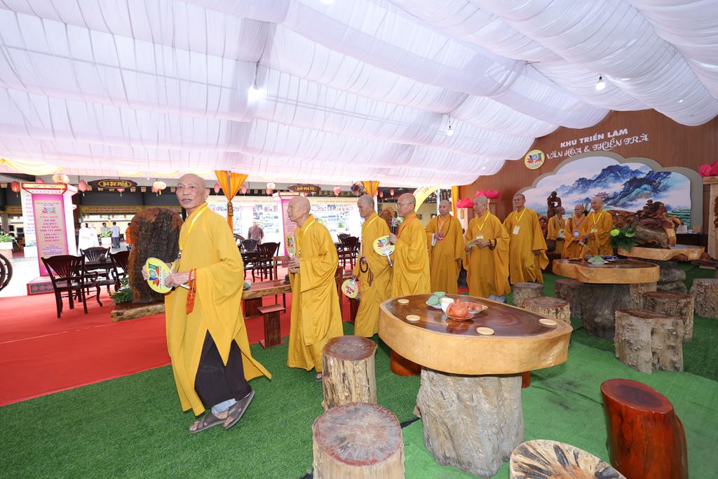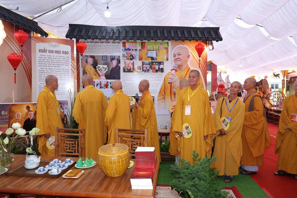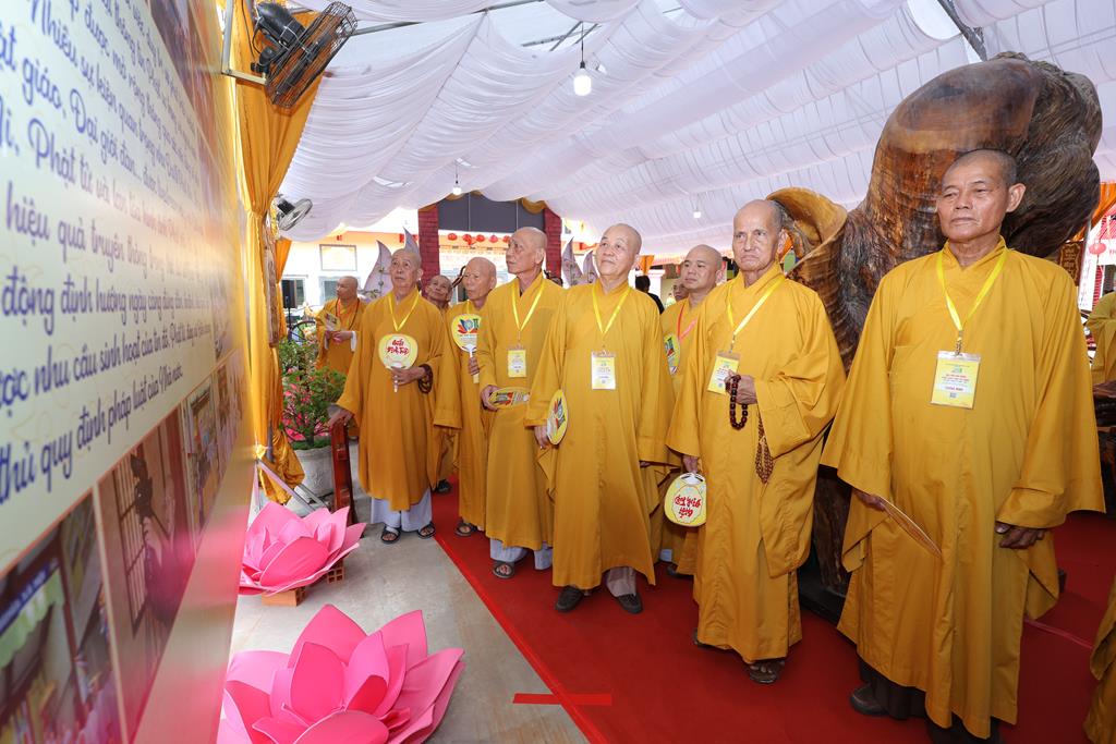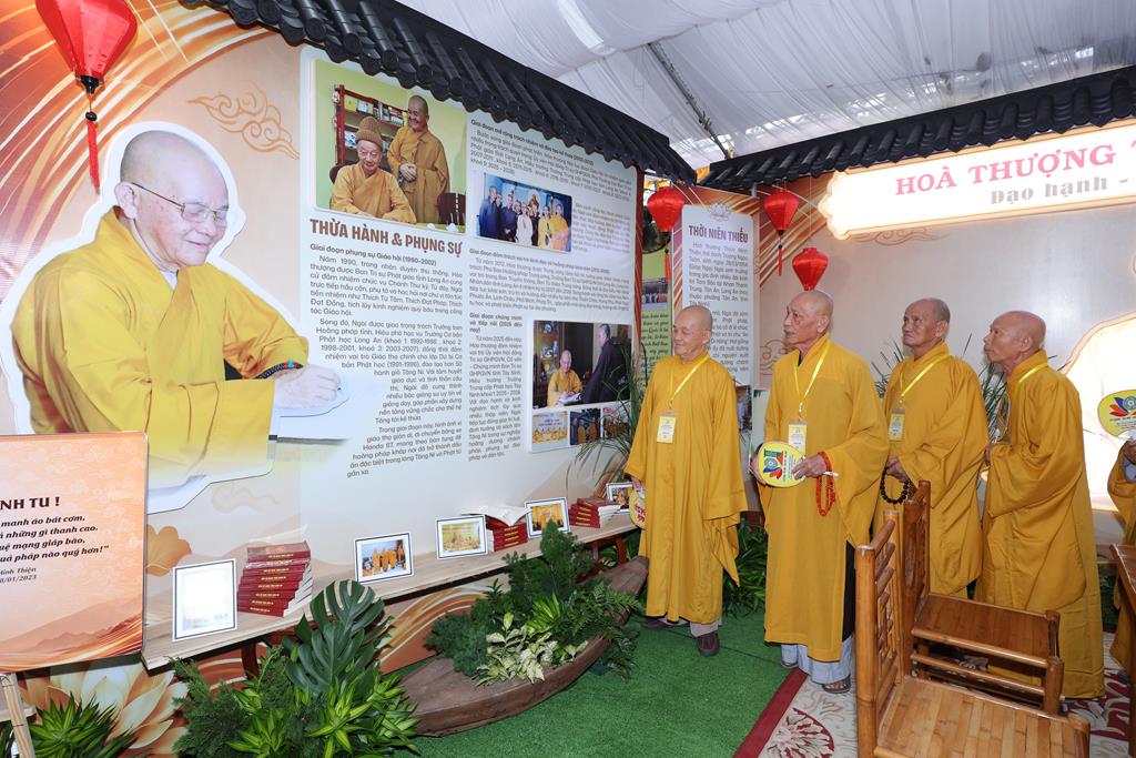Sau nghi thức khánh thành, Chư Tôn đức đã quang lâm vào trong khu vực triển lãm tham quan và lắng nghe phần thuyết minh giới thiệu các nội dung trưng bày. Trong không gian được bài trí hài hòa, giàu tính nghệ thuật và chiều sâu lịch sử, Chư Tôn đức đã dừng chân tại từng khu vực, chiêm ngưỡng những hình ảnh, tư liệu quý phản ánh quá trình hình thành, phát triển của Giáo hội qua từng giai đoạn.