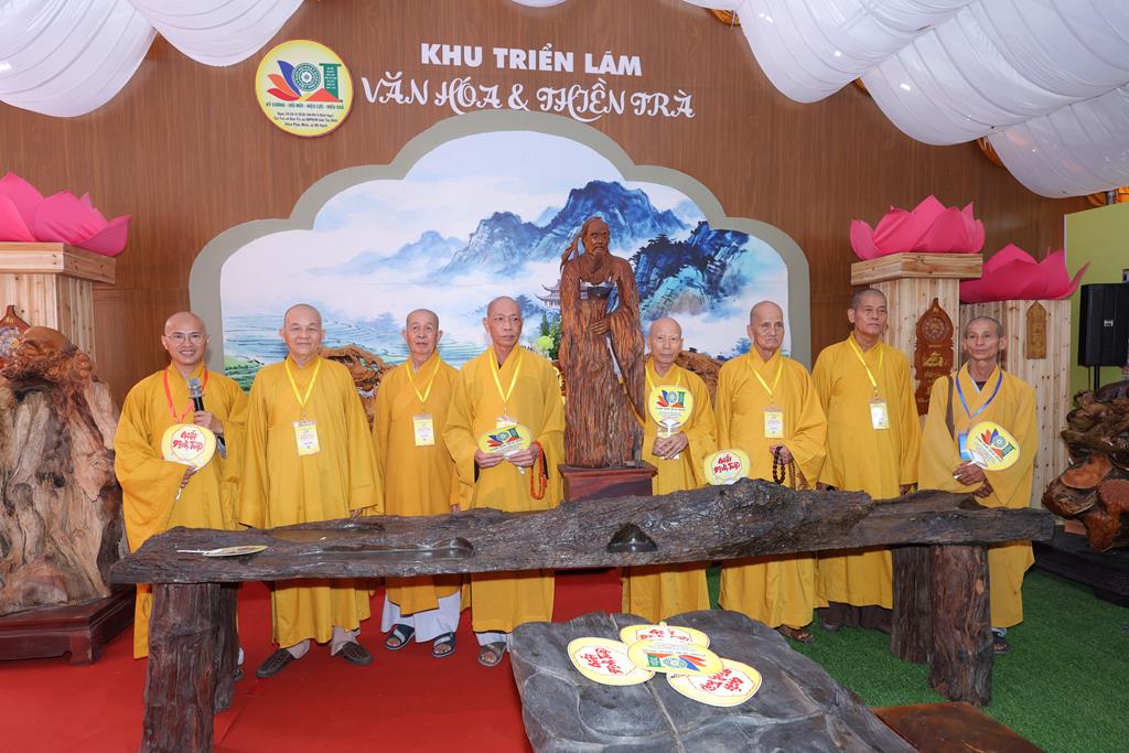 Thượng tọa Thích Lệ Trí – Ủy viên HĐTS, Phó Trưởng Ban Trị sự GHPGVN tỉnh, Trưởng Ban Triển lãm – Trang Trí – Trần thiết Đại hội trình bày nội dung trưng bày khái quát dấu mốc lịch sử chung của Phật giáo tỉnh, đặc biệt là sự kế thừa và tiếp nối giữa Phật giáo Long An (cũ) và Tây Ninh (cũ) – những nền tảng đã góp phần hình thành diện mạo Phật giáo tỉnh Tây Ninh hiện nay với hệ thống tự viện, Tăng Ni và các hoạt động Phật sự ngày càng ổn định, phát triển. Cùng với đó là hoạt động của các ban chuyên ngành GHPGVN tỉnh Tây Ninh cũng được trình bày tại triển lãm, tái hiện sinh động các lĩnh vực hoạt động tiêu biểu như Hoằng pháp, Giáo dục Tăng Ni, Văn hóa Phật giáo, Từ thiện xã hội,… những dấu ấn thể hiện rõ tinh thần “Đạo pháp – Dân tộc – Chủ nghĩa xã hội” trong suốt chặng đường phát triển. Nhiều không gian tư liệu gợi lại những ký ức trong dòng chảy lịch sử và sự kế thừa mà chư Tôn đức tiền bối đã dày công gây dựng.