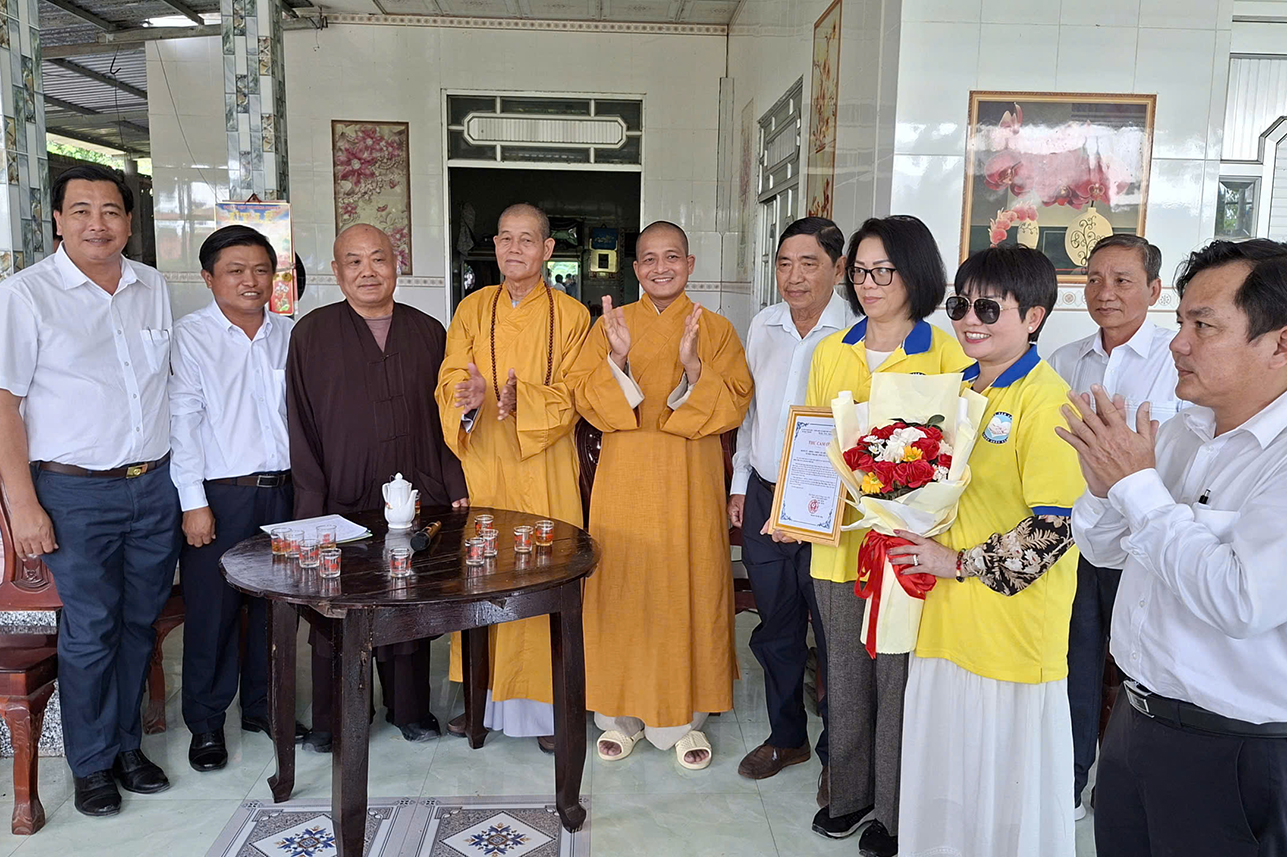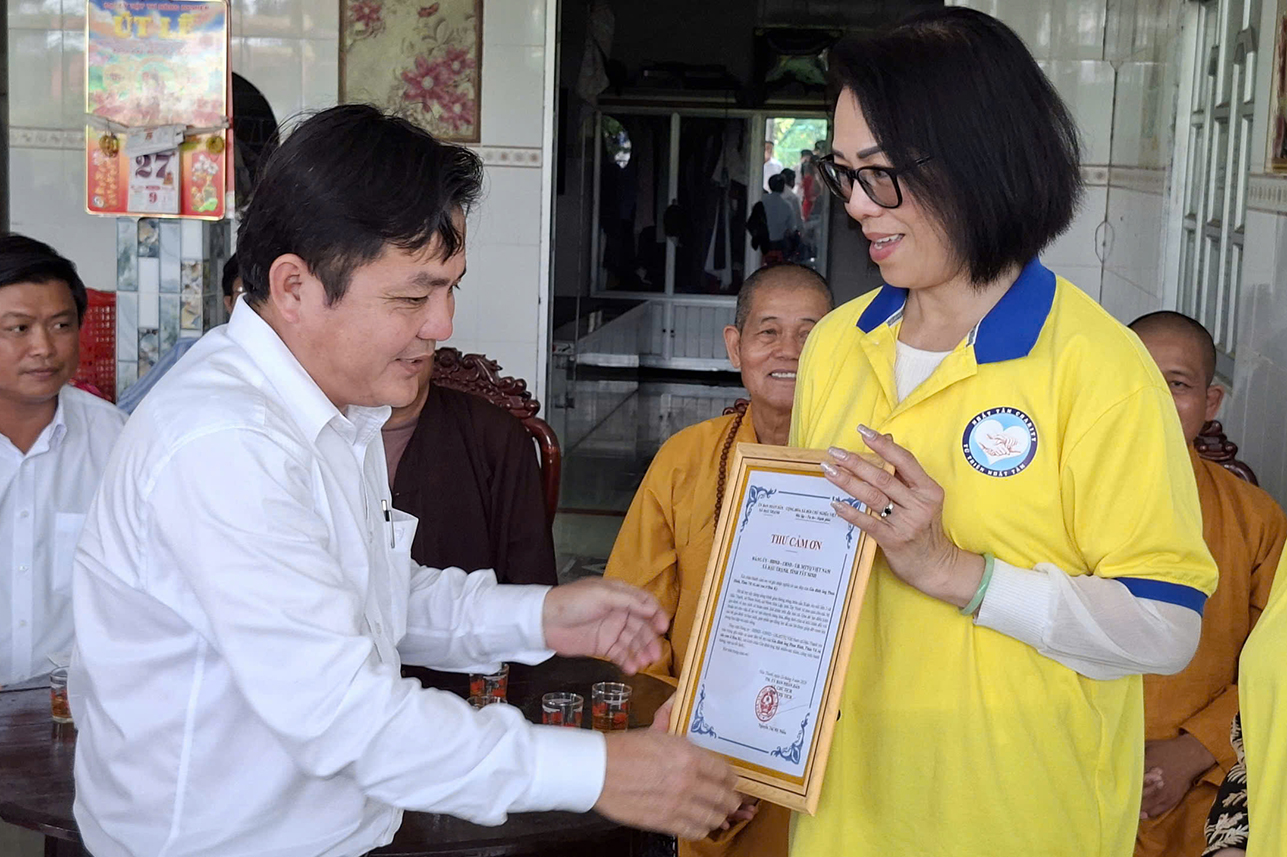 Tại buổi lễ, chư Tôn đức, đại diện nhà tài trợ và chính quyền đã có những lời phát biểu đầy ý nghĩa, nhấn mạnh tinh thần từ bi, sẻ chia của những người con Phật và kiều bào xa xứ hướng về quê hương. Ghi nhận những đóng góp thiết thực này, đại diện chính quyền đã trân trọng trao Thư cảm tạ và Giấy khen vinh danh các nhà tài trợ.