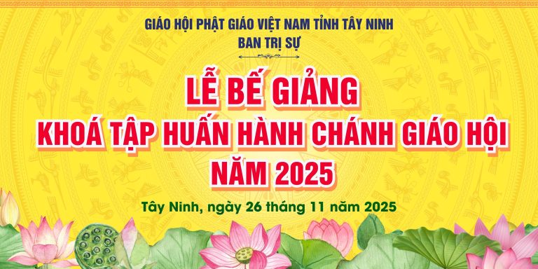 Chiều ngày 26/11/2025, Ban Trị sự GHPGVN tỉnh Tây Ninh tổ chức Lễ Bế giảng Khóa tập huấn hành chánh Giáo hội năm 2025 tại Hội trường Trụ sở GHPGVN tỉnh, chùa Pháp Minh, ấp Giồng Lớn, xã Mỹ Hạnh. Chứng minh và tham dự buổi lễ có: TLHT. Thích Thiện Huệ – Thành viên … Đọc tiếp Tây Ninh: Lễ Bế giảng Khóa tập huấn hành chánh Giáo hội năm 2025