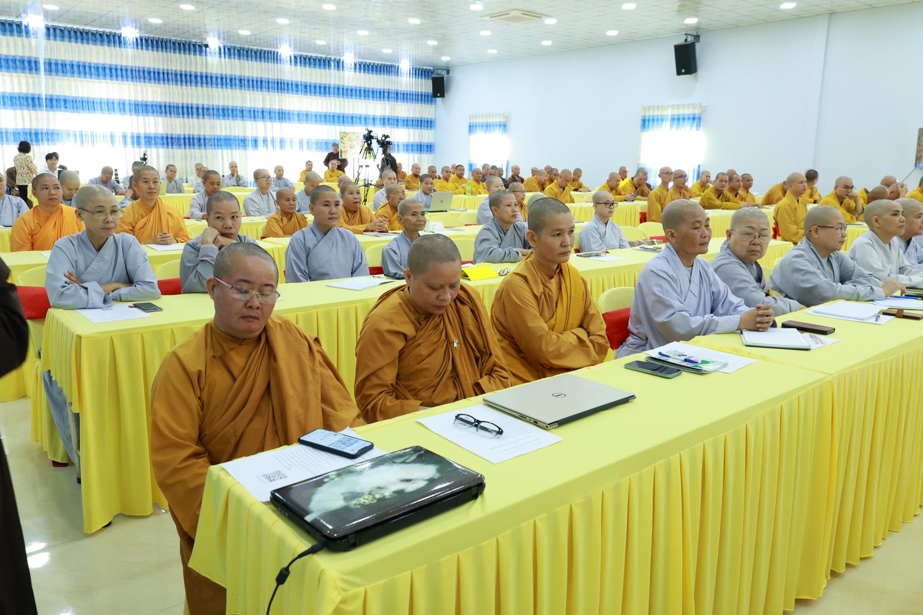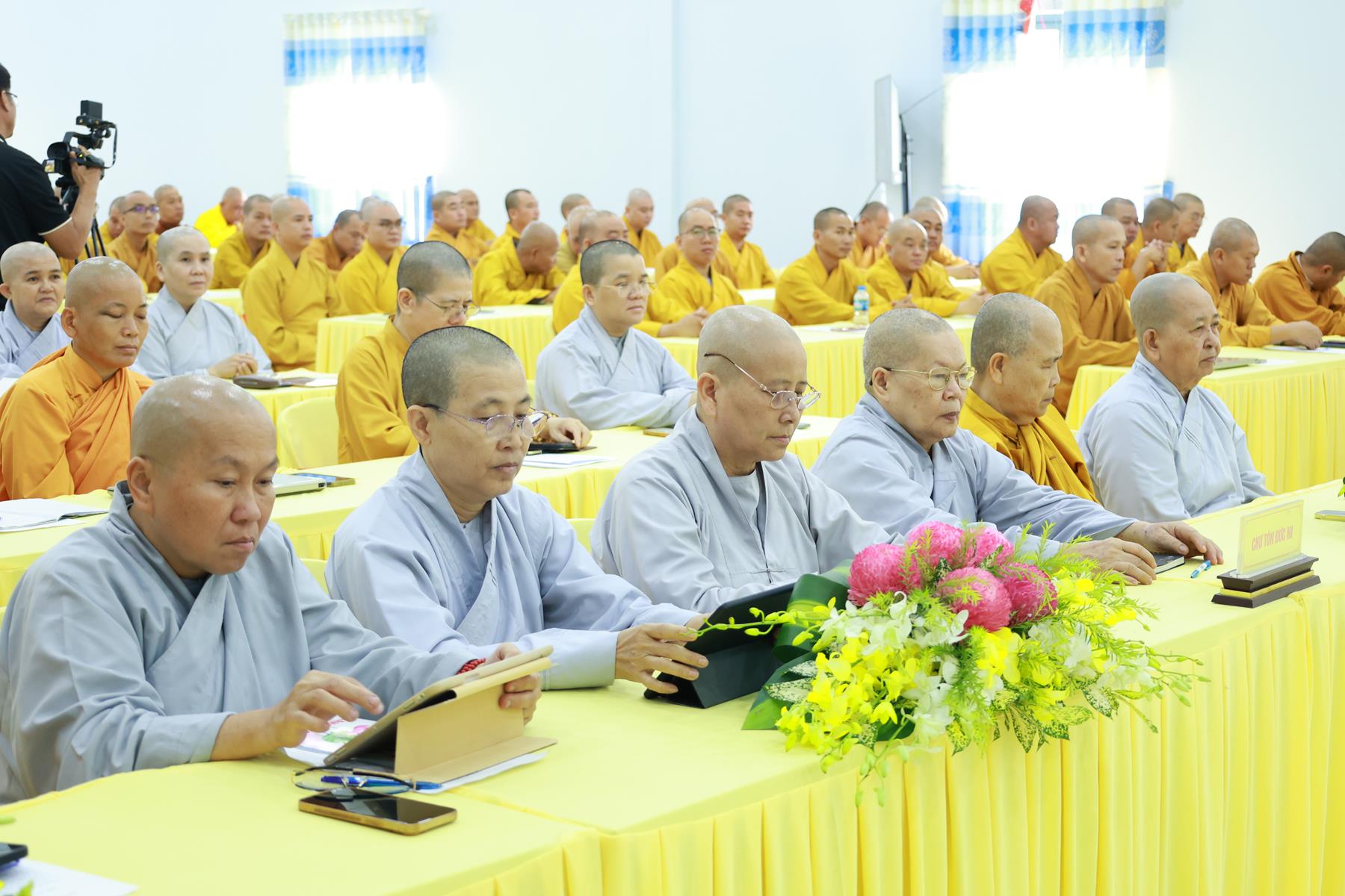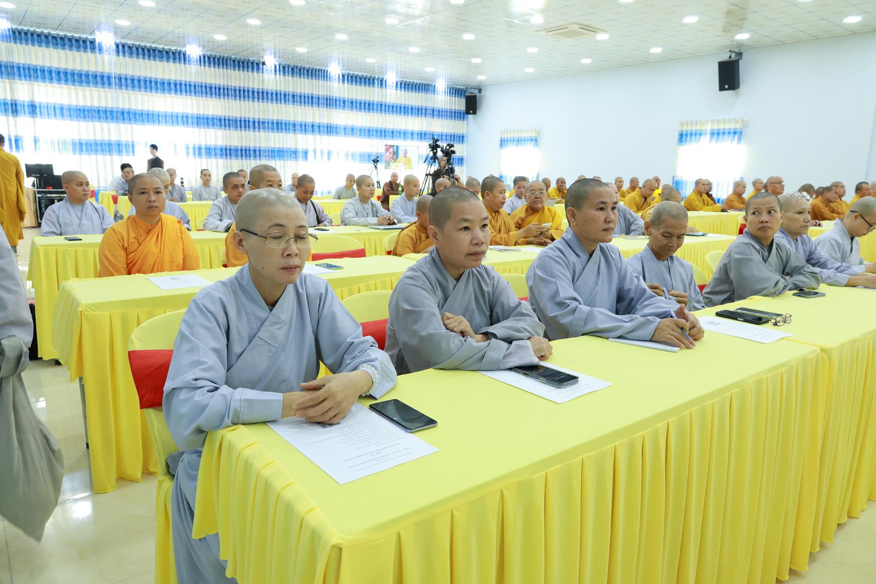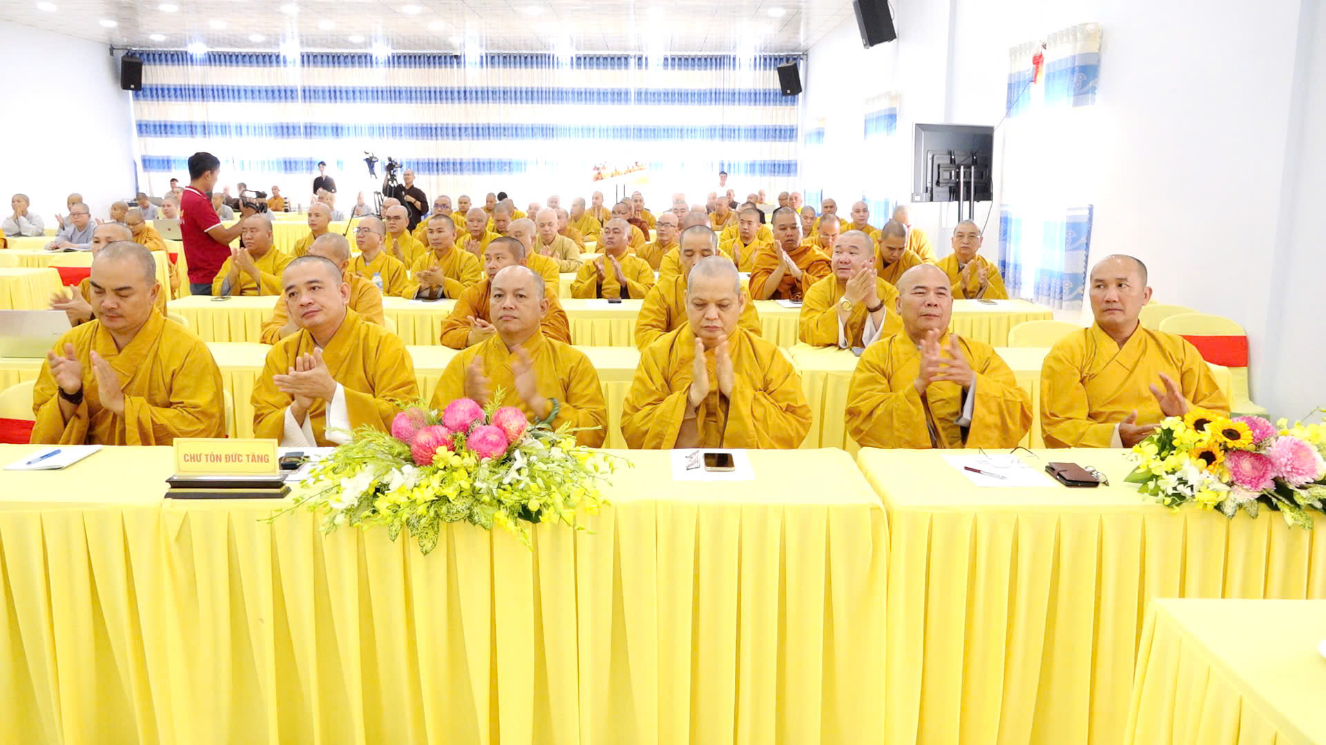 Báo cáo khái quát công tác tổ chức Khóa tập huấn, ĐĐ. Thích Thiện Danh – Phó Thư ký kiêm Phó Văn phòng BTS GHPGVN tỉnh cho biết Khóa tập huấn năm nay được tổ chức trong 03 ngày từ 24-26/11/2025 (nhằm ngày 05-07/10/Ất Tỵ) tại Trụ sở BTS GHPGVN tỉnh – Chùa Pháp Minh, xã Mỹ Hạnh, tỉnh Tây Ninh. Năm nay, Khóa tập huấn có gần 200 đại biểu là Chư Tôn đức thành viên BTS GHPGVN tỉnh, Chư Tôn đức Đại diện Phật giáo xã, phường và Chư Tôn đức Tăng Ni các tự viện tiêu biểu. Với nhiều nội dung học như: Hiến chương Giáo hội, Quy chế hoạt động Ban Tăng sự Trung ương GHPGHVN nhiệm kỳ 2022-2027; Luật Tín ngưỡng, tôn giáo; Luật Đất đai; soạn thảo văn bản hành chánh Giáo hội; nộp hồ sơ dịch vụ công trực tuyến; ứng dụng trí tuệ nhân tạo (AI); thủ tục hành chánh Giáo hội và kỹ năng lãnh đạo, quản lý văn phòng,… do Ban Giảng huấn là Chư Tôn đức HĐTS, Văn phòng II TW, Chư Tôn đức BTS GHPGVN tỉnh, các báo cáo viên từ Sở Dân tộc – Tôn giáo, Sở Công an, Sở Khoa học – Công nghệ tỉnh và giảng viên các trường đại học.