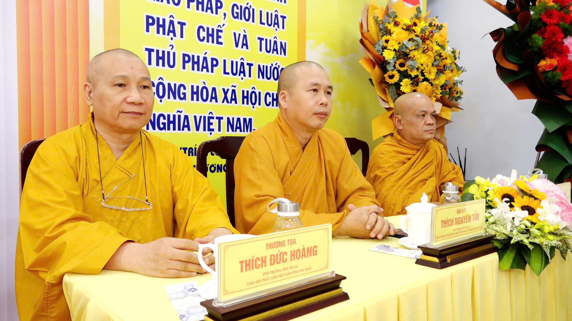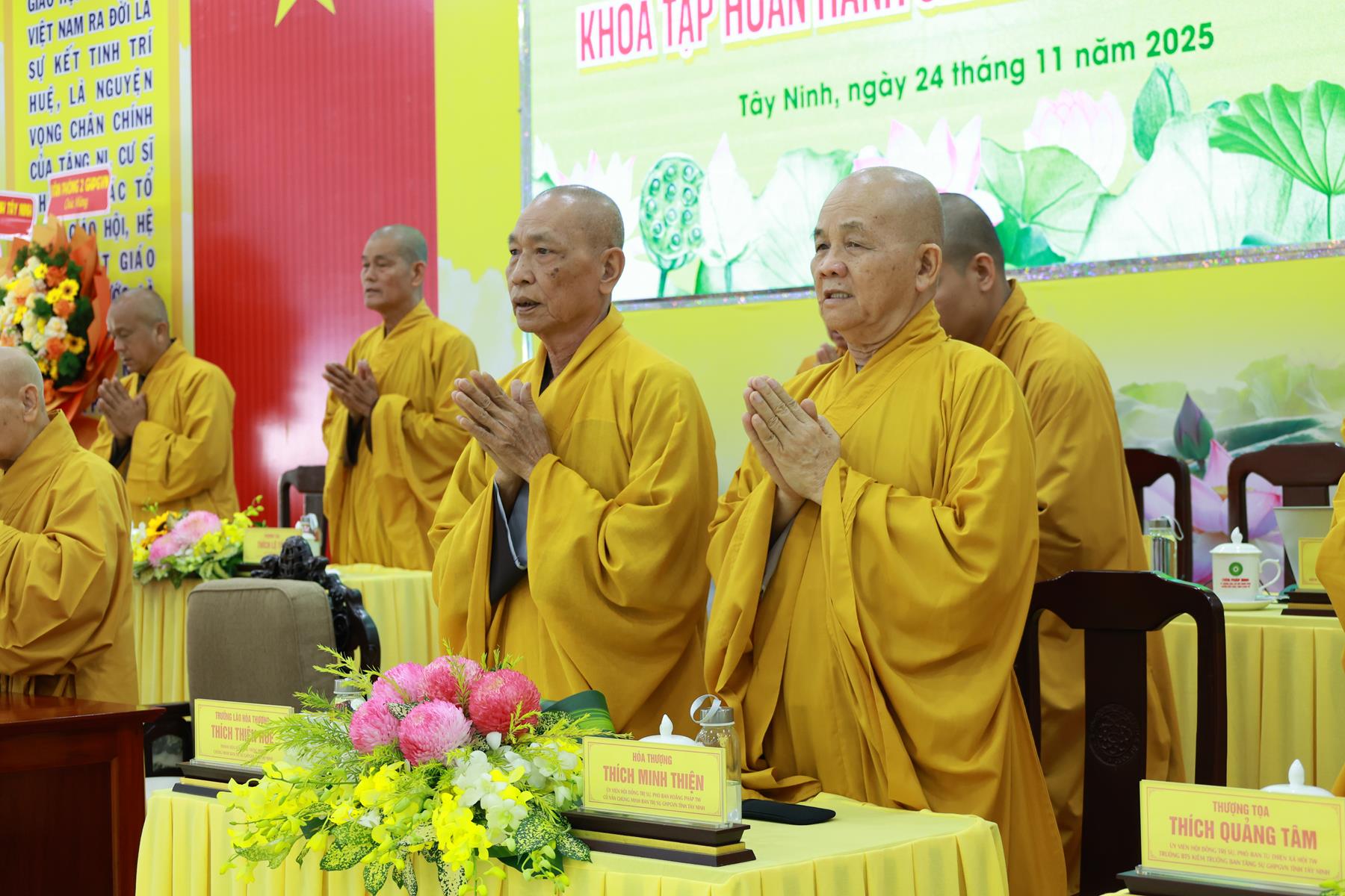 Quang lâm chứng minh và tham dự buổi lễ có: TLHT. Thích Thiện Nhơn – Phó Pháp chủ HĐCM, Chủ tịch HĐTS, Trưởng Ban Tăng sự TW GHPGVN; TLHT. Thích Thiện Pháp – UV Ban Thường trực HĐCM, Phó Chủ tịch Thường trực HĐTS, Trưởng ban Kiểm soát Trung ương GHPGVN; TLHT. Thích Thanh Hùng – UV Ban Thường trực HĐCM GHPGVN; TLHT. Thích Thiện Huệ – Thành viên HĐCM, Chứng minh BTS GHPGVN tỉnh Tây Ninh; HT. Thích Minh Thiện – UV HĐTS, Phó ban Hoằng Pháp TW, Chứng minh, cố vấn BTS GHPGVN tỉnh; TT. Thích Quảng Tiến – UV HĐTS, Phó Chánh Văn phòng 2 TW GHPGVN; ĐĐ. Thích Minh Ân – UV HĐTS, Phó Chánh Văn phòng 2 TW GHPGVN; TT. Thích Đạo Phước – Phó Trưởng Ban Thông tin truyền thông TW GHPGVN; TT. Thích Quảng Tâm – UV HĐTS, Phó ban Từ thiện xã hội TW, Trưởng BTS GHPGVN tỉnh, Trưởng BTC Khóa tập huấn; HT. Thích Huệ Hồng, HT. Thích Thiện Tài – Đồng Chứng minh BTS GHPGVN tỉnh; ĐĐ. Thích Thiện Thức – UV HĐTS, Phó Trưởng Ban Thường trực BTS GHPGVN tỉnh; Chư Tôn đức Ban Chứng minh BTS GHPGVN tỉnh, Chư Tôn đức Phó BTS, Ủy viên BTS và 200 Chư Tôn đức Tăng Ni về tham dự Khóa tập huấn.