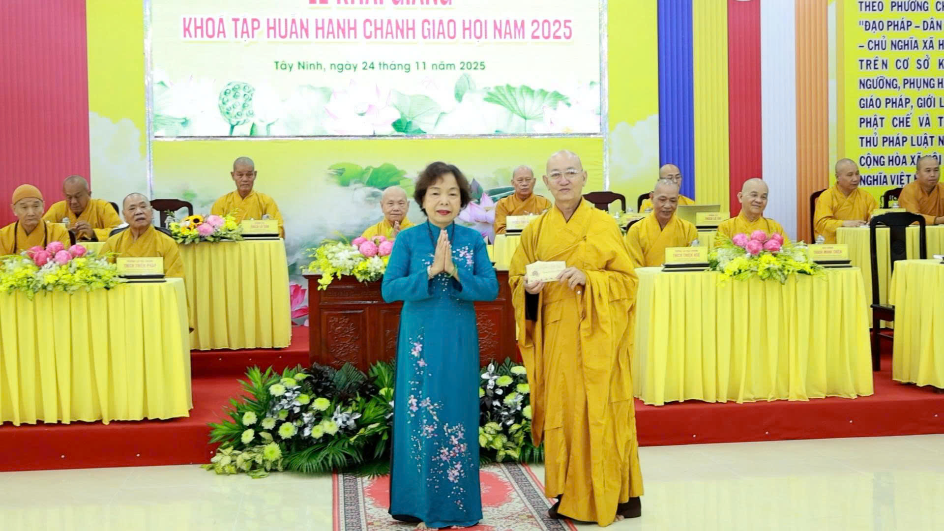 Được sự chấp thuận của Hội đồng Trị sự GHPGVN cùng Sở Dân tộc và Tôn giáo tỉnh Tây Ninh về việc tổ chức Khóa tập huấn Hành chánh Giáo hội năm 2025, sáng ngày 24/11/2025 (nhằm ngày 05/10/Ất Tỵ), tại Hội trường Văn phòng BTS GHPGVN tỉnh Tây Ninh, chùa Pháp Minh, ấp Giồng Lớn, xã Mỹ Hạnh, tỉnh Tây Ninh đã diễn ra Lễ Khai giảng Khóa tập huấn Hành chánh Giáo hội năm 2025 do BTS GHPGVN tỉnh tổ chức.
