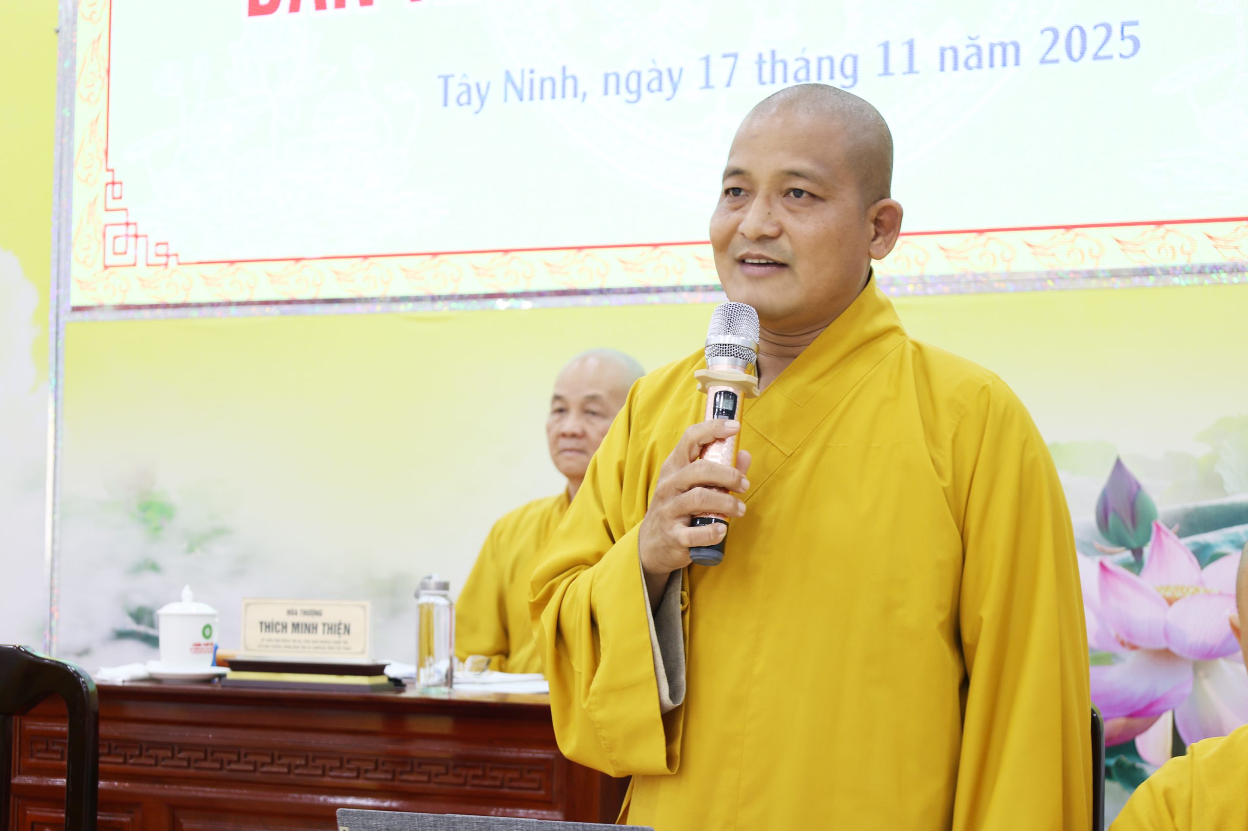 ĐĐ. Thích Thiện Danh – Phó Thư ký BTS GHPGVN tỉnh thông qua một số văn bản về các Phật sự trọng tâm trong thời gian tới như tổ chức khóa tập huấn hành chính giáo hội năm 2025 trong 3 ngày 24-26/11/2025, trong suốt khóa tập huấn sẽ không in ấn tài liệu giấy, tất cả tài liệu sẽ được cung cấp dưới dạng điện tử; Đại đức trình đến Chư Tôn đức một số hồ sơ xin phép thành lập Ban Quản trị, Điểm Sinh hoạt Tôn giáo tập trung,…