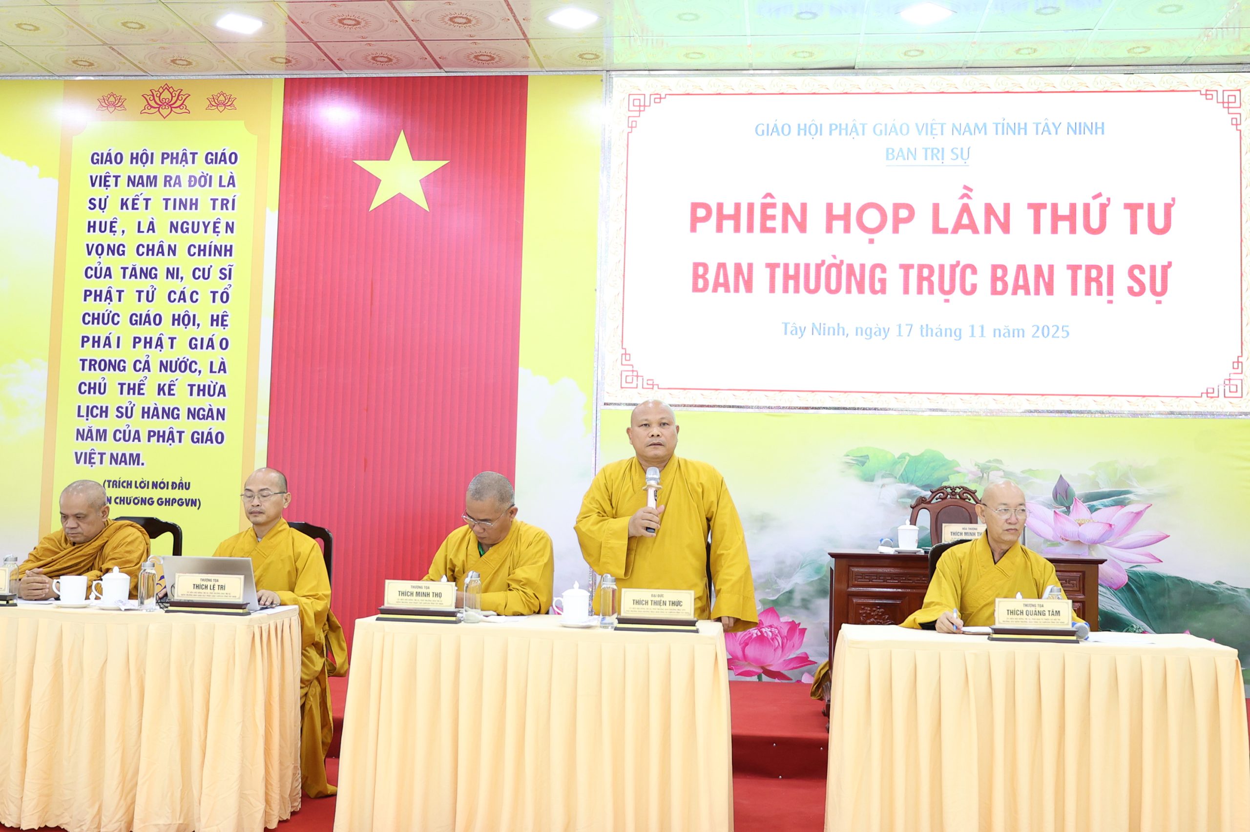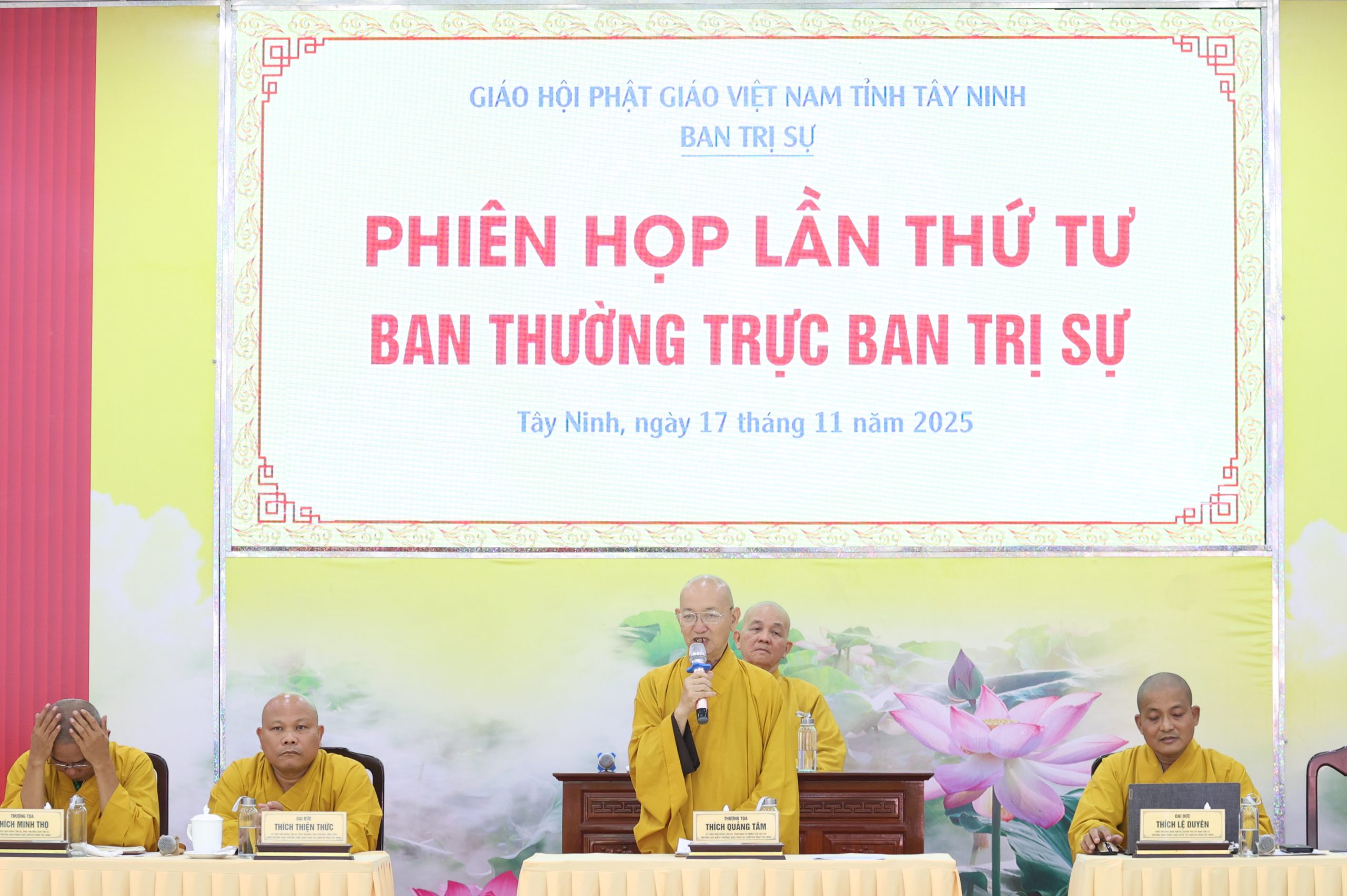 Sáng ngày 17/11/2025 (nhằm ngày 28/9/Ất Tỵ), BTS GHPGVN tỉnh Tây Ninh tổ chức phiên họp Ban Thường trực Ban Trị sự lần thứ tư tại Phòng họp Văn phòng BTS GHPGVN tỉnh Tây Ninh, chùa Pháp Minh, ấp Giồng Lớn, xã Mỹ Hạnh.