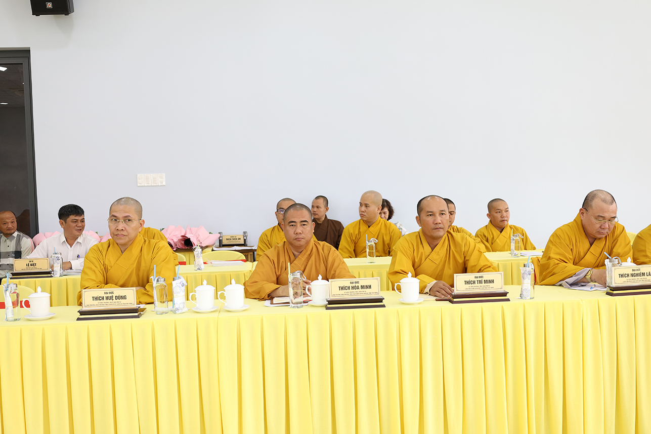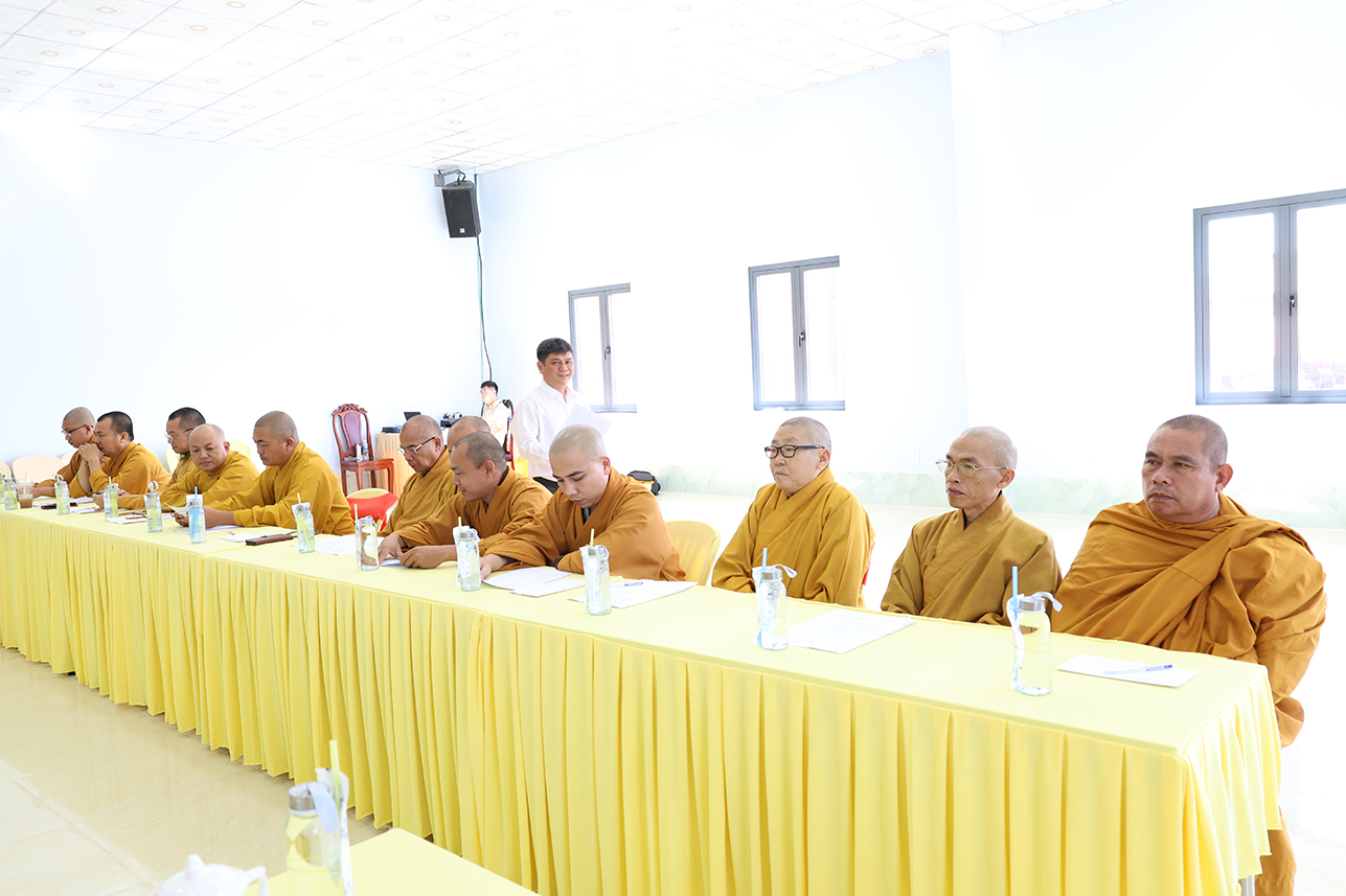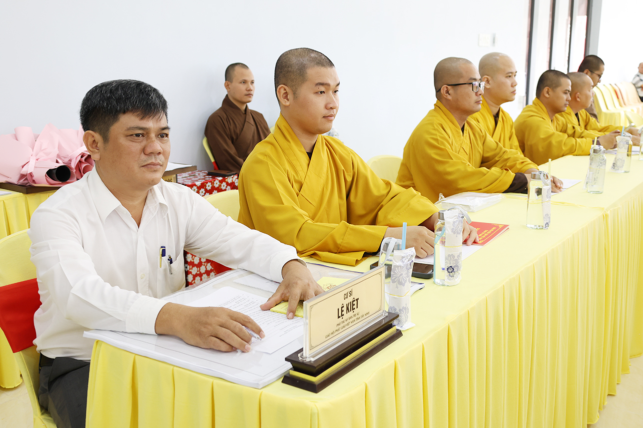 Quang lâm chứng minh và tham dự phiên họp có: TLHT. Thích Thiện Huệ – Thành viên HĐCM, Chứng minh BTS GHPGVN tỉnh; HT. Thích Minh Thiện – UV HĐTS, Phó ban Hoằng pháp TW, Chứng minh-Cố vấn BTS GHPGVN tỉnh; HT. Thích Huệ Hồng, HT. Thích Quảng Ý, HT. Thích Thiện Tài, Thích Thiện Thới, TT. Thích Lệ Tấn -Chứng minh BTS GHPGVN tỉnh; TT. Thích Quảng Tâm – UV HĐTS, Phó Trưởng ban Từ thiện Xã hội TW, Trưởng BTS GHPGVN tỉnh, Chủ tọa phiên họp; NT. TN. Gương Liên – Chứng minh Phân ban Ni giới GHPGVN tỉnh; Chư Tôn đức Ban Thường trực BTS GHPGVN tỉnh; Chư Tôn đức Thành viên BTS GHPGVN tỉnh; Chư Tôn đức các ban chuyên ngành trực thuộc Phật giáo tỉnh; Chư Tôn đức đại diện Phật giáo liên xã, phường.