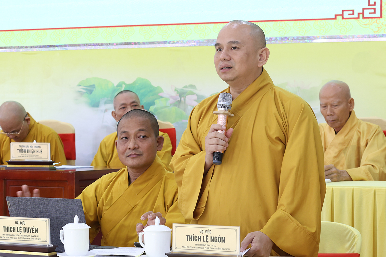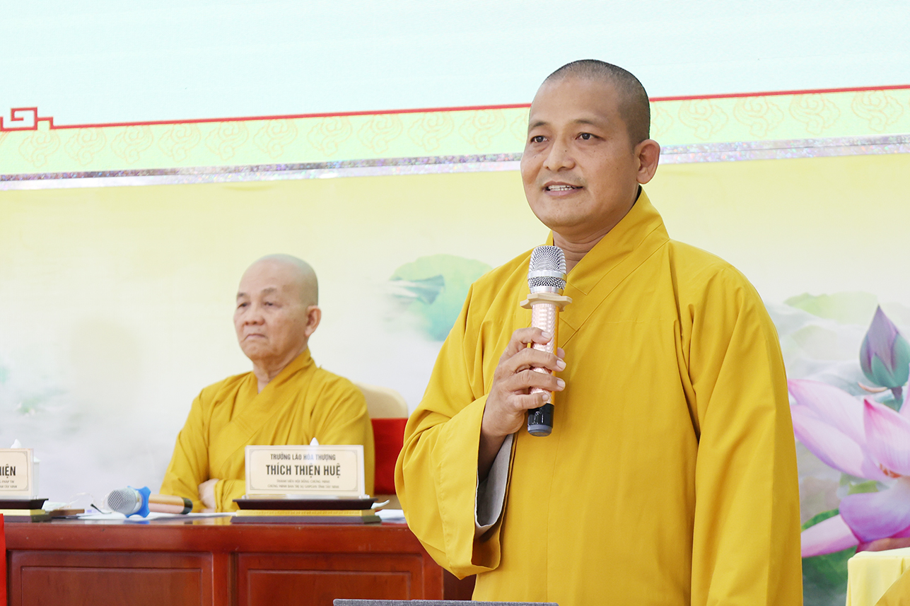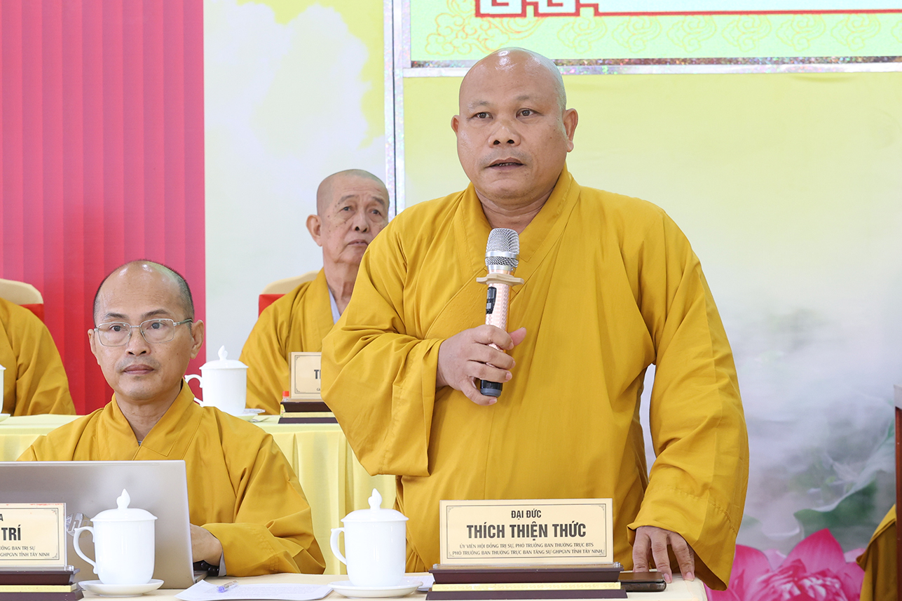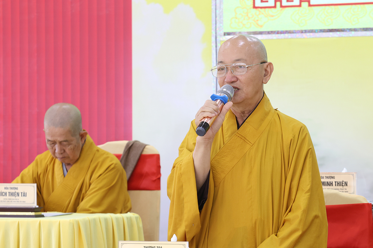 Đạo từ tại phiên họp, HT. Thích Minh Thiện tán thán ý kiến đóng góp của Chư Tôn đức, góp phần tạo nên những thành tựu của Phật giáo tỉnh tây Ninh trong thời gian tới. Hòa thượng nhắc nhở Chư Tôn đức, thừa hành, cống hiến và đóng góp trên tinh thần đoàn kết hòa hợp trong các công tác Phật sự cũng là một pháp tu tập. Cơ chế hoạt động tuy có tinh gọn nhưng cần phải hiệu năng và hiệu quả, kế thừa những giá trị của Phật giáo hai tỉnh cũ góp phần ổn định, phát triển Phật giáo tỉnh Tây Ninh mới. Đặc biệt, cần phải thực hiện theo lời Phật dạy, tuân thủ hiến chương GHPGVN và pháp luật nhà nước hiện hành. Hòa thượng có những ý kiến về các Phật sự trong thời gian tới, nhất là việc dự kiến nhân sự mới để chuẩn bị cho Đại hội Đại biểu Phật giáo tỉnh Tây Ninh nhiệm kỳ I, diễn ra vào năm 2026.