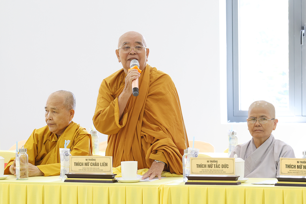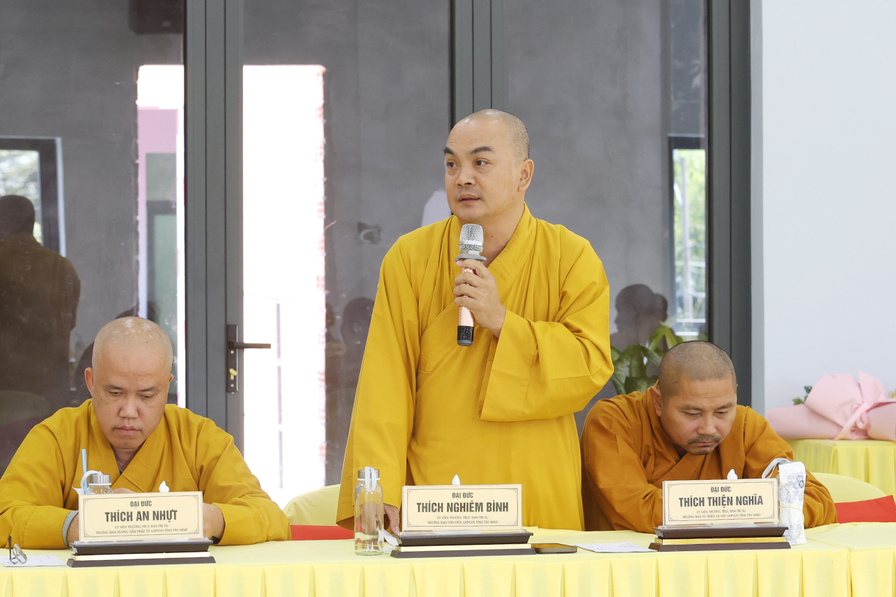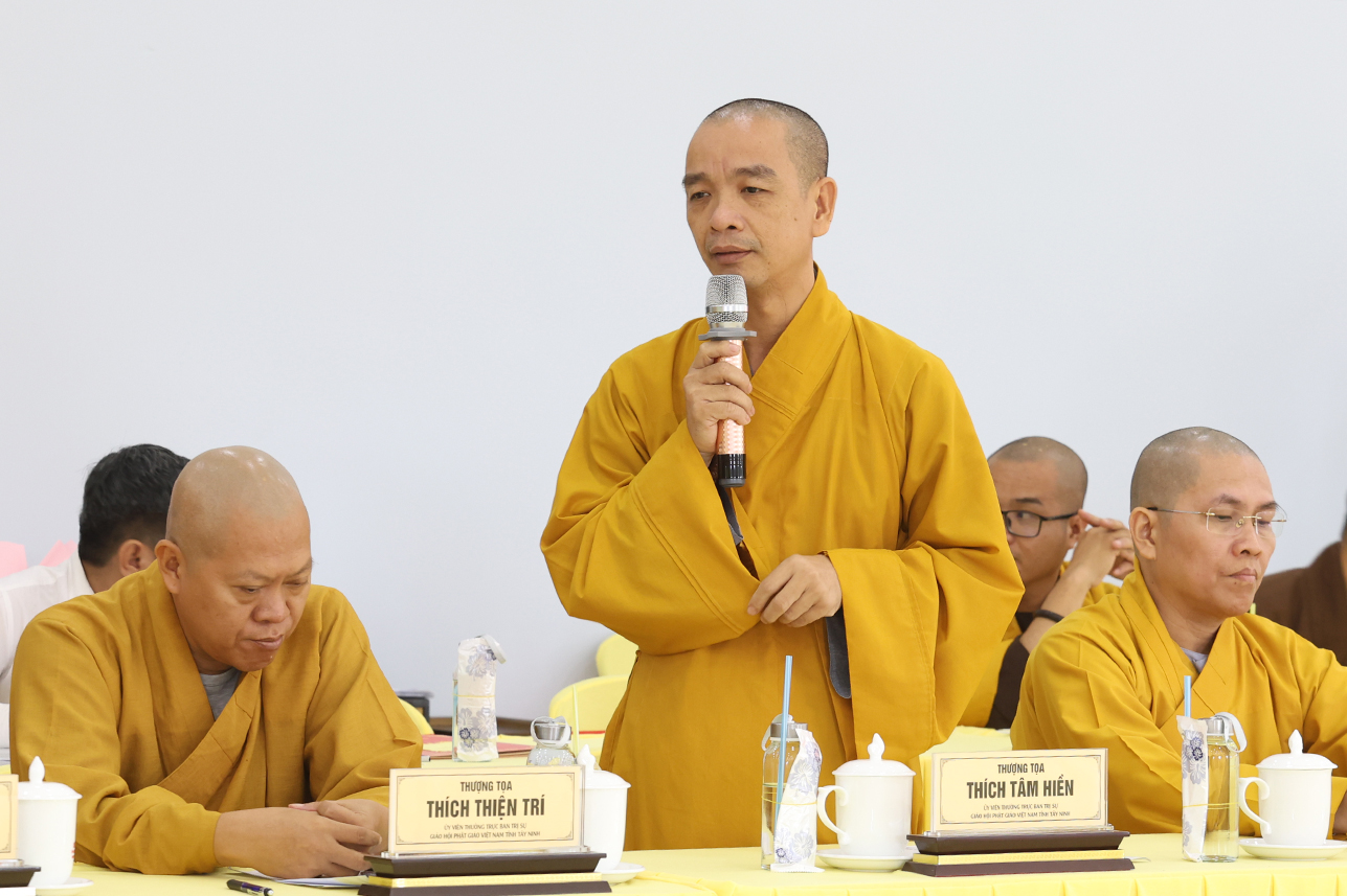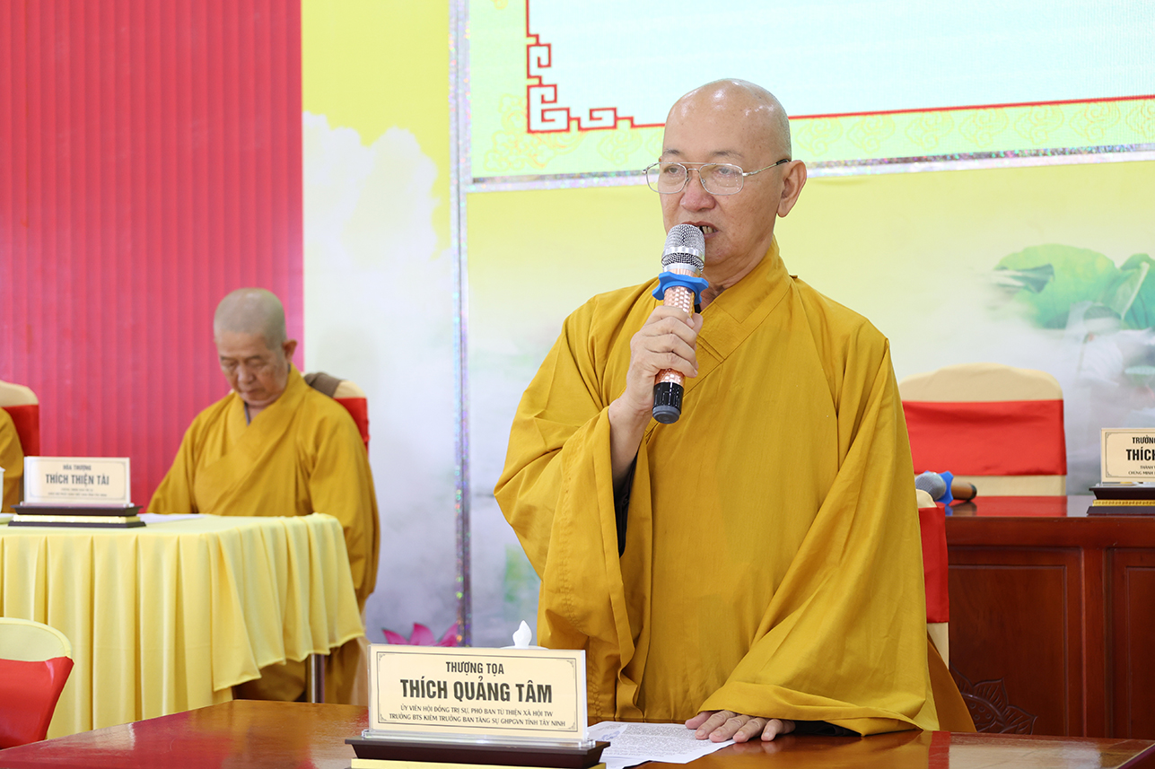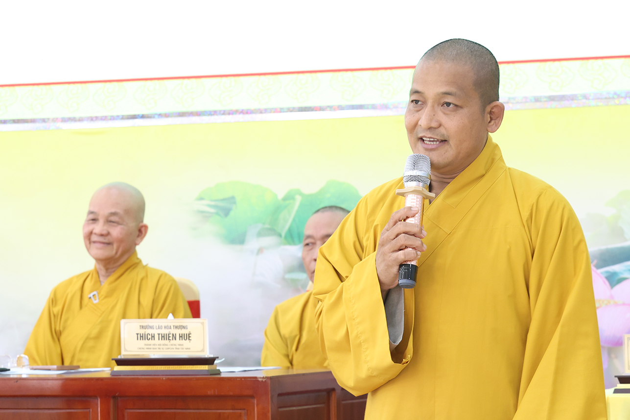 Đạo từ tại phiên họp, HT. Thích Minh Thiện tán thán ý kiến đóng góp của Chư Tôn đức, góp phần tạo nên những thành tựu của Phật giáo tỉnh tây Ninh trong thời gian tới. Hòa thượng nhắc nhở Chư Tôn đức, thừa hành, cống hiến và đóng góp trên tinh thần đoàn kết hòa hợp trong các công tác Phật sự cũng là một pháp tu tập. Cơ chế hoạt động tuy có tinh gọn nhưng cần phải hiệu năng và hiệu quả, kế thừa những giá trị của Phật giáo hai tỉnh cũ góp phần ổn định, phát triển Phật giáo tỉnh Tây Ninh mới. Đặc biệt, cần phải thực hiện theo lời Phật dạy, tuân thủ hiến chương GHPGVN và pháp luật nhà nước hiện hành. Hòa thượng có những ý kiến về các Phật sự trong thời gian tới, nhất là việc dự kiến nhân sự mới để chuẩn bị cho Đại hội Đại biểu Phật giáo tỉnh Tây Ninh nhiệm kỳ I, diễn ra vào năm 2026.