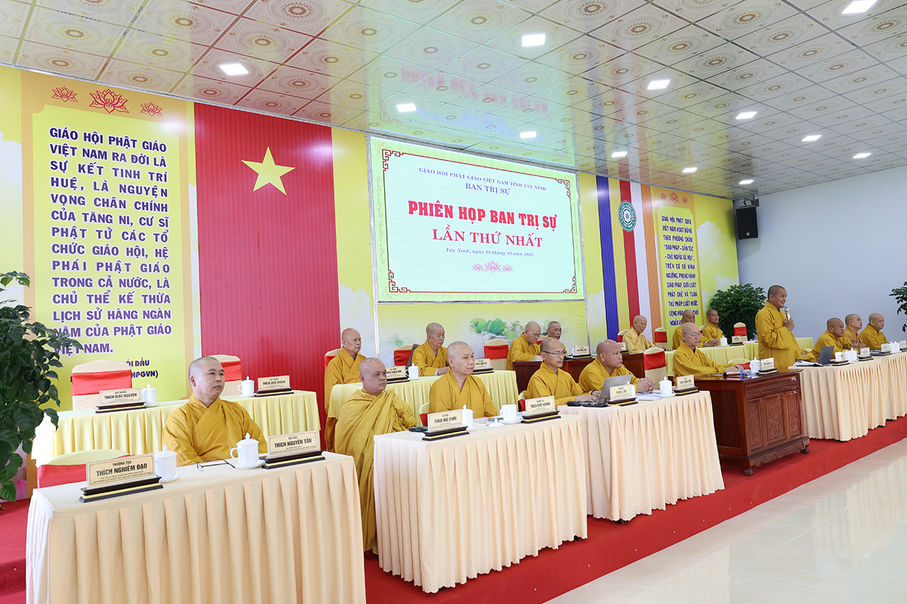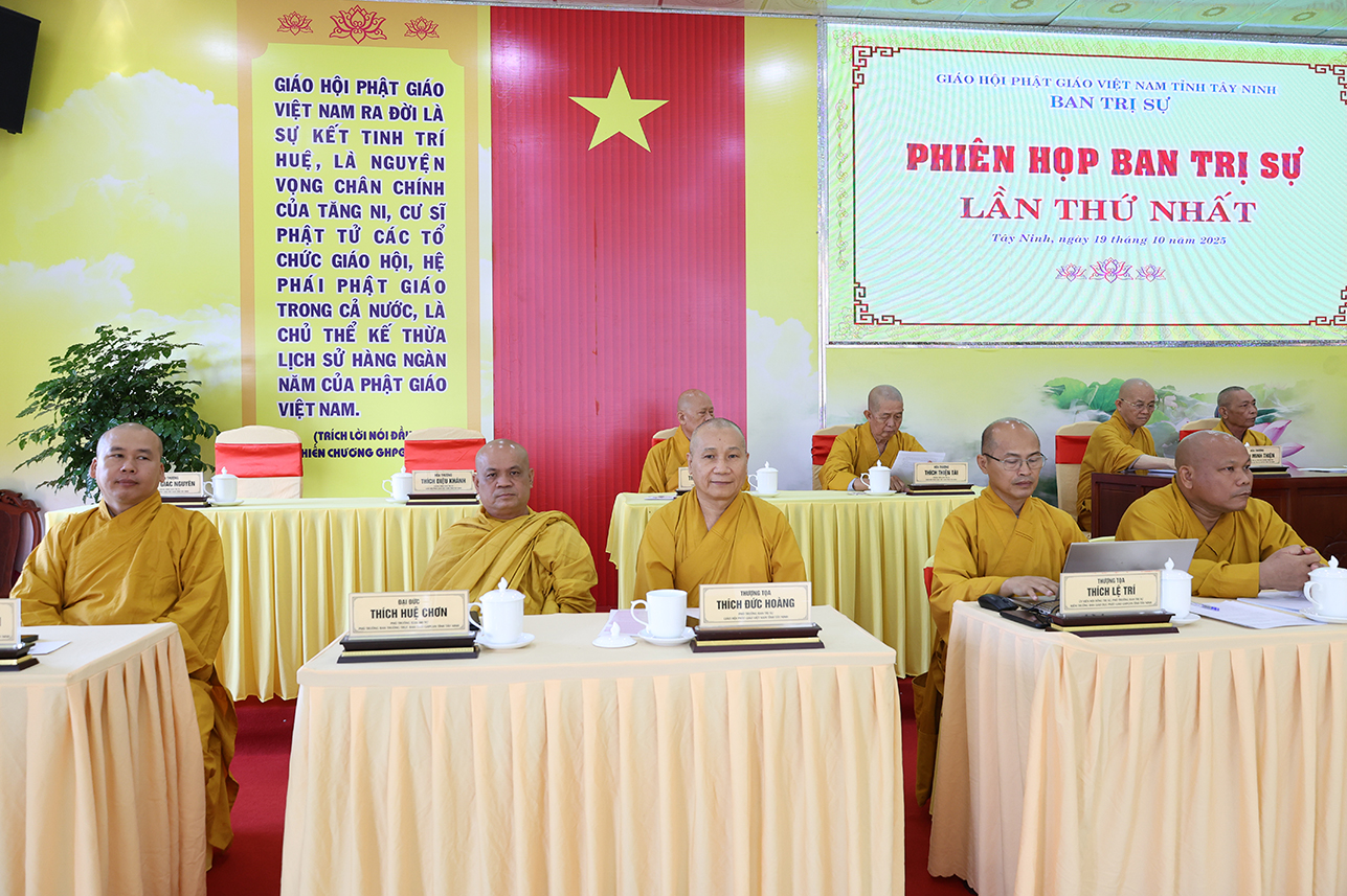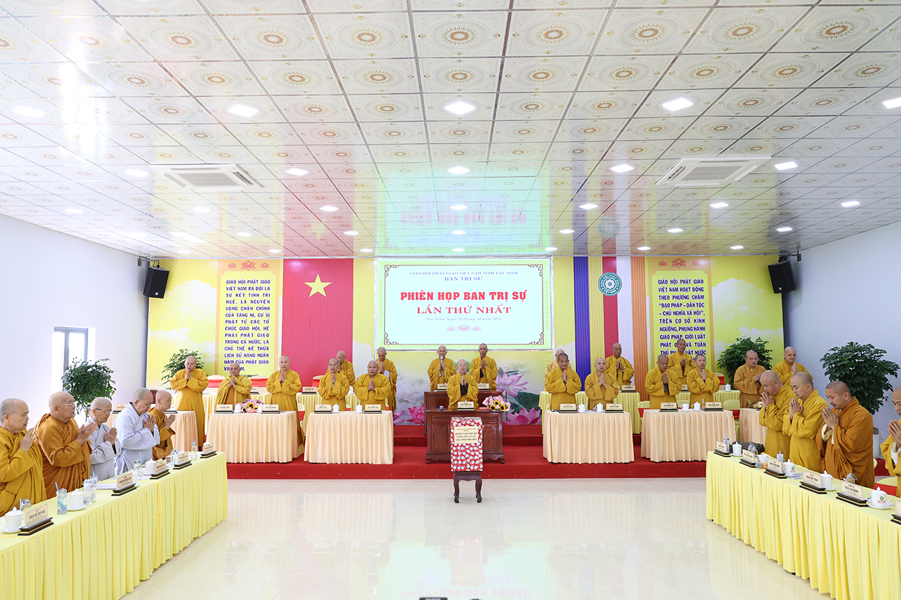 Sáng ngày 19/10/2025 (nhằm ngày 28/8/Ất Tỵ), tại Hội trường Văn phòng Ban Trị sự GHPGVN tỉnh Tây Ninh, chùa Pháp Minh, ấp Giồng Lớn, xã Mỹ Hạnh diễn ra phiên họp toàn thể Ban Trị sự GHPGVN tỉnh Tây Ninh lần thứ nhất.