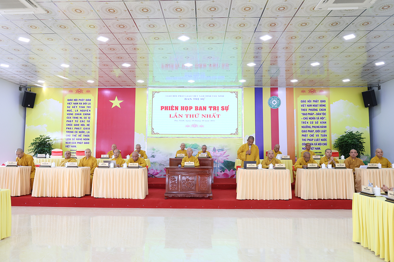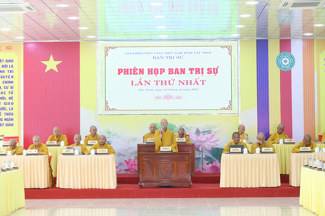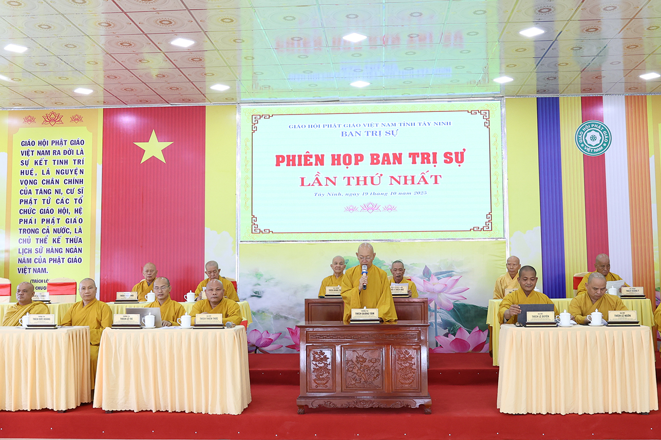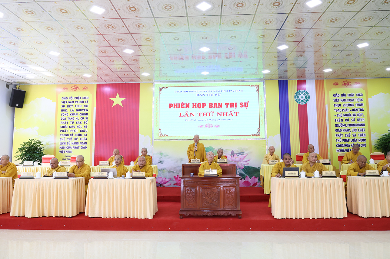 Sáng ngày 19/10/2025 (nhằm ngày 28/8/Ất Tỵ), tại Hội trường Văn phòng Ban Trị sự GHPGVN tỉnh Tây Ninh, chùa Pháp Minh, ấp Giồng Lớn, xã Mỹ Hạnh diễn ra phiên họp toàn thể Ban Trị sự GHPGVN tỉnh Tây Ninh lần thứ nhất.