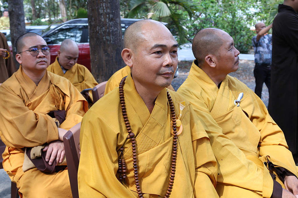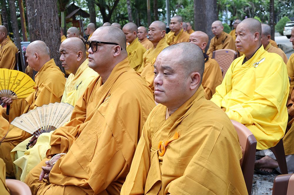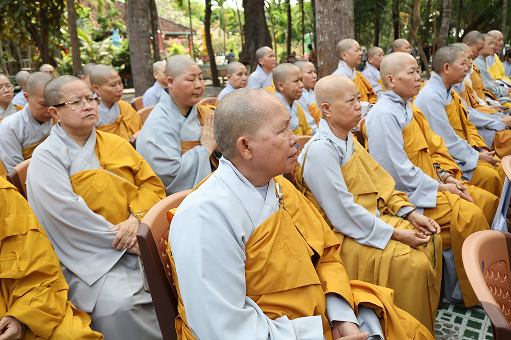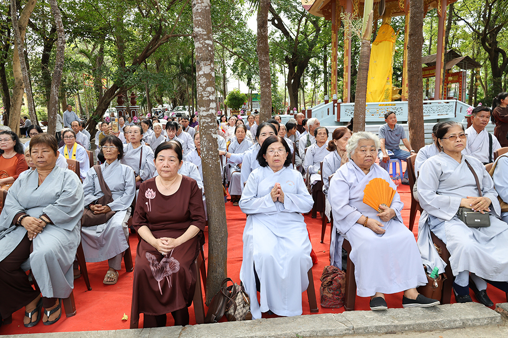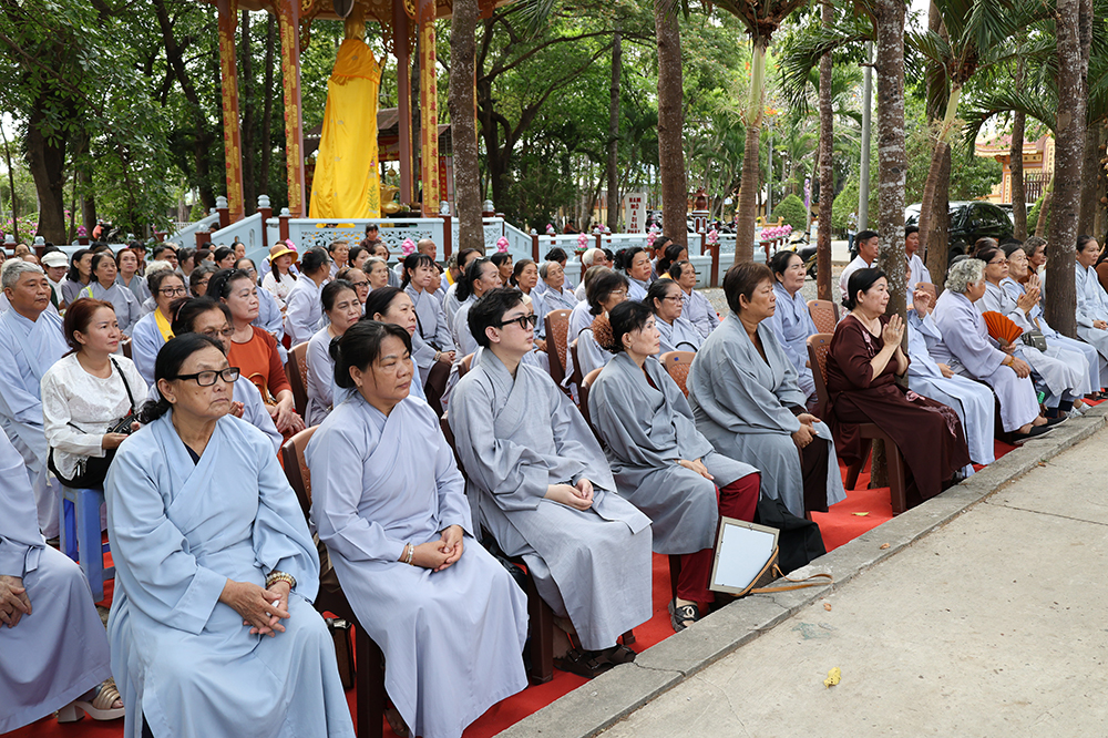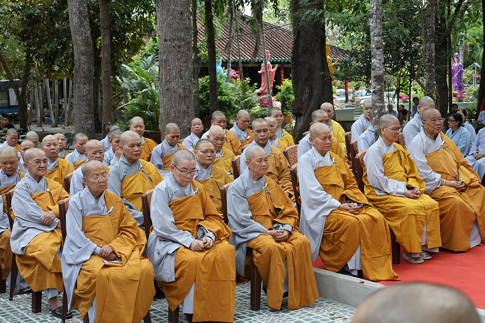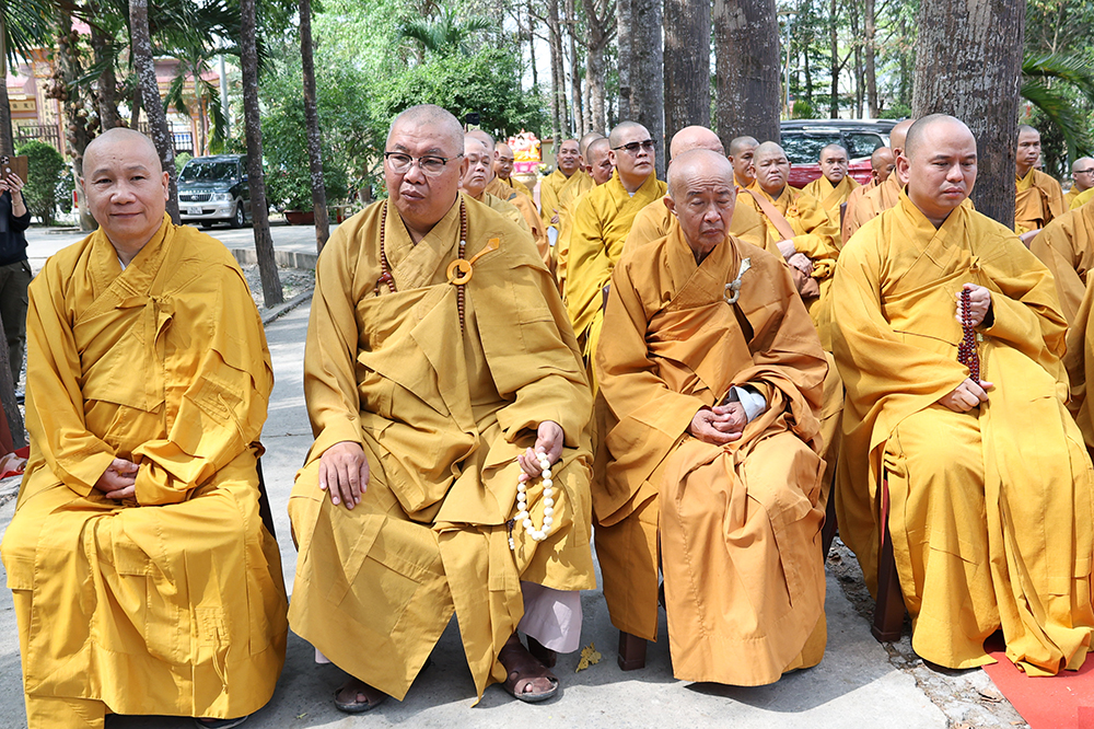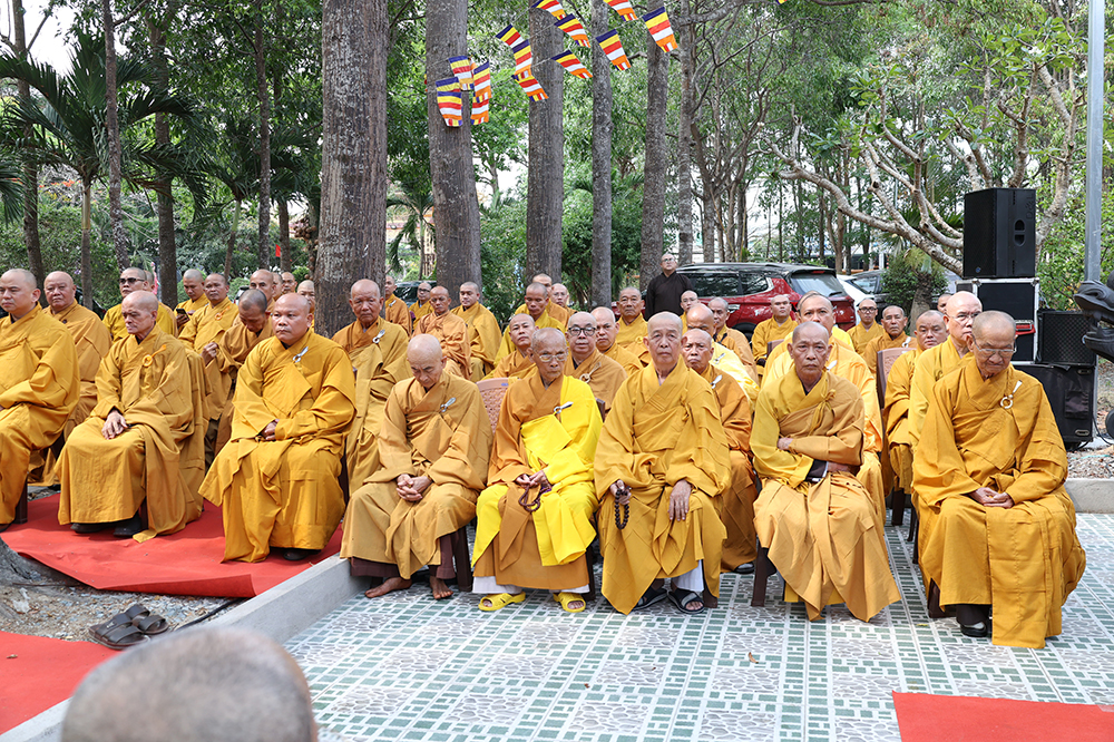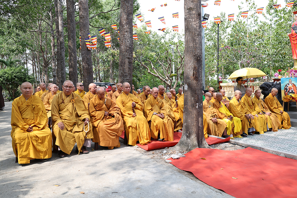 Đại lễ diễn ra trong niềm hỷ lạc vô biên, vinh dự được cung đón bước chân an lạc và sự quang lâm chứng minh của chư Tôn thiền đức giáo phẩm thạc đức: Trưởng lão Hòa thượng Huệ Văn – Thành viên Hội đồng Chứng minh (HĐCM) GHPGVN, Chứng minh Thiên Thai Giáo Quán Tông( TTGQT); HT. Thiện Huệ – Thành viên HĐCM, Chứng minh Ban Trị sự Giáo hội Phật giáo Việt Nam (BTS GHPGVN) tỉnh. Cùng sự hiện diện trân quý của HT. Minh Thiện – Ủy viên Hội đồng Trị sự (HĐTS), Cố vấn Chứng minh BTS GHPGVN tỉnh; TT. Thích Thiện Thức – Ủy viên HĐTS, Phó Trưởng BTS GHPGVN tỉnh; Ni trưởng Thích Nữ Tắc Tuyết – Chứng Minh Phân ban Ni giới TP.HCM, Chứng Minh Phân ban Ni giới Môn phong Thiên Thai Giáo Quán Tông cùng đông đảo chư Tôn đức Tăng Ni, chư vị Trụ trì các tự viện trong tông phong và hàng ngàn thiện nam tín nữ Phật tử xa gần đồng vân tập đảnh lễ.