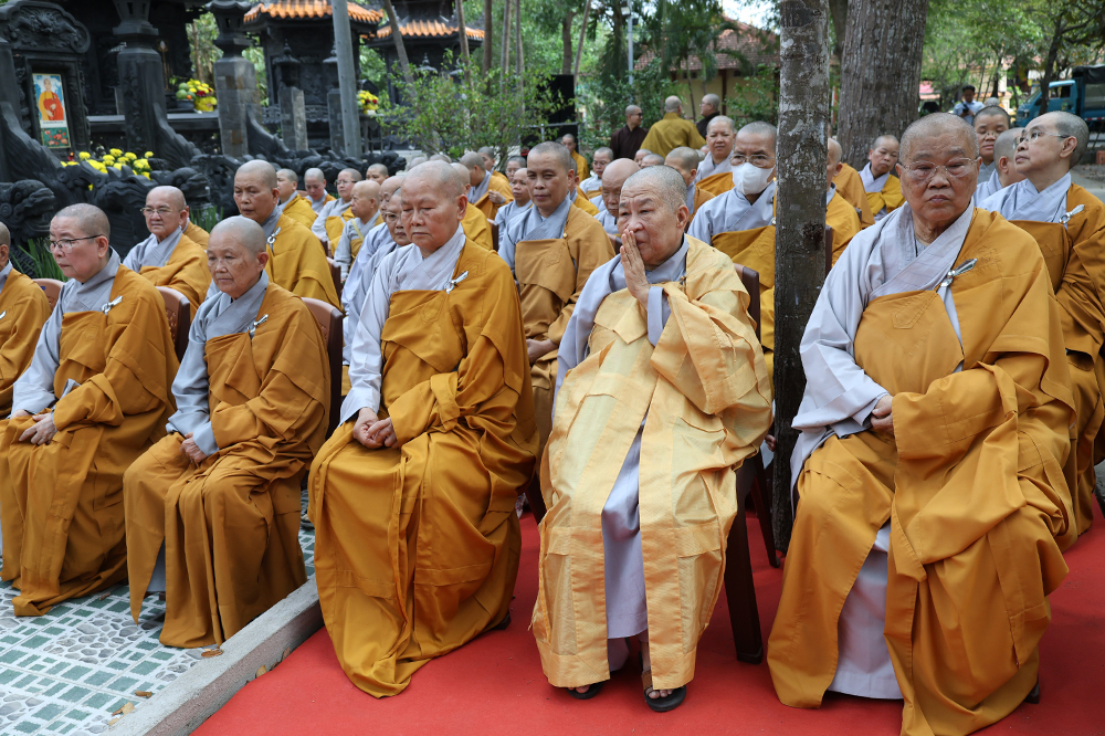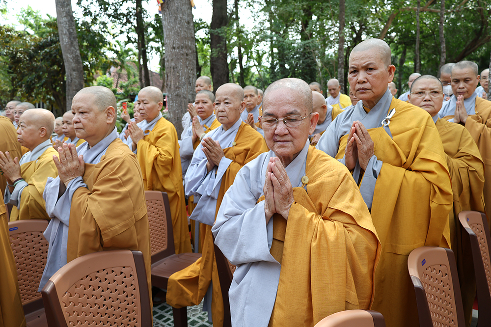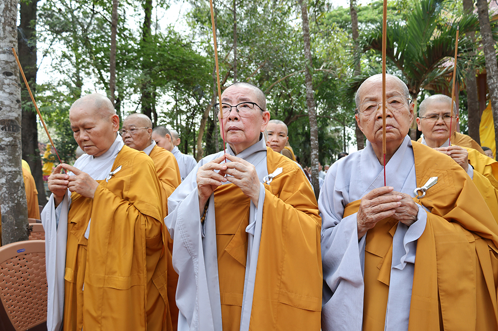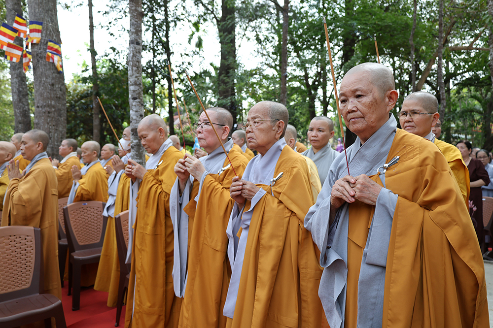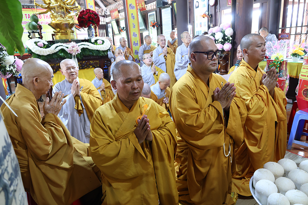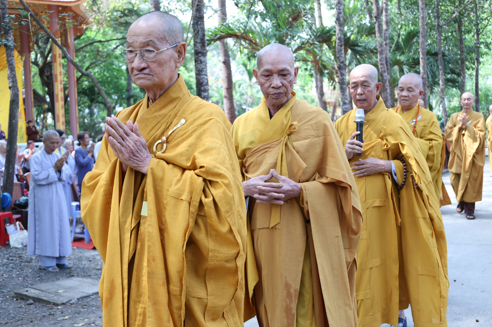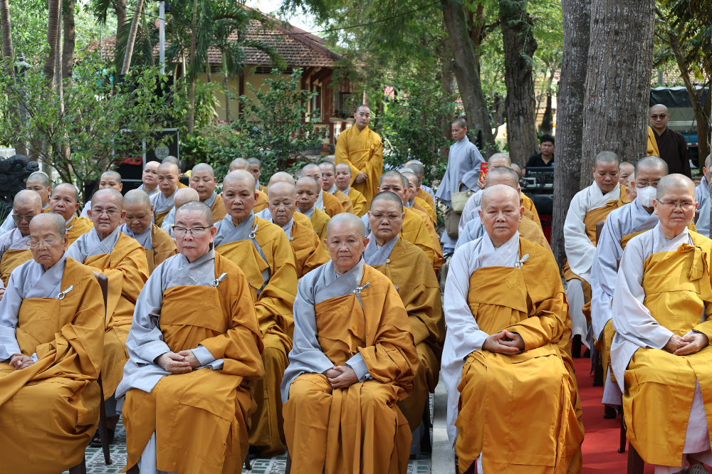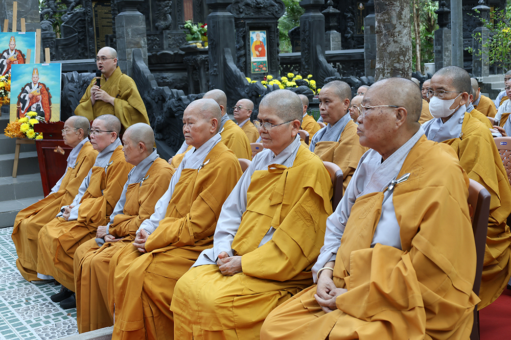Đại lễ diễn ra trong niềm hỷ lạc vô biên, vinh dự được cung đón bước chân an lạc và sự quang lâm chứng minh của chư Tôn thiền đức giáo phẩm thạc đức: Trưởng lão Hòa thượng Huệ Văn – Thành viên Hội đồng Chứng minh (HĐCM) GHPGVN, Chứng minh Thiên Thai Giáo Quán Tông( TTGQT); HT. Thiện Huệ – Thành viên HĐCM, Chứng minh Ban Trị sự Giáo hội Phật giáo Việt Nam (BTS GHPGVN) tỉnh. Cùng sự hiện diện trân quý của HT. Minh Thiện – Ủy viên Hội đồng Trị sự (HĐTS), Cố vấn Chứng minh BTS GHPGVN tỉnh; TT. Thích Thiện Thức – Ủy viên HĐTS, Phó Trưởng BTS GHPGVN tỉnh; Ni trưởng Thích Nữ Tắc Tuyết – Chứng Minh Phân ban Ni giới TP.HCM, Chứng Minh Phân ban Ni giới Môn phong Thiên Thai Giáo Quán Tông cùng đông đảo chư Tôn đức Tăng Ni, chư vị Trụ trì các tự viện trong tông phong và hàng ngàn thiện nam tín nữ Phật tử xa gần đồng vân tập đảnh lễ.