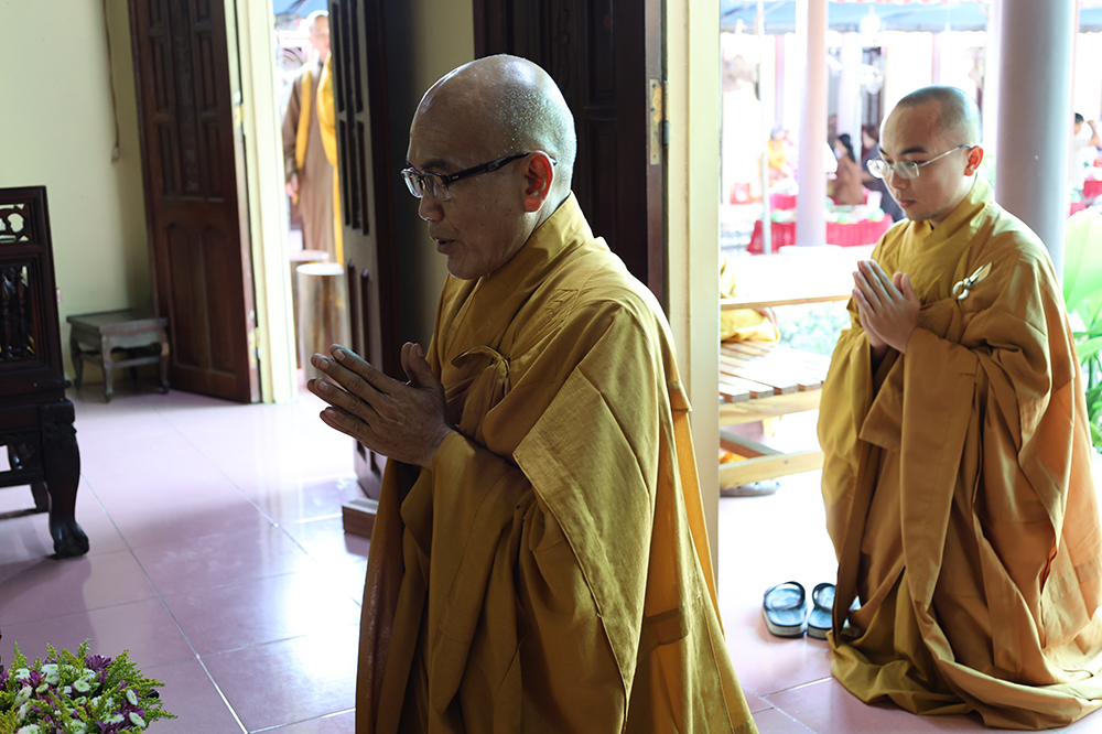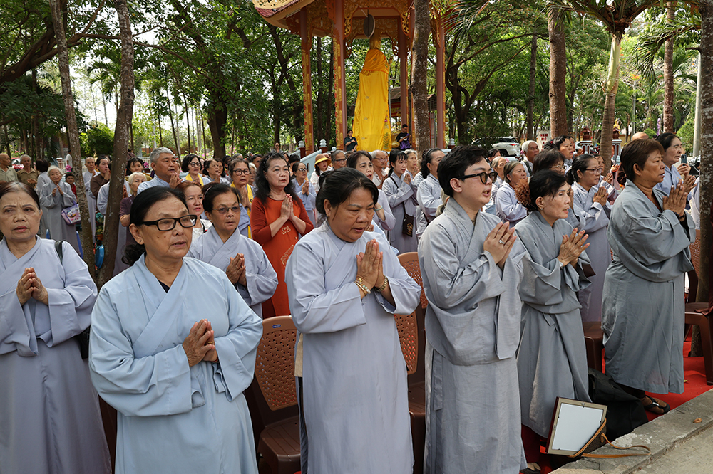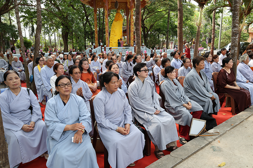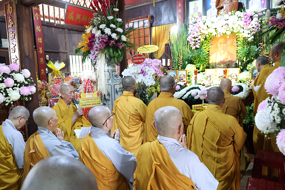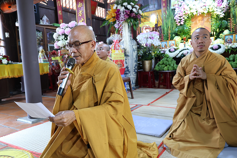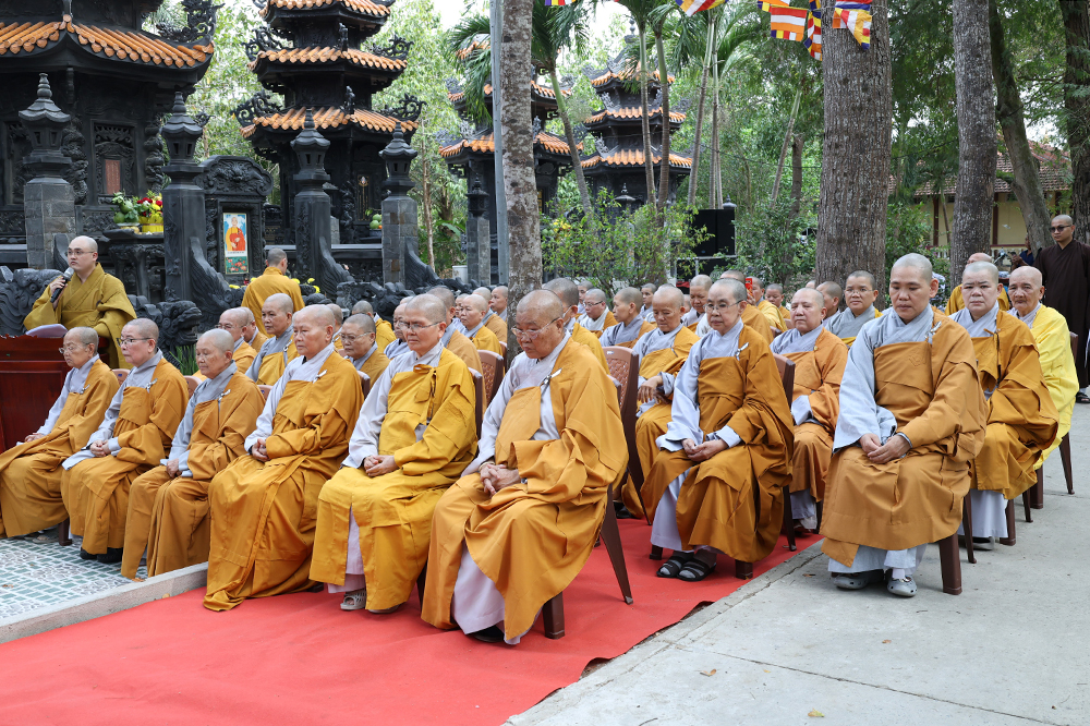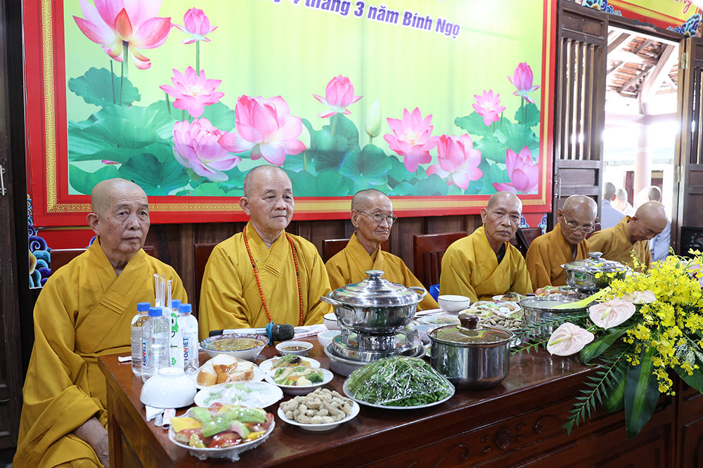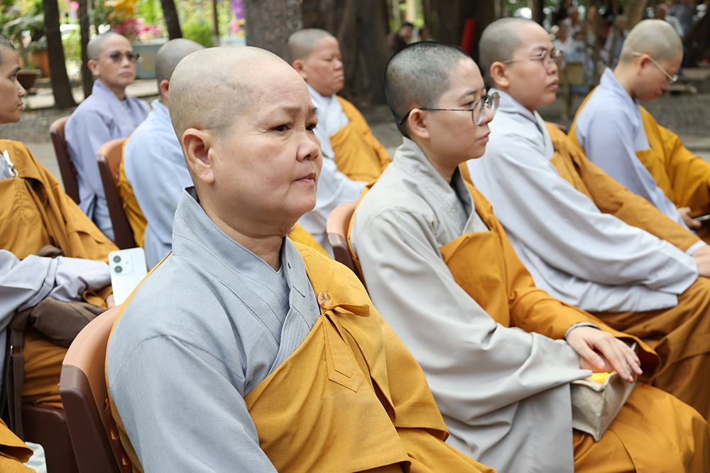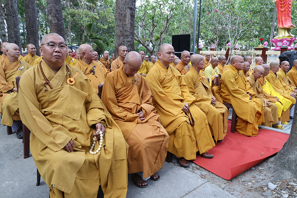 Đại lễ diễn ra trong niềm hỷ lạc vô biên, vinh dự được cung đón bước chân an lạc và sự quang lâm chứng minh của chư Tôn thiền đức giáo phẩm thạc đức: Trưởng lão Hòa thượng Huệ Văn – Thành viên Hội đồng Chứng minh (HĐCM) GHPGVN, Chứng minh Thiên Thai Giáo Quán Tông( TTGQT); HT. Thiện Huệ – Thành viên HĐCM, Chứng minh Ban Trị sự Giáo hội Phật giáo Việt Nam (BTS GHPGVN) tỉnh. Cùng sự hiện diện trân quý của HT. Minh Thiện – Ủy viên Hội đồng Trị sự (HĐTS), Cố vấn Chứng minh BTS GHPGVN tỉnh; TT. Thích Thiện Thức – Ủy viên HĐTS, Phó Trưởng BTS GHPGVN tỉnh; Ni trưởng Thích Nữ Tắc Tuyết – Chứng Minh Phân ban Ni giới TP.HCM, Chứng Minh Phân ban Ni giới Môn phong Thiên Thai Giáo Quán Tông cùng đông đảo chư Tôn đức Tăng Ni, chư vị Trụ trì các tự viện trong tông phong và hàng ngàn thiện nam tín nữ Phật tử xa gần đồng vân tập đảnh lễ.