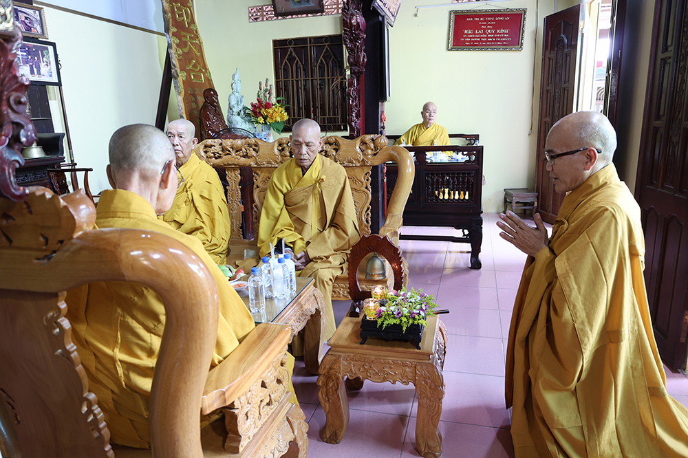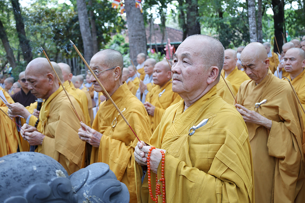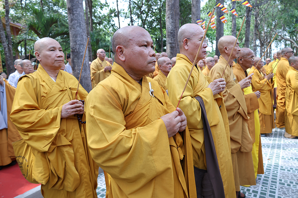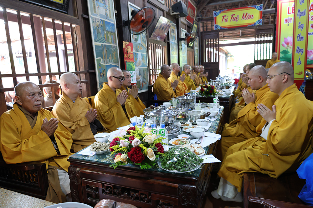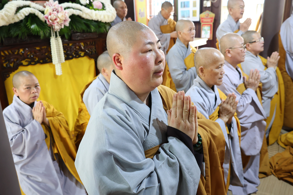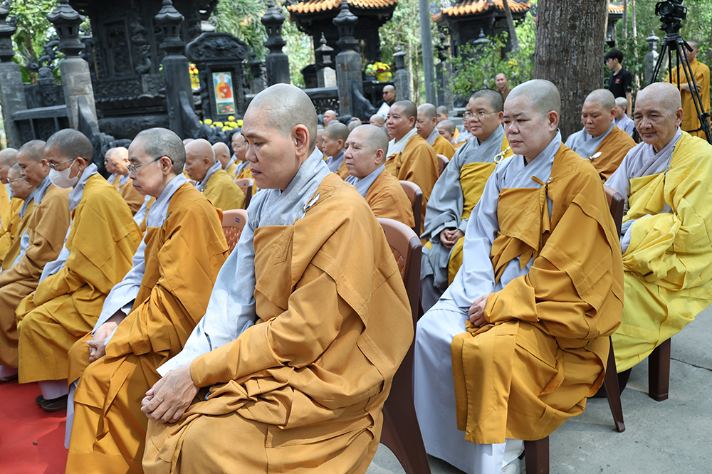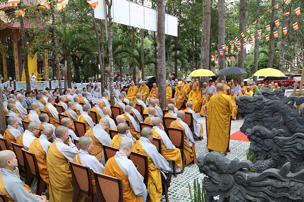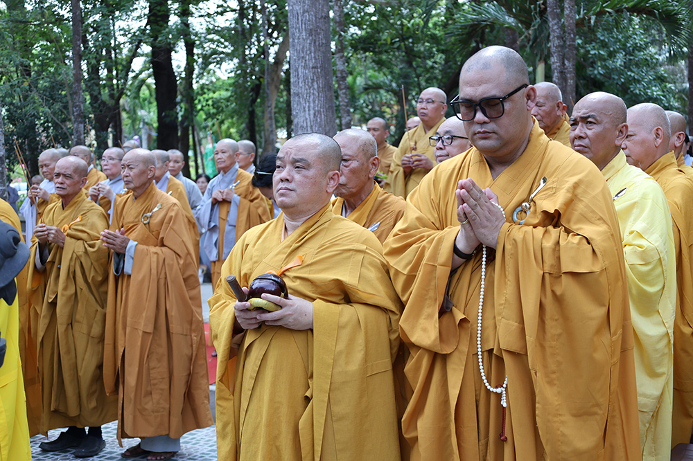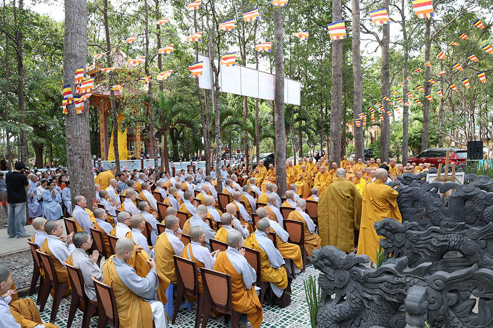 Đại lễ diễn ra trong niềm hỷ lạc vô biên, vinh dự được cung đón bước chân an lạc và sự quang lâm chứng minh của chư Tôn thiền đức giáo phẩm thạc đức: Trưởng lão Hòa thượng Huệ Văn – Thành viên Hội đồng Chứng minh (HĐCM) GHPGVN, Chứng minh Thiên Thai Giáo Quán Tông( TTGQT); HT. Thiện Huệ – Thành viên HĐCM, Chứng minh Ban Trị sự Giáo hội Phật giáo Việt Nam (BTS GHPGVN) tỉnh. Cùng sự hiện diện trân quý của HT. Minh Thiện – Ủy viên Hội đồng Trị sự (HĐTS), Cố vấn Chứng minh BTS GHPGVN tỉnh; TT. Thích Thiện Thức – Ủy viên HĐTS, Phó Trưởng BTS GHPGVN tỉnh; Ni trưởng Thích Nữ Tắc Tuyết – Chứng Minh Phân ban Ni giới TP.HCM, Chứng Minh Phân ban Ni giới Môn phong Thiên Thai Giáo Quán Tông cùng đông đảo chư Tôn đức Tăng Ni, chư vị Trụ trì các tự viện trong tông phong và hàng ngàn thiện nam tín nữ Phật tử xa gần đồng vân tập đảnh lễ.