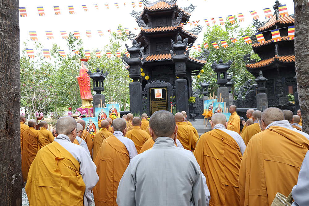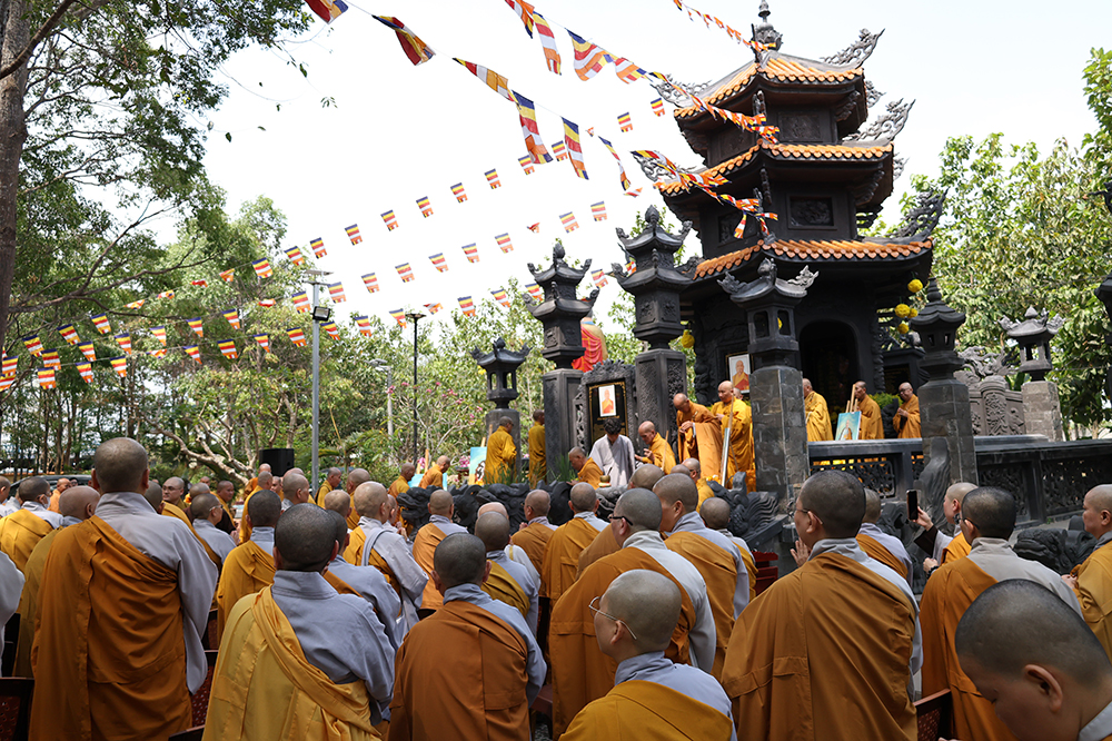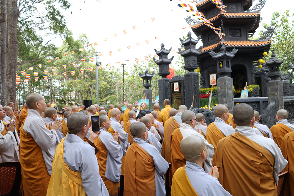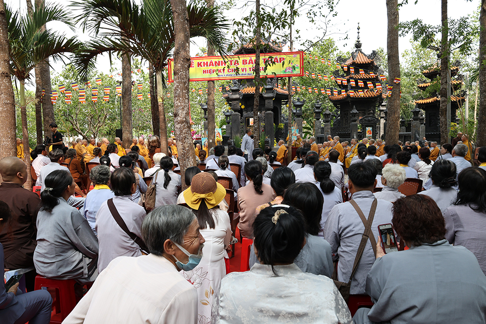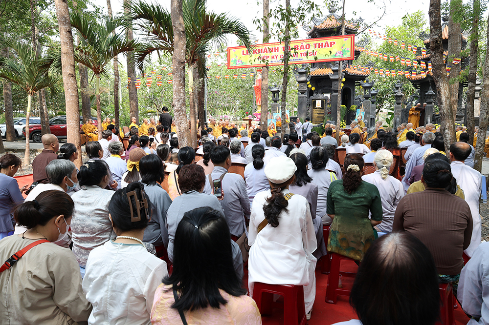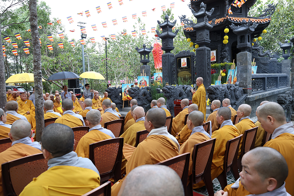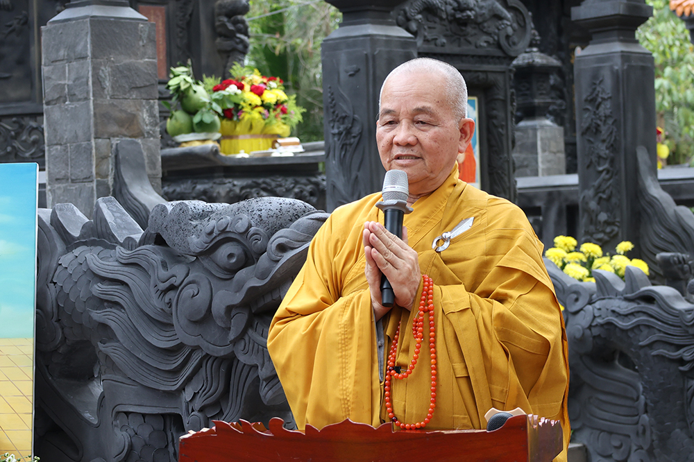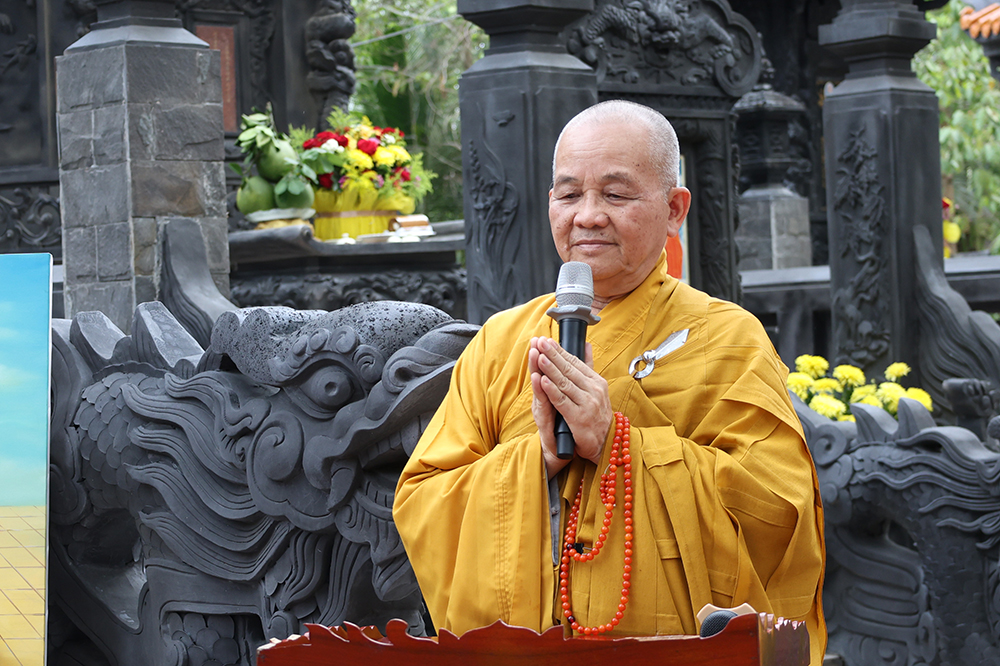 Hòa thượng nhấn mạnh: “Sự hiện diện của ngôi Bảo tháp uy nghi chốn Tổ đình hôm nay không chỉ là một công trình kiến trúc tâm linh thù thắng, mà còn là biểu tượng rạng ngời của hiếu đạo, của tinh thần tri ân và báo ân muôn đời trong đạo Phật. Đức Sơ tổ Hiển Kỳ cùng chư vị Tổ sư tiền bối đã quản ngại gian lao, trọn đời dấn thân vì mạng mạch Phật pháp, gieo mầm cội đạo bám rễ sâu bền tại miền Nam nước Việt. Việc môn đồ pháp quyến tề tâm hiệp lực, kiến tạo nên ngôi Bảo tháp trang nghiêm chính là minh chứng rõ nét nhất cho sự hòa hợp, thanh tịnh và sức sống miên viễn của tông phong.”