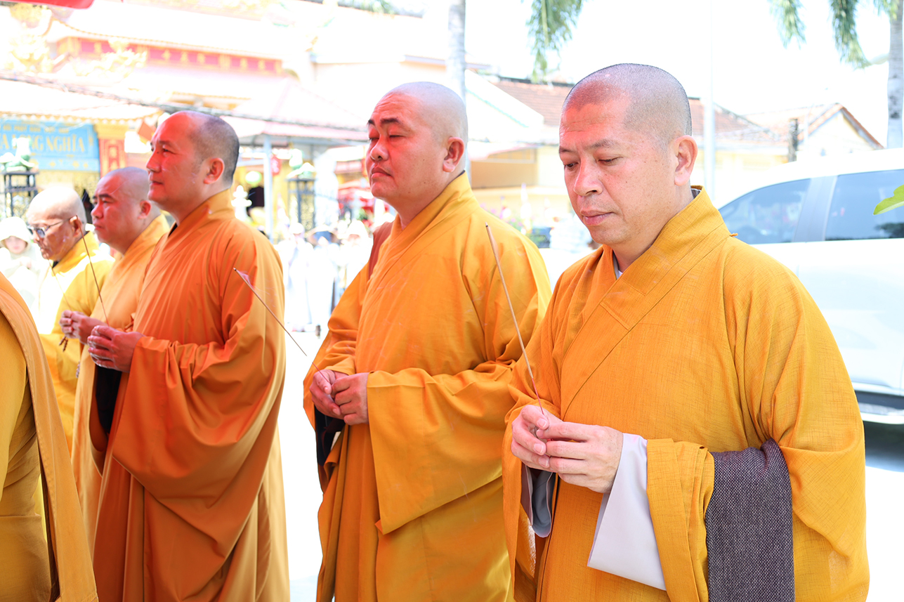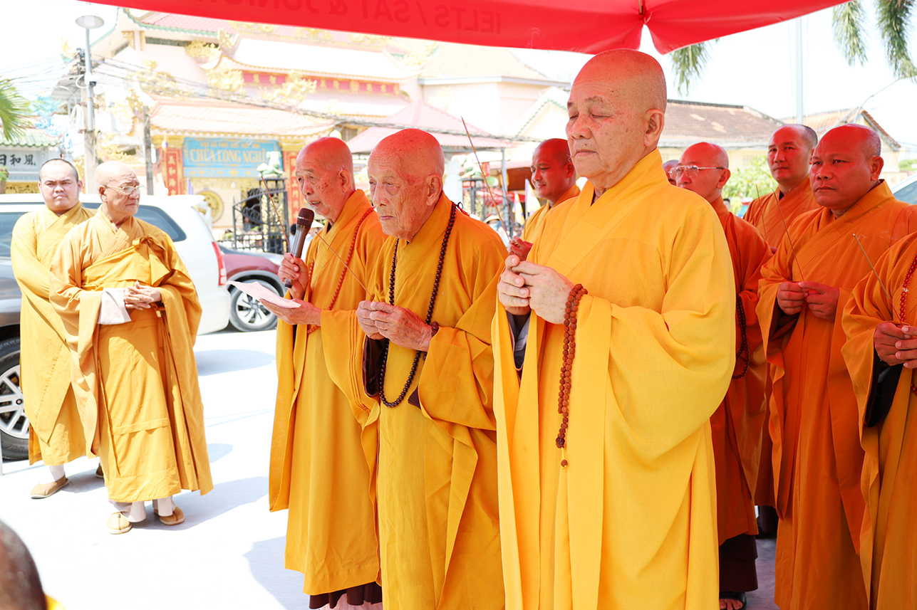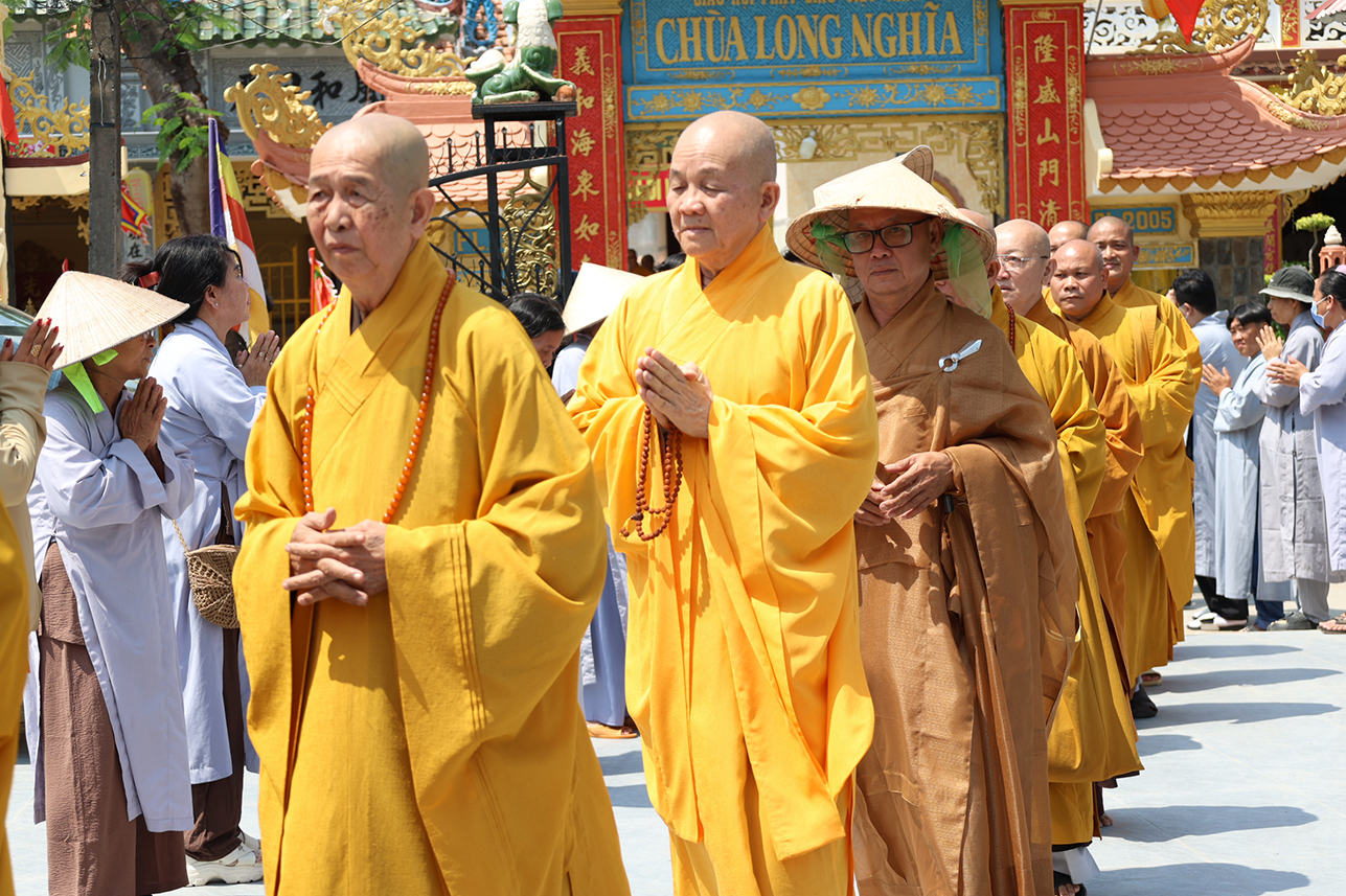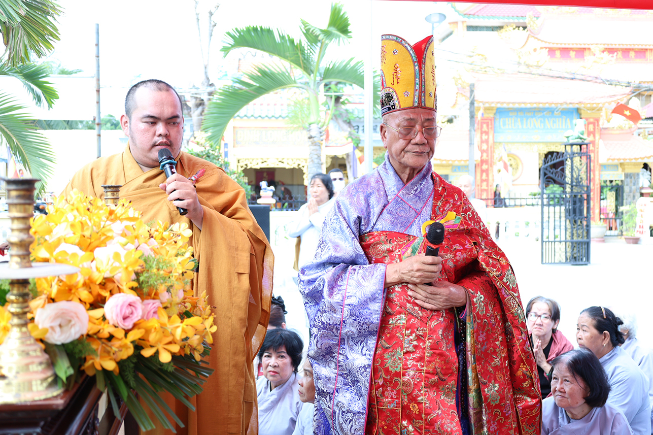 Buổi lễ diễn ra trong không khí thiêng liêng, thành kính với sự quang lâm chứng minh của chư tôn thiền đức giáo phẩm: Hòa thượng Thích Minh Thiện – Ủy viên HĐTS, Cố vấn chứng minh Ban Trị sự GHPGVN tỉnh Tây Ninh; Hòa thượng Thích Thiện Tài – Chứng minh Ban Trị sự GHPGVN tỉnh; Thượng tọa Thích Quảng Tâm – Ủy viên HĐTS, Trưởng Ban Trị sự GHPGVN tỉnh; Thượng tọa Thích Thiện Thức – Ủy viên HĐTS, Phó Trưởng ban Thường trực Ban Trị sự GHPGVN tỉnh; Thượng tọa Thích Lệ Duyên – Phó Ban kiêm Chánh Thư ký Ban Trị sự GHPGVN tỉnh; Cùng sự hiện diện của chư tôn đức Thường trực Ban Trị sự GHPGVN tỉnh, chư tôn đức Tăng Ni trụ trì các tự viện, môn đồ pháp quyến chùa Long Nghĩa và đông đảo quý thiện nam tín nữ Phật tử gần xa.