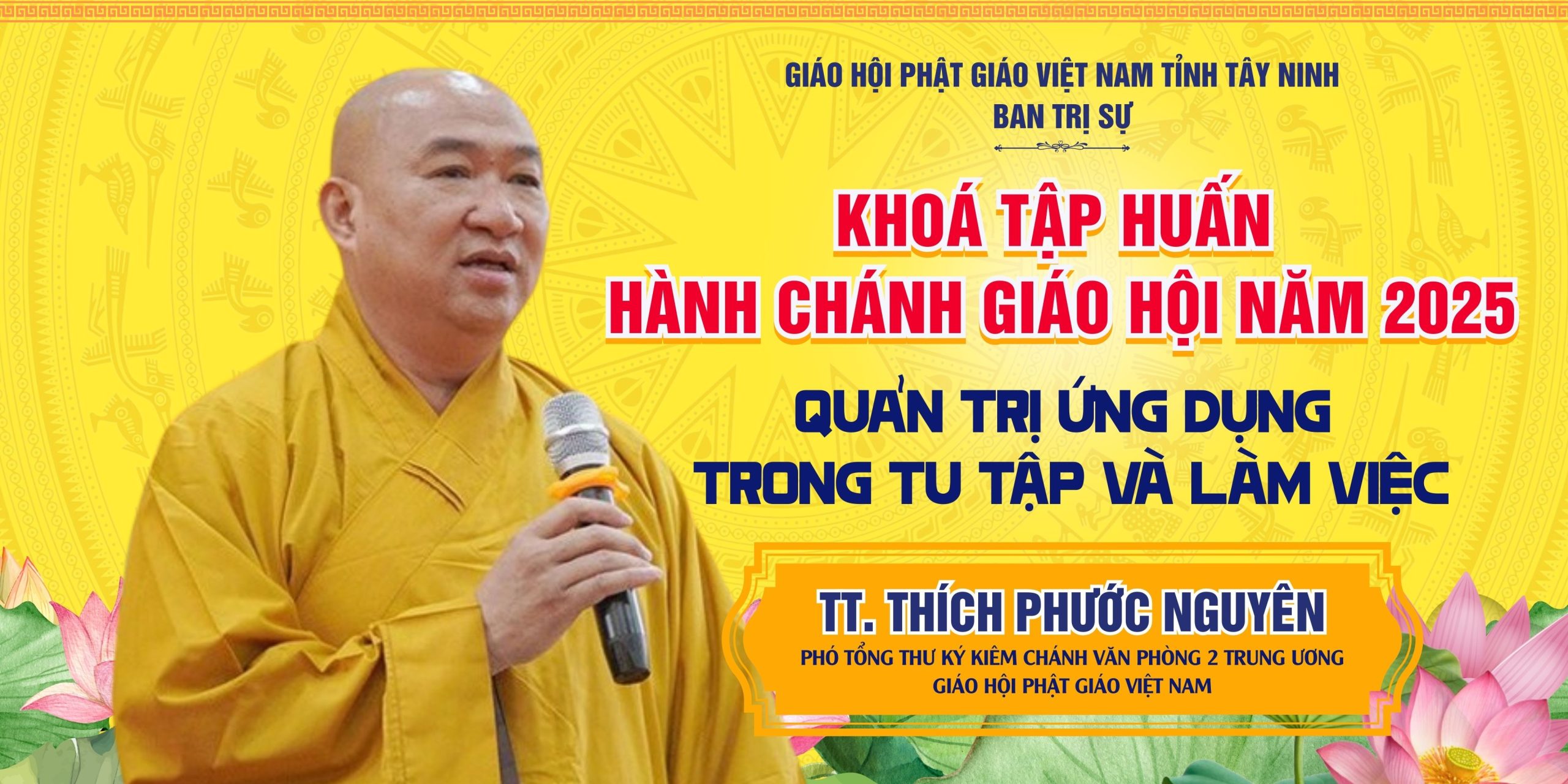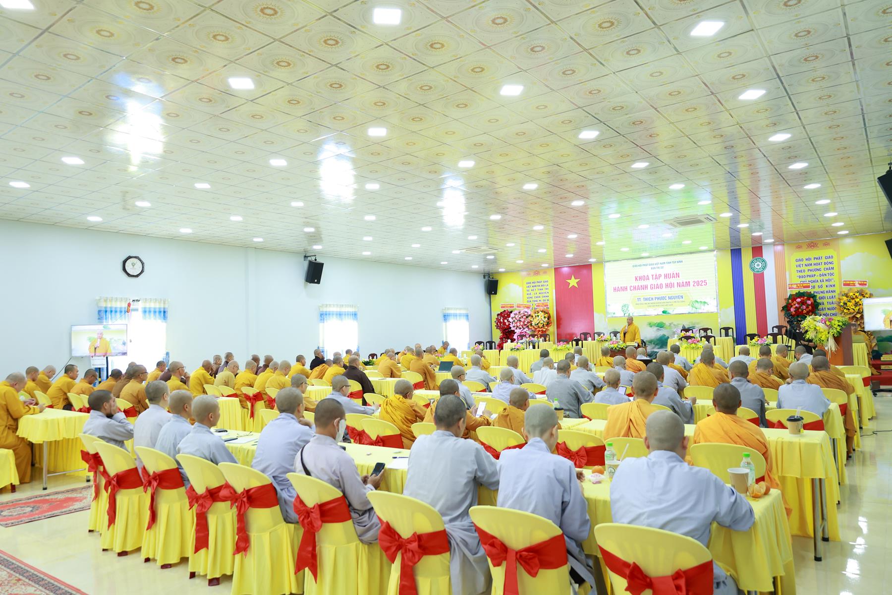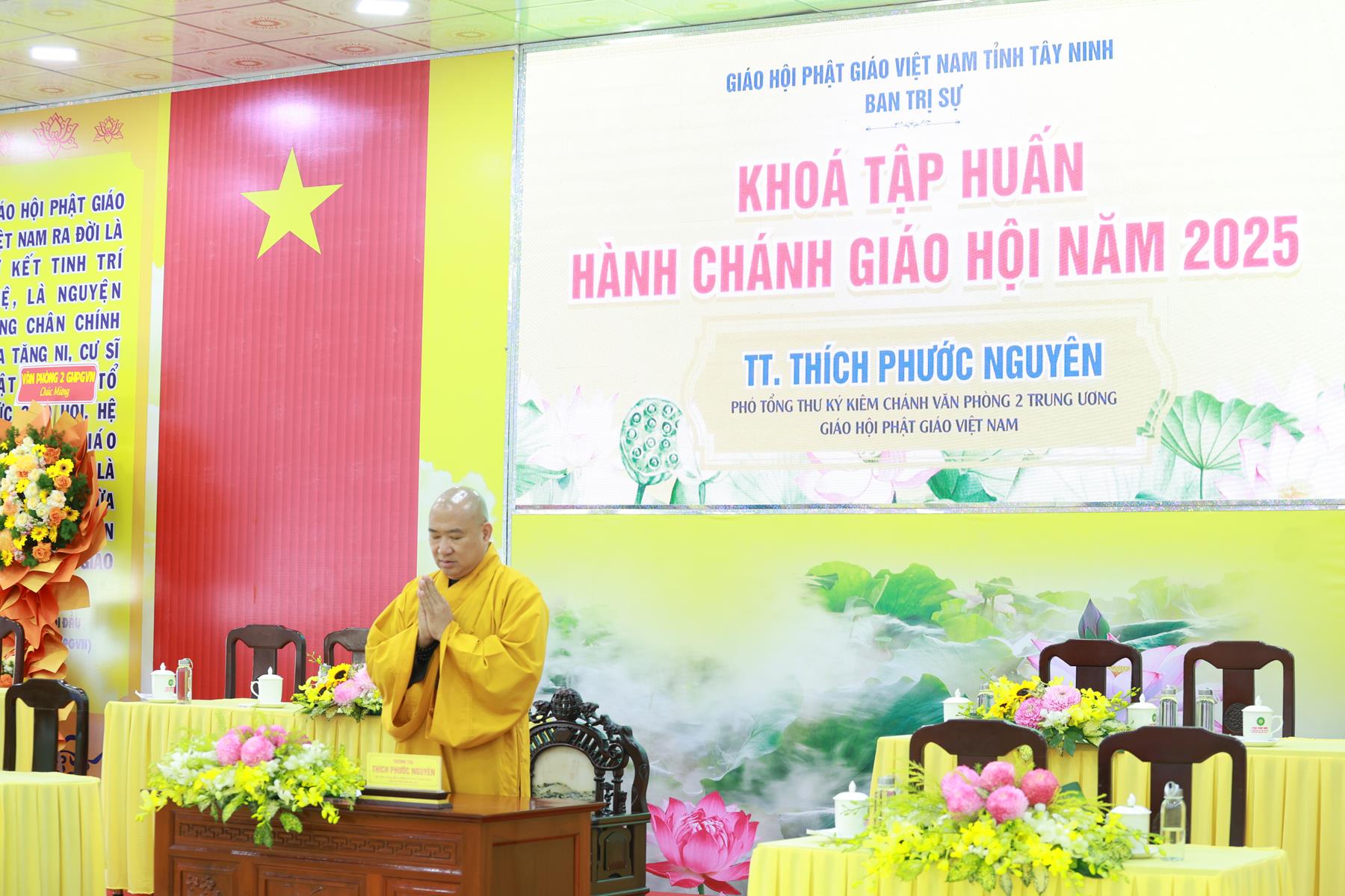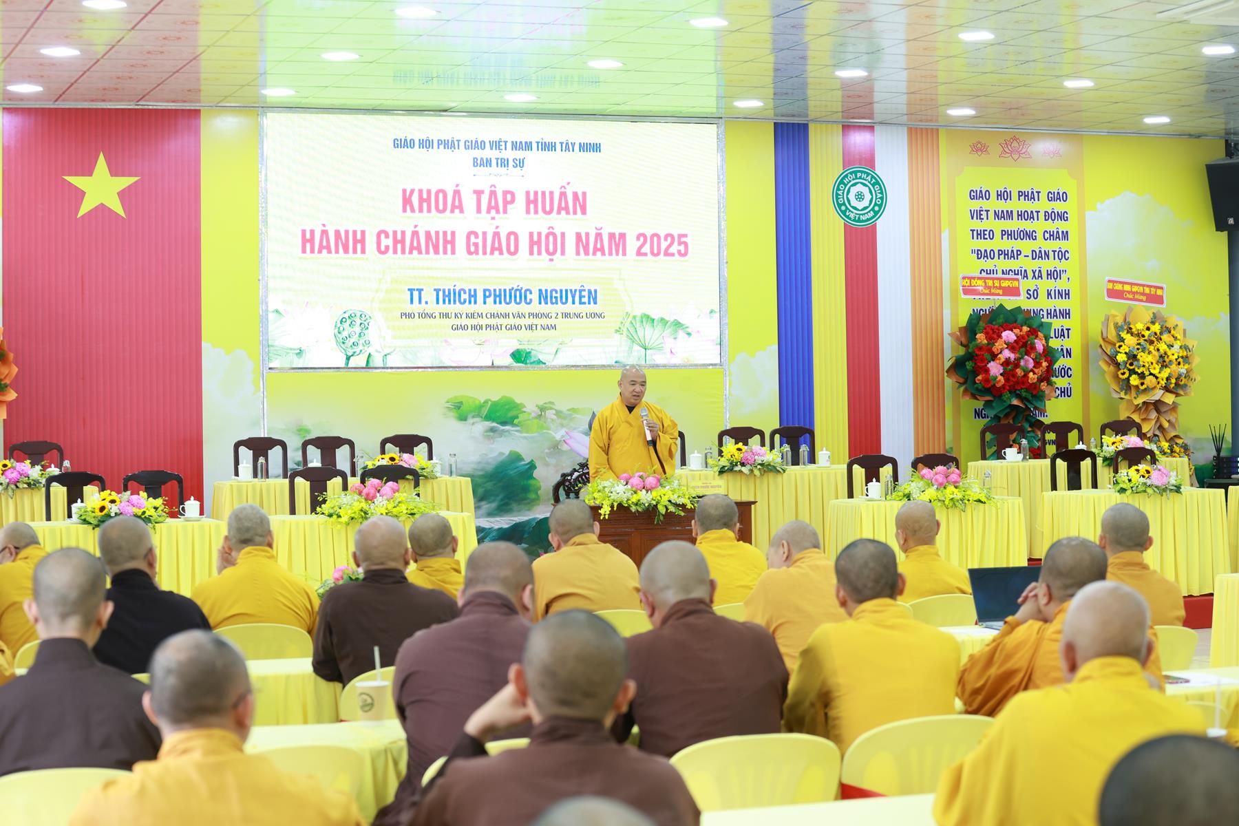 Sáng ngày 24/11/2025 (nhằm ngày 05/10/Ất Tỵ), trong khuôn khổ Khóa tập huấn Hành chánh Giáo hội năm 2025 do BTS GHPGVN tỉnh Tây Ninh tổ chức tại chùa Pháp Minh, xã Mỹ Hạnh, tỉnh Tây Ninh, TT. Thích Phước Nguyên – Phó Tổng Thư ký kiêm Chánh Văn phòng II TW GHPGVN đã quang lâm thuyết giảng với chủ đề: “Quản trị ứng dụng trong tu học và làm việc”.
