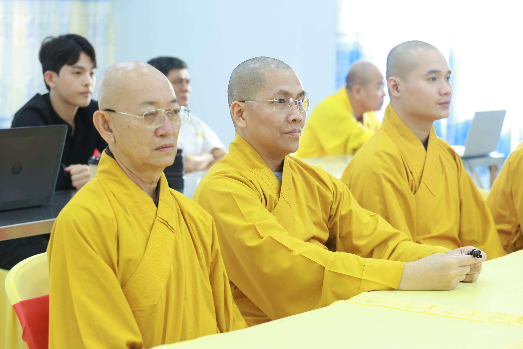 Thượng tọa cũng khái quát bốn chức năng căn bản của quản trị: hoạch định, tổ chức, lãnh đạo – quản lý, và đo lường – đánh giá – điều chỉnh. Đồng thời, Ngài nhấn mạnh các đặc điểm quan trọng như khả năng ra quyết định, giao tiếp hiệu quả, đổi mới sáng tạo, quản lý rủi ro và kiểm soát tiến trình. Đây là những phẩm chất giúp một tập thể có thể thích ứng trước mọi thay đổi và đứng vững trong sự phát triển lâu dài.