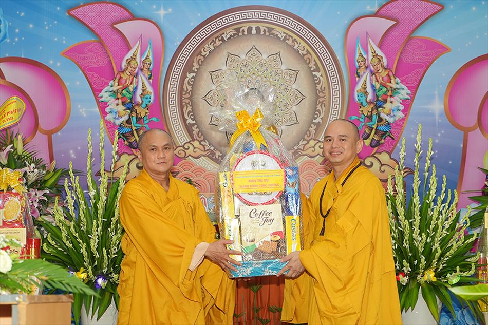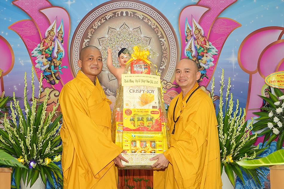 Trong diễn văn Hòa thượng dạy: “Kỷ niệm ngày đản sinh của Đức Phật, ngay lúc này đây chúng ta cùng nhau lắng đọng tâm tư, suy ngẫm và thực hành theo con đường tu tập mà Ngài chỉ dẫn trong kinh Phổ Hiền hạnh nguyện: “Xin nguyện cho chúng sinh thường được an vui, không bị các bệnh khổ, muốn làm việc ác thì không thành, làm việc thiện thì thành tựu nhanh chóng; đóng chặt tất cả các cánh cửa đi vào nẻo ác, mở bày con đường chân chính dẫn đến trời, người, và niết bàn. Nếu các chúng sinh vì chứa nhiều nghiệp ác nên phải chiêu cảm quả báo đau khổ nặng nề, Tôi đều xin chịu thay, khiến cho họ đều được giải thoát, cho đến lúc cuối cùng thành tựu đạo quả Bồ đề vô thượng”. Đức Phật dạy chúng ta về đức hy sinh, cố gắng giúp đỡ người khác, tình nguyện cùng chia sẻ với người khác trong hoàn cảnh khó khăn, biết chấp nhận những thiệt thòi, hy sinh bản thân mà vượt qua lòng tham, sự ích kỷ để trở nên con người cao thượng, đáng quý cùng nhau xây dựng một xã hội tốt đẹp hơn.”