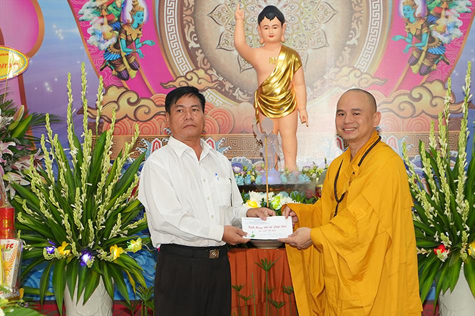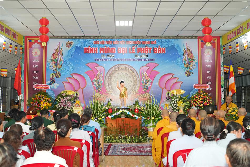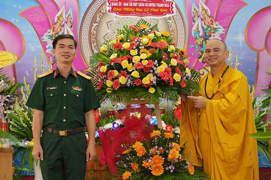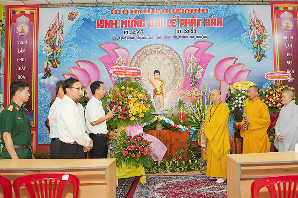 Được biết trước đó, ông Phạm Tùng Chinh – Phó Bí thư kiêm Chủ tịch UBND huyện Thạnh Hóa đã đến thắp hương, tặng hoa chúc mừng Phật đản và phát biểu ghi nhận thành tích tích cực hoạt động của Ban Trị sự Phật giáo huyện, Tăng Ni và Phật tử huyện nhà. Đồng thời, ông hy vọng Phật giáo huyện nhà luôn gắn bó với huyện và luôn đạt được nhiều thành tựu hơn nữa. Cùng đi là ông Trần Văn Vui – Ủy viên Ban Thường vụ Huyện ủy, Trưởng ban Dân vận huyện; ông Lê Ngọc Tường – Trưởng phòng Nội vụ huyện; ông Trần Minh Tuấn – Phó Trưởng phòng Kinh tế Hạ tầng huyện; bà Nguyễn Châu Kim Ngân – Bí thư huyện đoàn.
